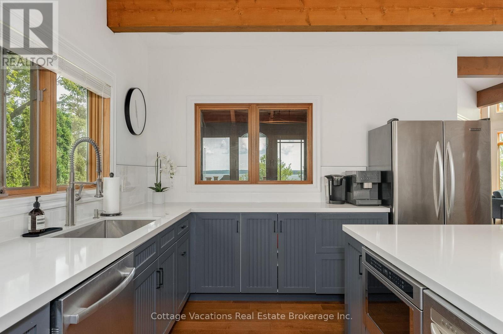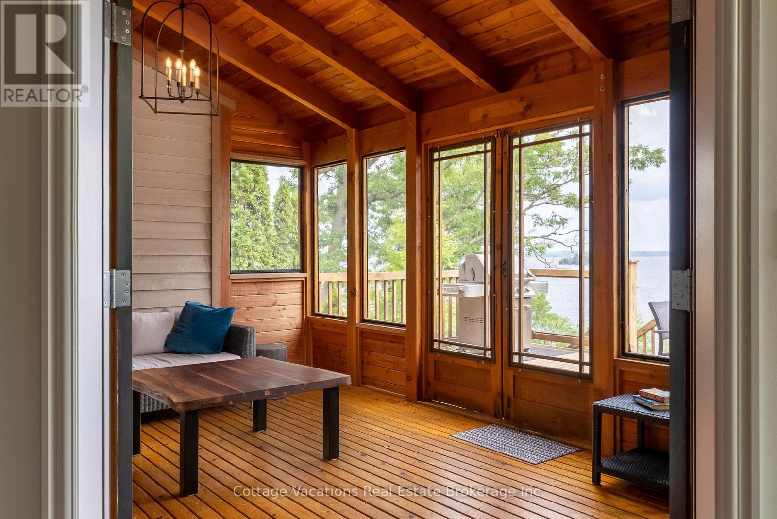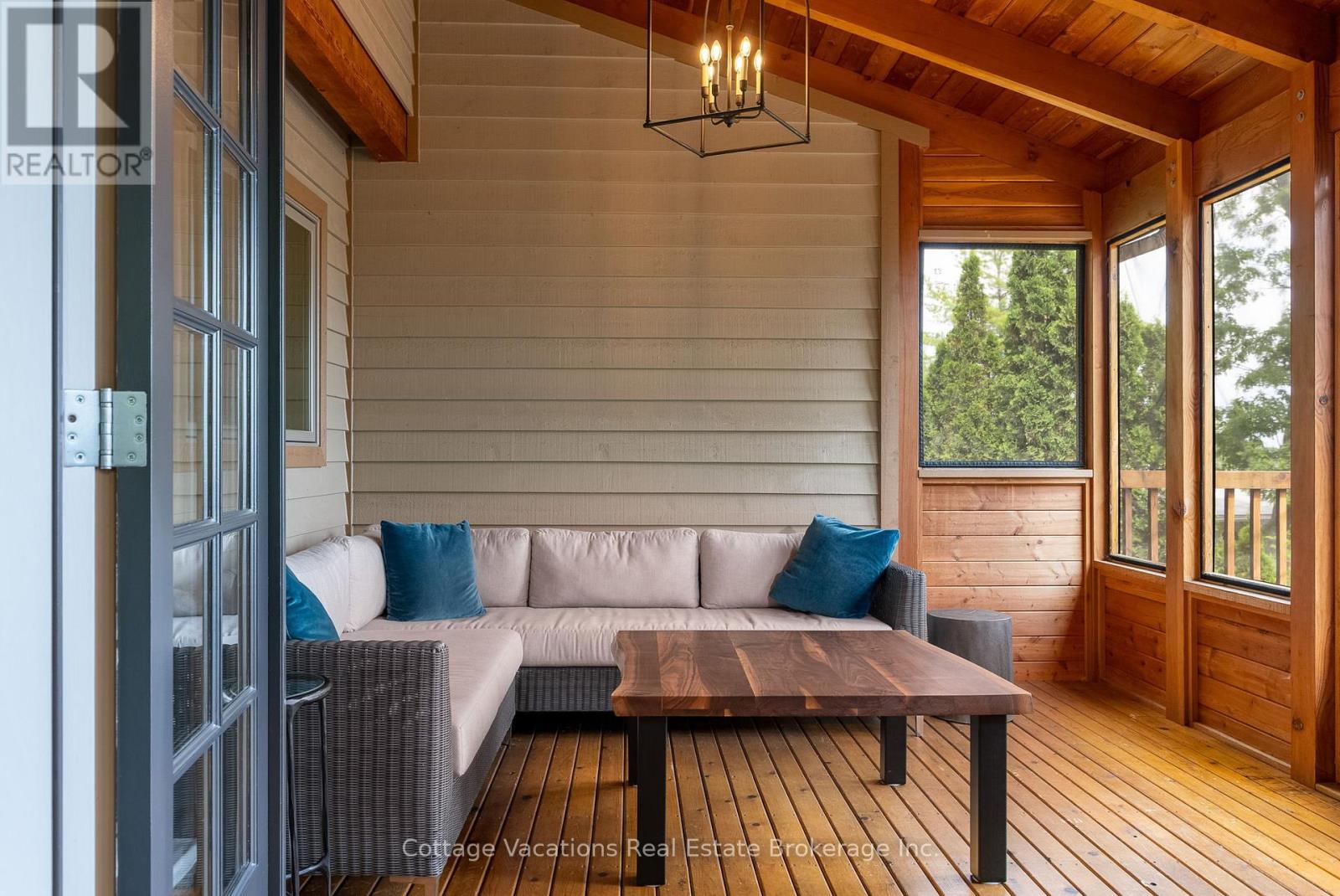 A rare opportunity to own a truly exceptional retreat+investment on the coveted south shore of Lake Muskoka. Welcome to Muskoka Blue, an extraordinary offering that combines modern sophistication with the timeless beauty of Muskoka’s natural landscape. A strong history as a very successful rental property with proven revenue allows the next owner to seamlessly start making a return on their investment from day one. Ideally situated less than two hours from the GTA, this stunning cottage delivers both accessibility and a world away feeling for an unrivaled sanctuary for those seeking the finest in waterfront living. Showcasing over 2,700 square feet of thoughtfully designed living space, Muskoka Blue features 5 bedrooms and 3 bathrooms, perfectly appointed for relaxed, elegant entertaining. Soaring 21-foot vaulted ceilings and expansive walls of glass frame breathtaking, long lake vistas, creating seamless indoor-outdoor connections. The great room, anchored by a grand stone fireplace, is both impressive and inviting, while the screened Muskoka room and extensive decking further extend the living spaces into the natural surroundings.The chefs kitchen is the heart of the home, offering a large centre island, Quartz countertops, and premium stainless steel appliances the ideal setting for gathering with family and guests. Outdoors, a private cantilevered dock invites endless exploration across Muskoka’s famed Big Three Lakes Muskoka, Rosseau, and Joseph with exceptional opportunities for boating, swimming, and water sports. Designed for memorable entertaining, the generous outdoor granite fire pit area, al fresco dining spaces, and thoughtful landscaping ensure privacy and tranquility. Offered fully furnished, Muskoka Blue is a true turnkey property, offering immediate enjoyment of all Muskoka has to offer. Rental income history available upon request. (id:54164)