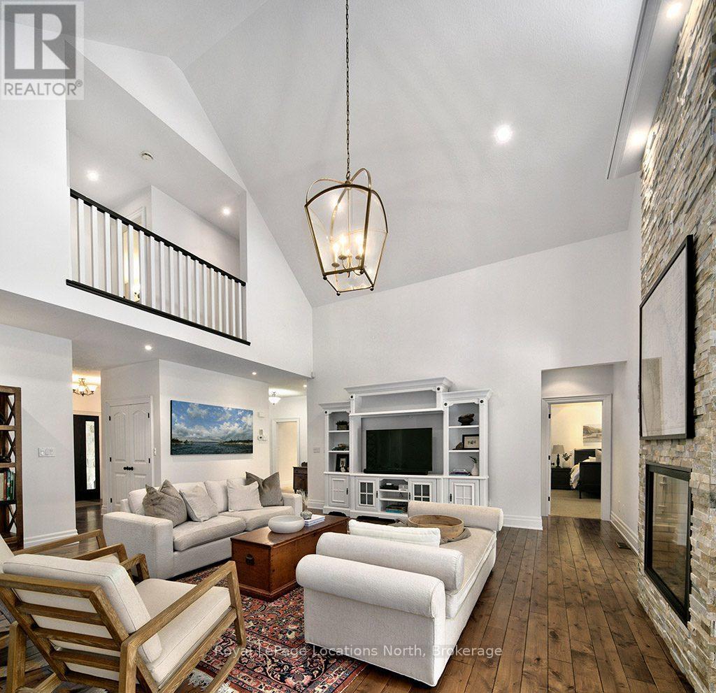 Beautiful Lora Bay home, situated along the picturesque 4th hole of the golf course, this 6-bedroom, 3.5-bath residence is surrounded by meticulously landscaped perennial gardens. Many updates throughout including freshly painted main floor and upper hall walls and trim and finished lower level.The main floor grand cathedral ceiling adds a sense of openness and sophistication, complemented by a double-sided gas fireplace that warms both the living room and a charming sunroom. Gleaming hardwood floors flow seamlessly throughout, enhancing the home’s timeless appeal. The spacious primary suite offers a spa-like ensuite bath and 2 good sized walk in closets!The kitchen is a culinary enthusiast’s dream, featuring a convenient walk-in pantry with updated cabinetry and electrical and wine/beer fridge, ample dining space, in-floor heating and granite countertops. A formal dining room provides a great setting for hosting gatherings with family and friends, ensuring that every occasion is memorable.Upstairs, three additional bedrooms and a well-appointed bath provide flexibility for family or guests.The basement, equipped with hydronic radiant in-floor heating and oversized windows features 2 bedrooms, rec room and 3pc bathroom.Step outside to discover your own private oasis. Dine al fresco under the freshly painted pergola (just rebuilt in Spring 2025), surrounded by the beauty of the meticulously landscaped stone patios. The thoughtful design of the outdoor space creates the perfect setting for relaxation and entertainment and the pergola offers shade during hot summer days.Located just minutes from Thornbury, Lora Bay offers a host of amenities, including a golf course, a delightful restaurant, a members-only lodge, a gym, and two beautiful beaches. Embrace the sense of community in this welcoming enclave, where every day feels like a retreat.Lora Bay monthly fee $265.67. (id:54164)