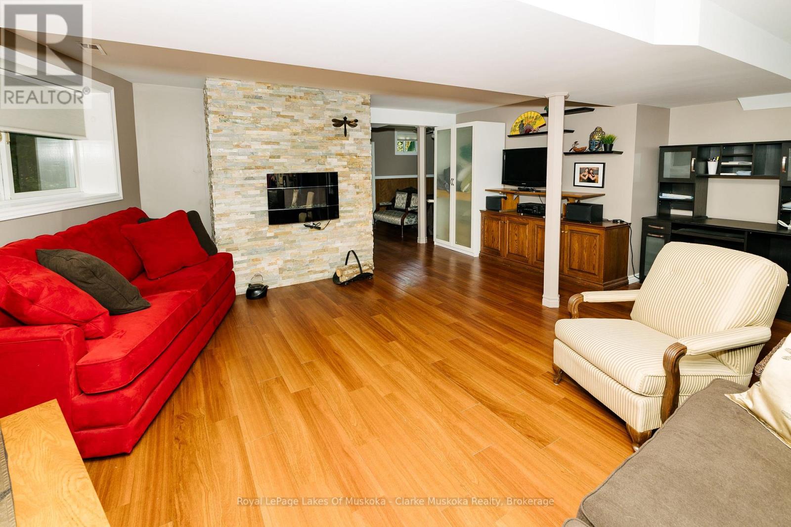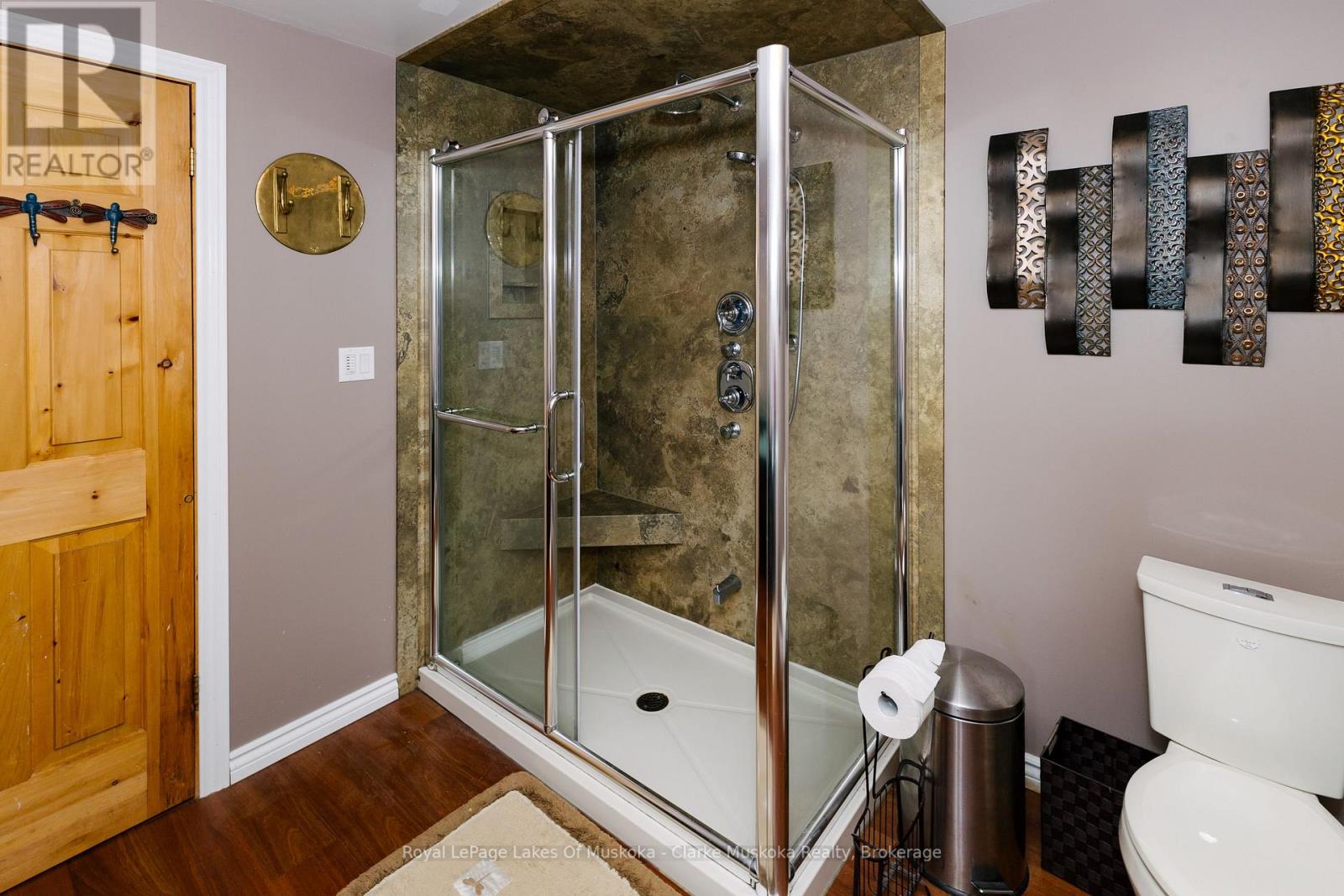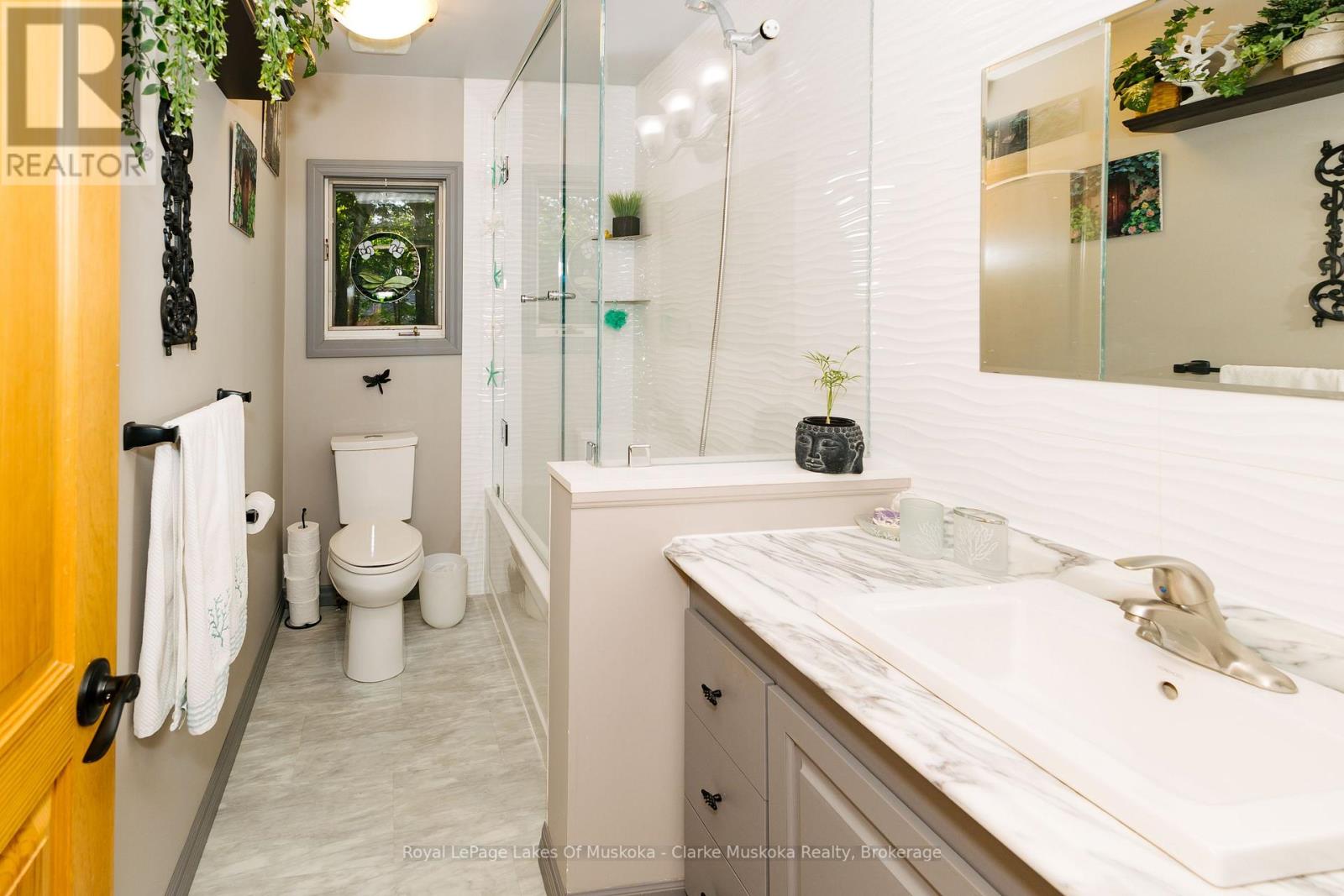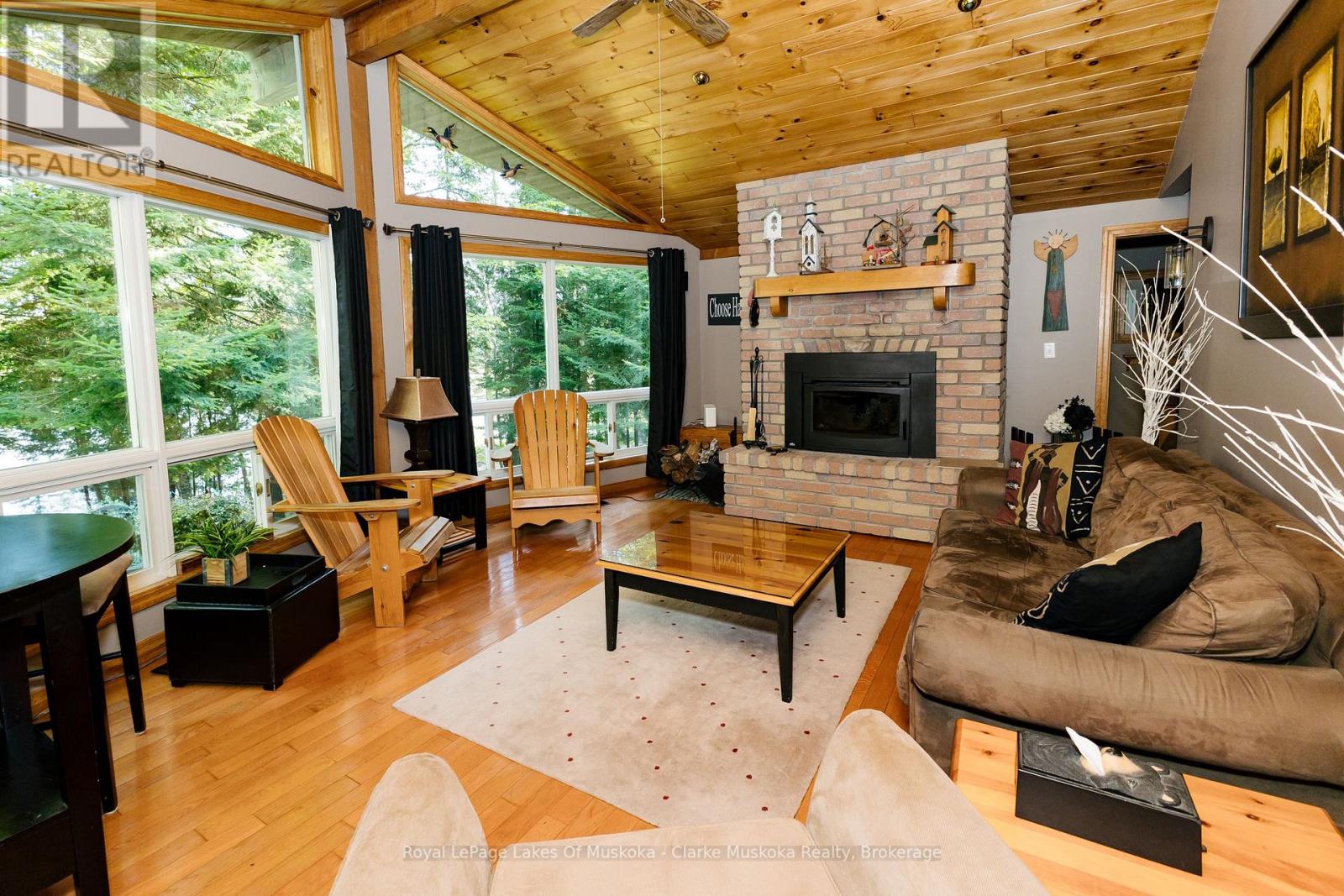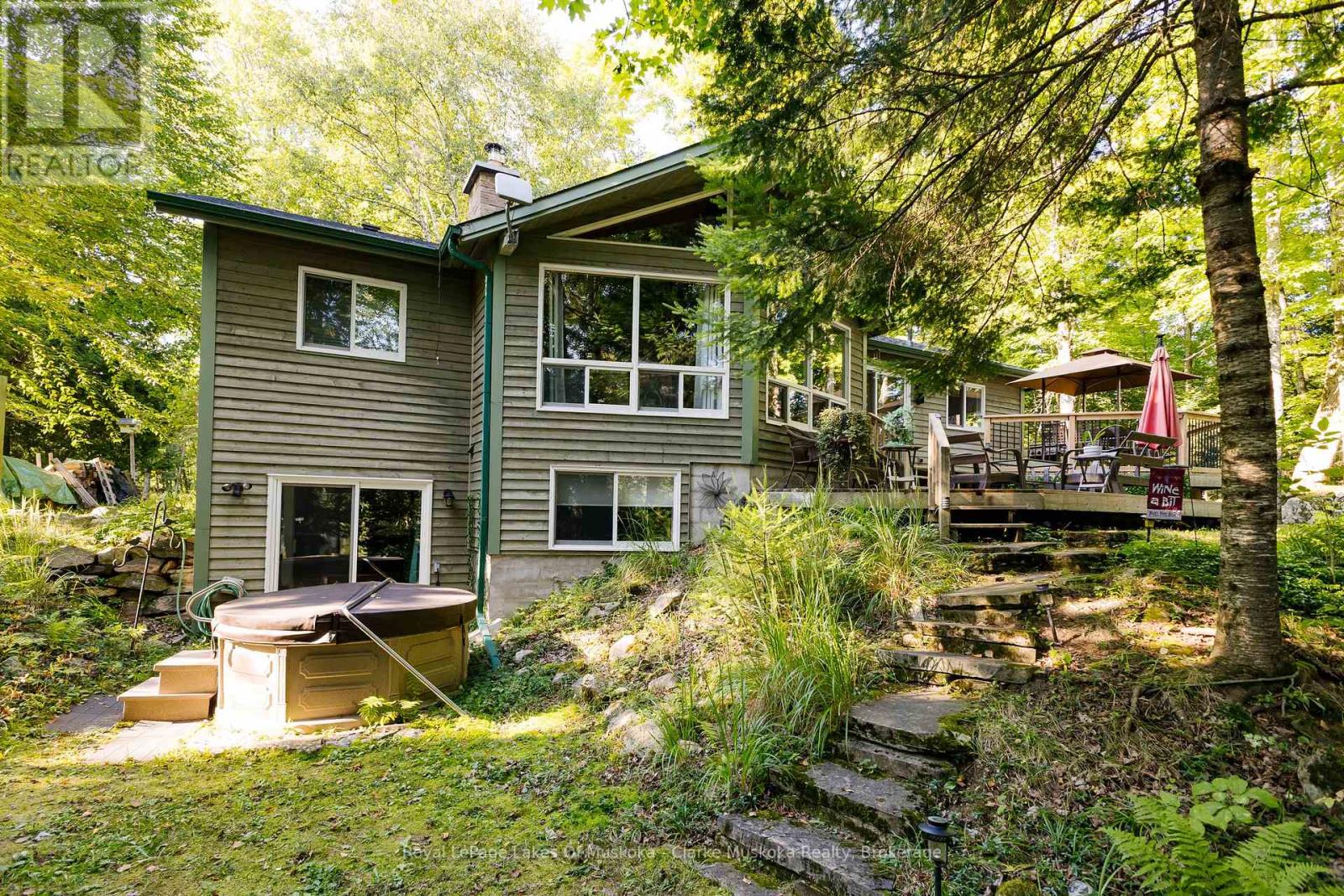 Experience the ultimate in lakeside living at this serene cottage retreat on Soyers Lake, part of a picturesque 5-lake chain offering miles of boating. This meticulously maintained, four-season home provides privacy and tranquility, situated at the end of a quiet road with a level lot and a gentle slope to the water. Enjoy stunning southeast-facing views and the convenience of being close to marinas and the charming town of Haliburton. The property features 3 Beds + 1 Bedroom, 2 Bathrooms, open-concept design, cathedral ceilings and floor-to-ceiling windows that creates an airy, light-filled environment. The large living room frames the lake view and has a beautiful fireplace creating a comfortable and relaxed setting. The spacious dining room opens up to the outdoor living area. Hardwood floors throughout the upstairs hint at the quality and care of this spacious home. The large walkout basement offers a generous recreation room with in-law suite potential or additional living space, perfect for extended family or guests. The expansive deck is ideal for entertaining or relaxing while soaking in the serene views through the trees and gorgeous rock outcroppings. The gentle slope to the water, with private dock, makes it easy to enjoy swimming and water activities. Enjoy peace and tranquility in this secluded setting. An impressive 24/24 detached garage/ workshop with hydro offers lots of opportunities and convenience. Gather around the firepit amongst the perennial gardens, one of the many outdoor recreation zones. This exceptional property combines the best of nature and modern living, making it perfect for family getaways or year-round residence. Don’t miss the opportunity to own this lakeside gem on sought after Soyers Lake. Schedule your private tour today and experience the serene beauty and unmatched privacy of this Haliburton retreat! (id:54164)