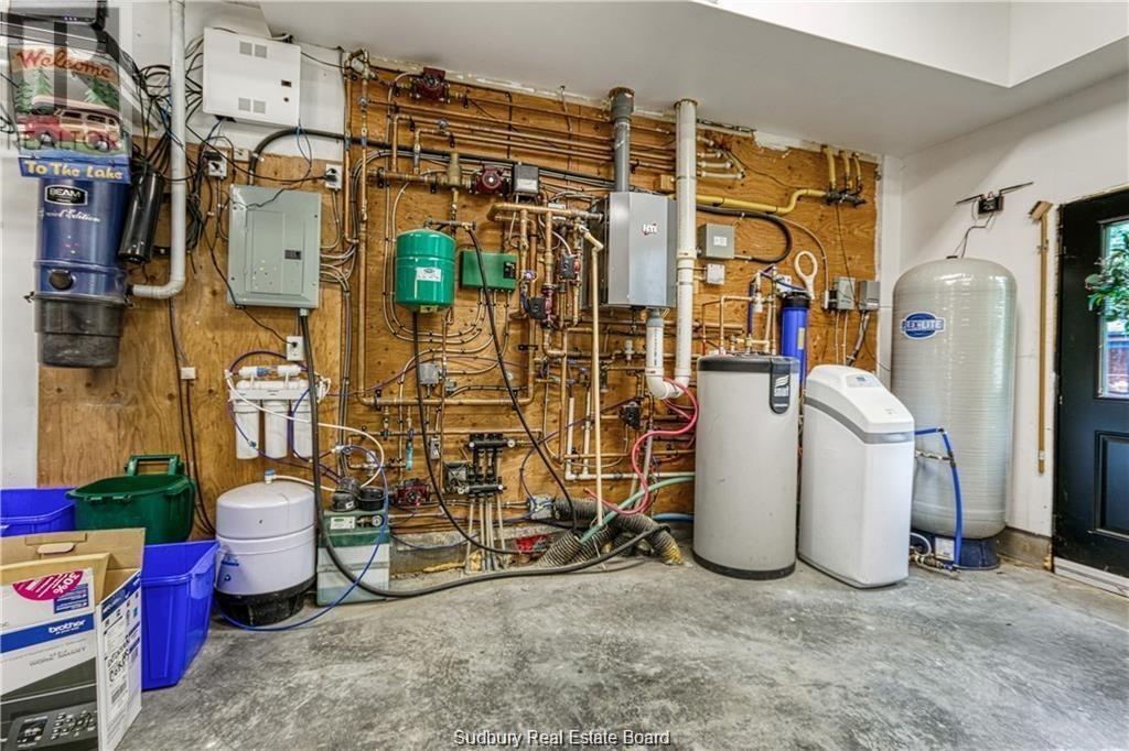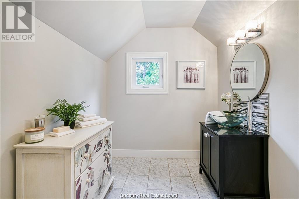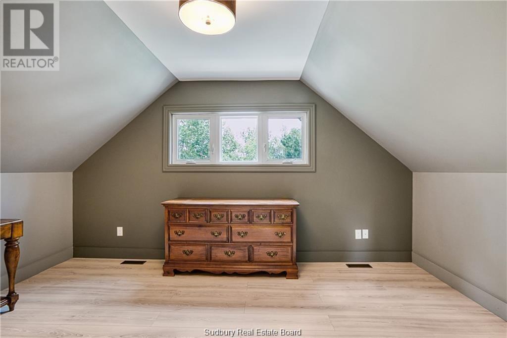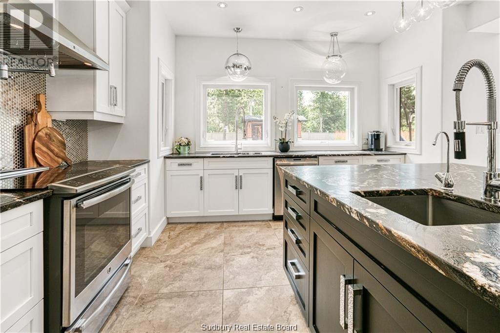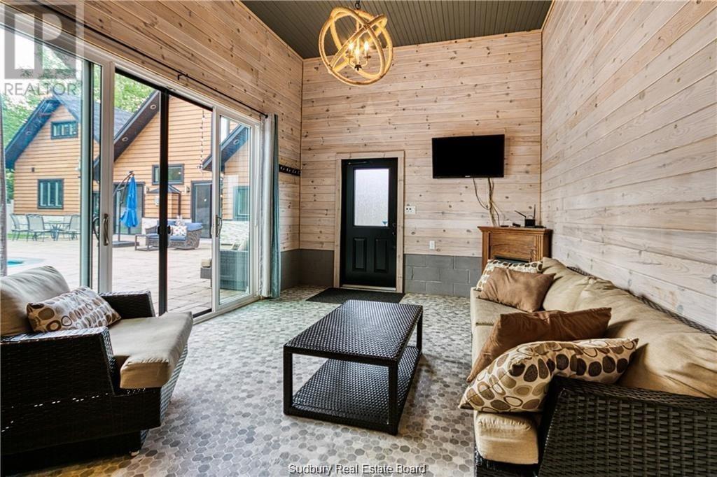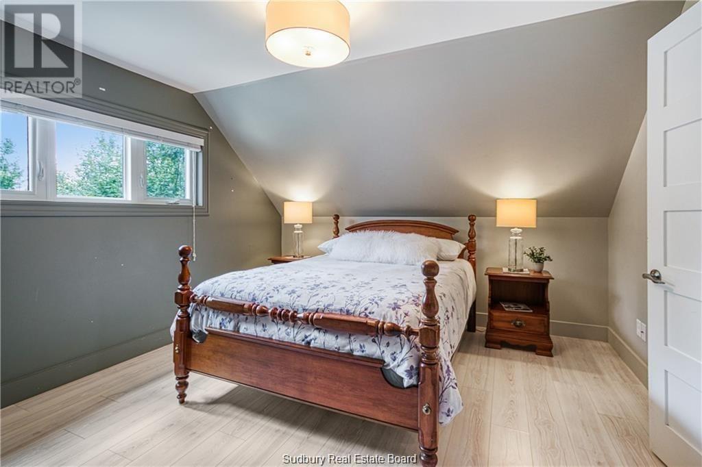 Remarkable custom built ‘bungaloft’ nestled away on a picture perfect private double lot abutting crown land. This absolutely stunning 10-year young home, with attention to detail, offers gorgeous flooring with in-floor heat, fabulous great room with cathedral ceilings, propane fireplace and a phenomenal custom ‘Old Red Pine’ stairwell being the focal point of the room. Enjoy a dream kitchen with loads of cabinets, leathered granite with large center island and walk-in pantry. Master bedroom on the main level with amazing 16′ deluxe spa-like ensuite that offers oversized glass shower, soaker tub, makeup counter and wall-to-wall armoires. Impressive upper level offers 32′ family room with room for your in-home office and a plumbing rough in for future bar as well as your two secondary bedrooms and spacious bathroom. Two patio walkouts from the main level to the most perfectly landscaped backyard oasis offering an in-ground fiberglass pool (saltwater) with extensive interlocking to entertain all of your guests with multiple sitting areas as well as a very well finished sauna. Phenomenal 28 x 32′ detached garage (900sq. ft.) combination pool house with sunroom, kitchenette and full bathroom with shower. Enjoy grade level entry from the front of the home without having to use any stairs- just pull right into your heated oversized double attached garage (750sq. ft.) and enter the home; designed for a comfortable lifestyle and perfect for anyone with mobility issues. Previously featured in Sudbury Living magazine. Every detail was methodically planned out in this masterpiece. Shows better than new- why build? Country living within city limits in the sought after community of Skead, only 15 minutes to Garson. Just 1km to Tony’s Marina with boat launch. An absolute pleasure to show! (id:54164)