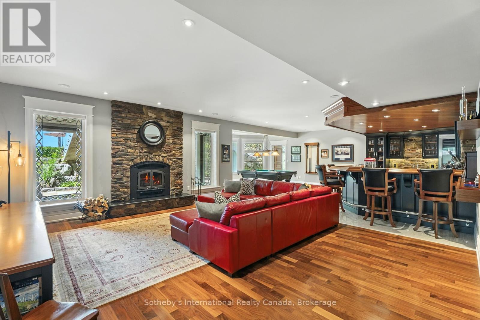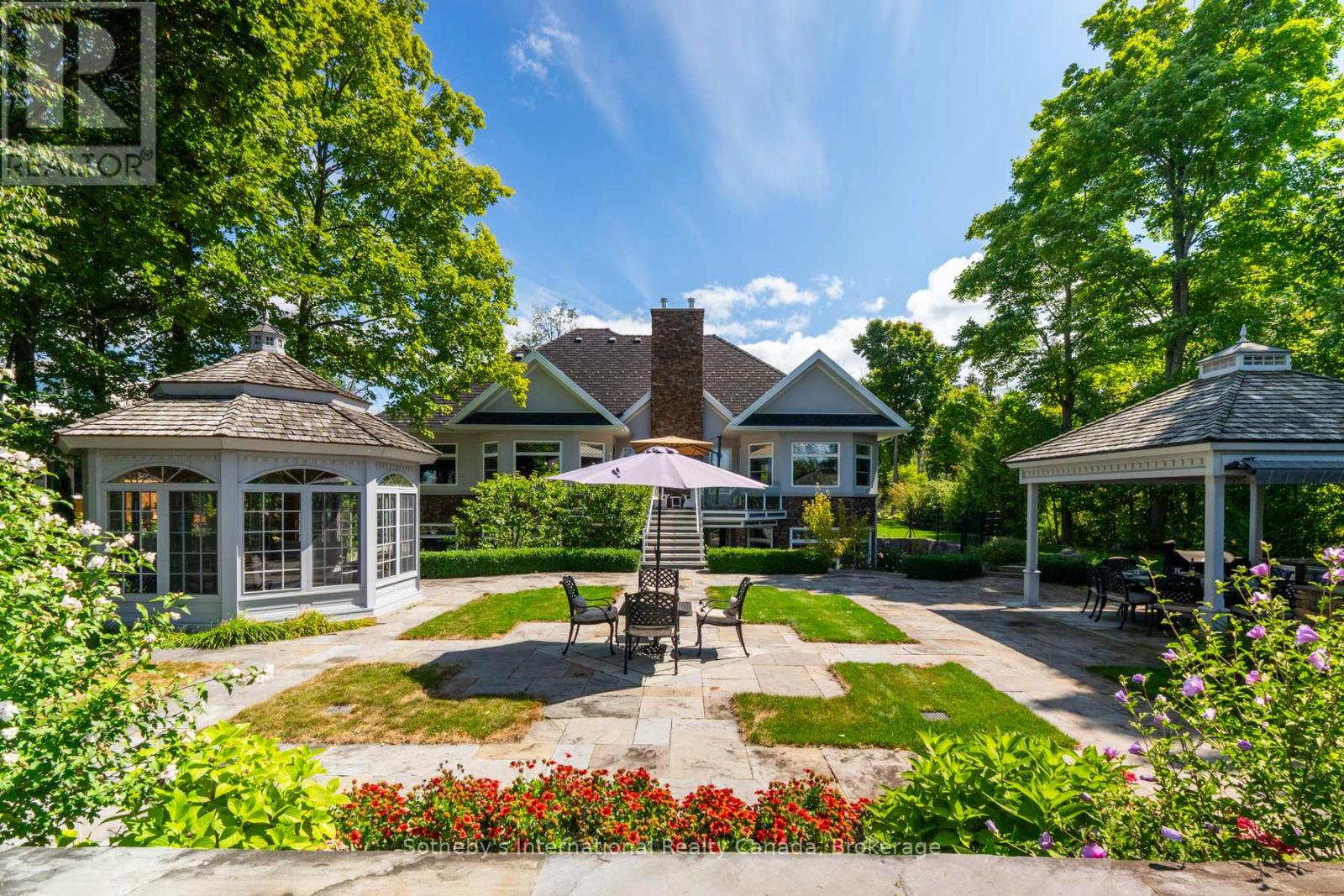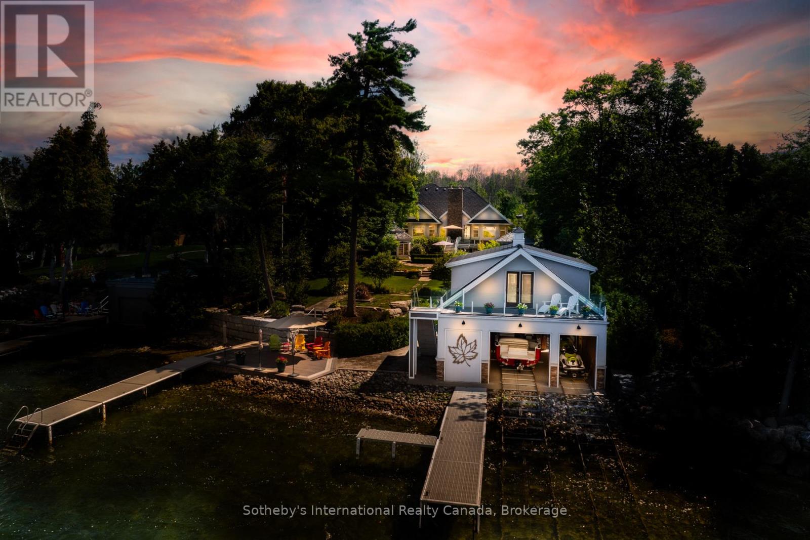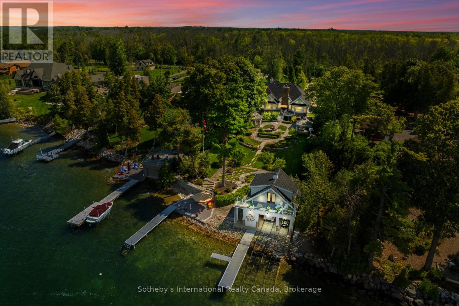 Curated with pure intention, exceptionally executed – here’s a spectacular opportunity to own one of Lake Simcoe’s most admirable waterfront estates! This custom-built residence offers over 6,000 sq ft of refined living space on 1.2 acres of professionally landscaped grounds. With 107 feet of prime WESTERN shoreline, the property is perfectly positioned for unforgettable sunsets and an unmatched lakeside lifestyle. Crafted by award-winning West Brennen Construction, the home blends timeless elegance with modern performance. Solid 8′ walnut doors and flooring, intricate plaster and imported tin ceiling details, natural quartzite, granite, and leathered granite surfaces create a sense of warmth, sophistication, and enduring quality. The layout features four spacious bedrooms, a dedicated office, and five impeccably designed bathrooms, including a spa-like primary ensuite featured in House & Home magazine. The walk-out lower level offers 9.5′ ceilings, a custom media room, a games area, and an English-style pub with cherry wood millwork, marble floors, and granite counters, the ultimate entertaining space. Smart home technology controls lighting, irrigation, and security, while premium mechanical systems, including 400-amp service and a 30KW Generac generator, provide year-round comfort and reliability. Outside, park-inspired landscaping surrounds an outdoor kitchen, waterfall feature, and a charming gazebo ready for a hot tub or lakeside lounging. The heated four-car garage with Rhino-coated floors and custom storage adds practicality to luxury. At the waters edge, a rare dry boathouse with finished space above offers excellent flexibility ideal for guests, a studio, or office, while two marine railways, deep water access, and twin 40′ docks easily accommodate a 28′ boat and Seadoos. With flawless craftsmanship, modern functionality, and an unbeatable waterfront setting, this property offers a truly elevated lifestyle where every detail has been thoughtfully executed. (id:54164)