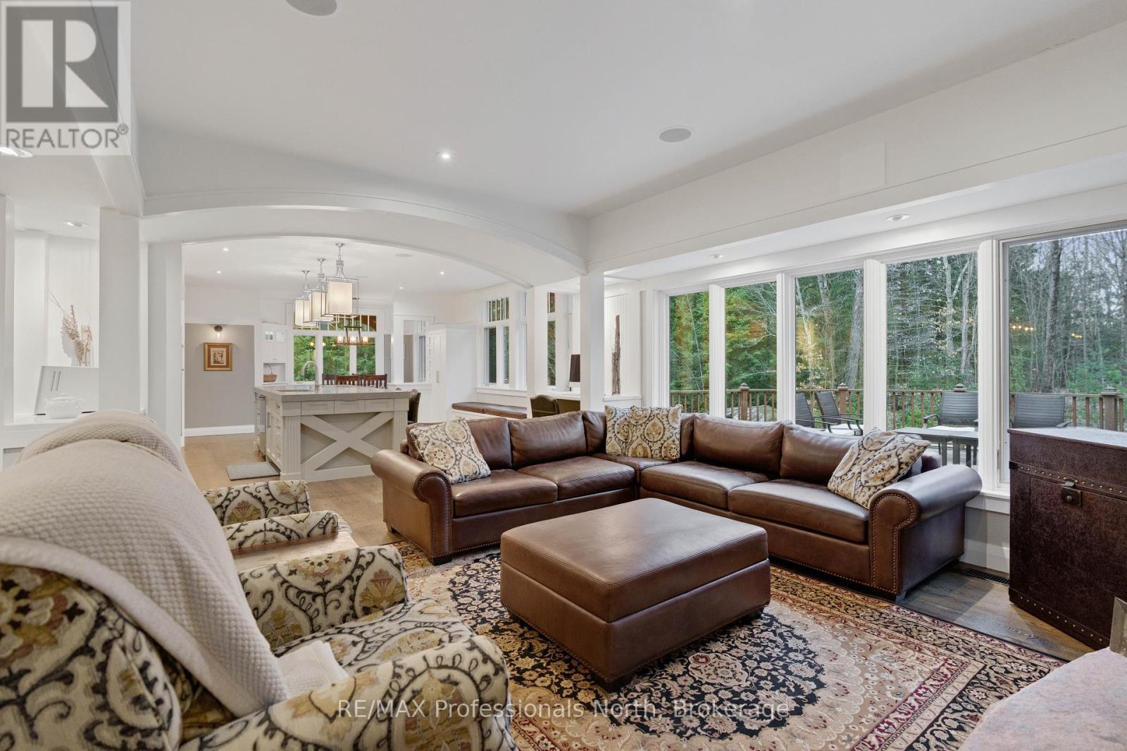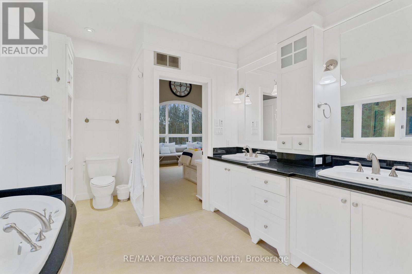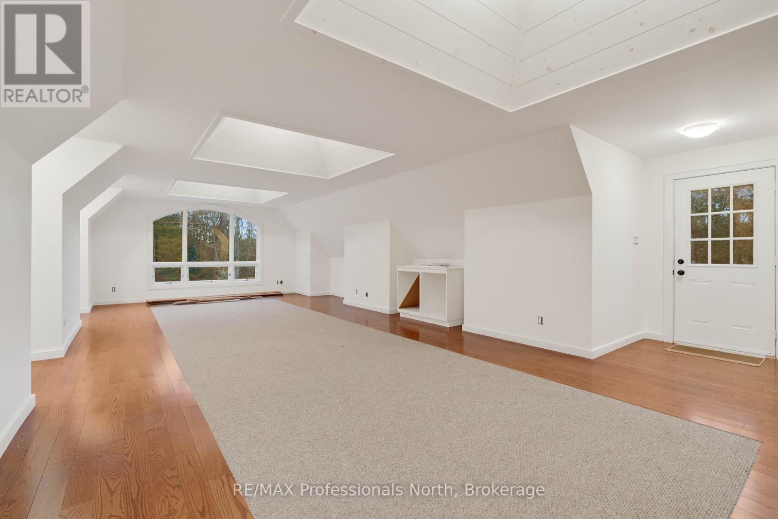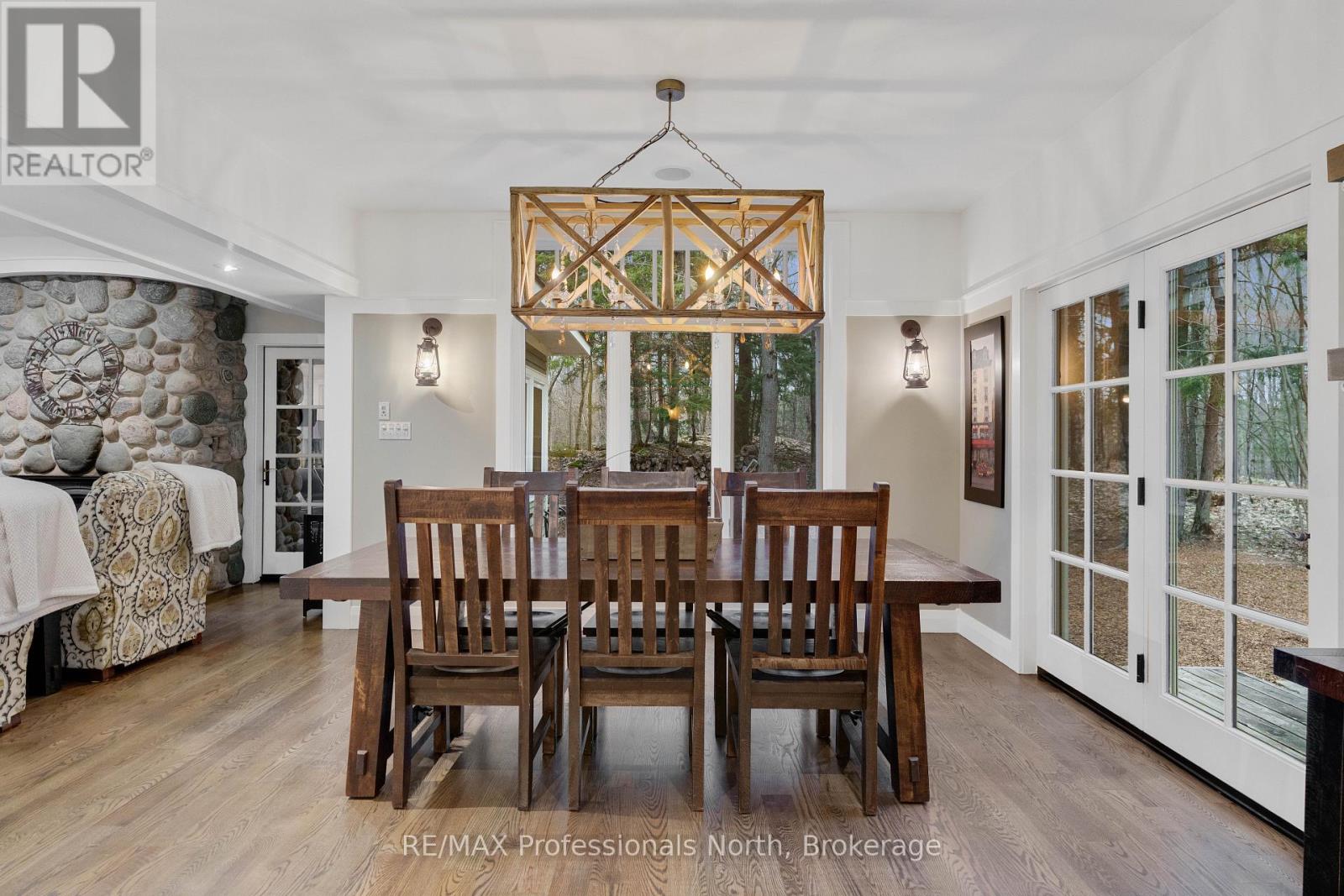 Welcome to an extraordinary private estate in the heart of Muskoka, where refined design meets the natural beauty of the surrounding landscape. Offering over 7000 square feet of thoughtfully crafted living space, this impressive property includes a 1000 square foot heated garage with floor drains and a finished loft above, along with three fully finished levels designed for elevated everyday living. At the centre of the home is a custom kitchen with premium appliances and exceptional attention to detail, seamlessly opening into the main living area where a stunning custom stone wood burning fireplace creates a striking focal point. Just beyond, the Muskoka room offers a peaceful escape surrounded by windows that draw the outdoors in, complete with a wood burning fireplace for year round comfort. A dedicated main floor office provides the perfect balance of productivity and connection. The second level hosts three spacious bedrooms, each with vaulted ceilings, walk in closets, and private ensuites with heated floors, while a fourth bedroom with its own bathroom is located on the lower level. The fully soundproofed lower level is designed for entertainment, featuring an eight seat tiered theatre, wet bar, and versatile bonus space ideal for a studio, gym, or playroom. Set on 16.74 acres of private land, the property features approximately half a kilometre of professionally built trails, three serene ponds for paddling or skating, and an invisible dog fence covering five acres. An automatic Kohler generator powers the entire home for added peace of mind. Located along Muskoka Beach Road, one of the region’s most iconic drives known for its stunning fall colours, this property offers a rare blend of privacy and convenience just minutes to Bracebridge and Gravenhurst and close to several renowned golf courses. Floor plans and feature sheet available. (id:54164)