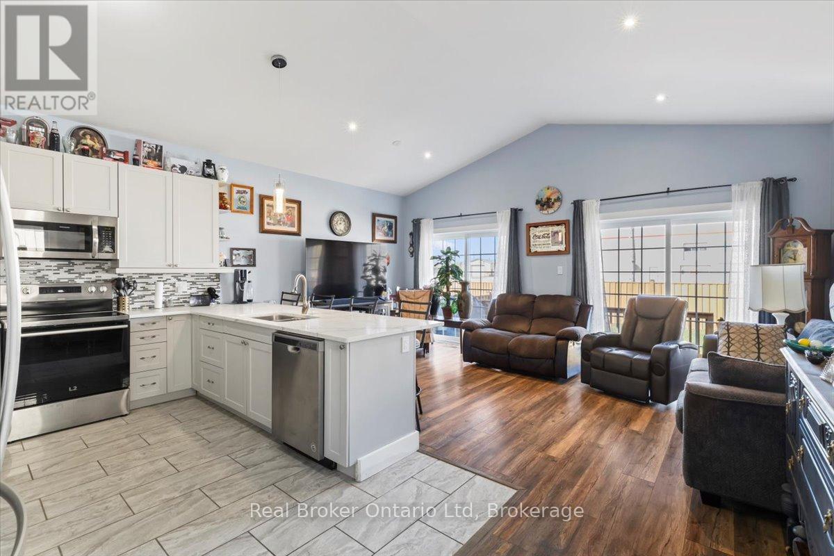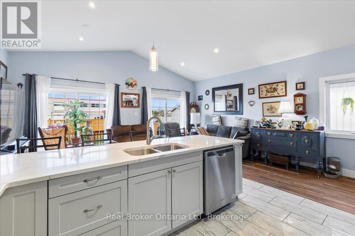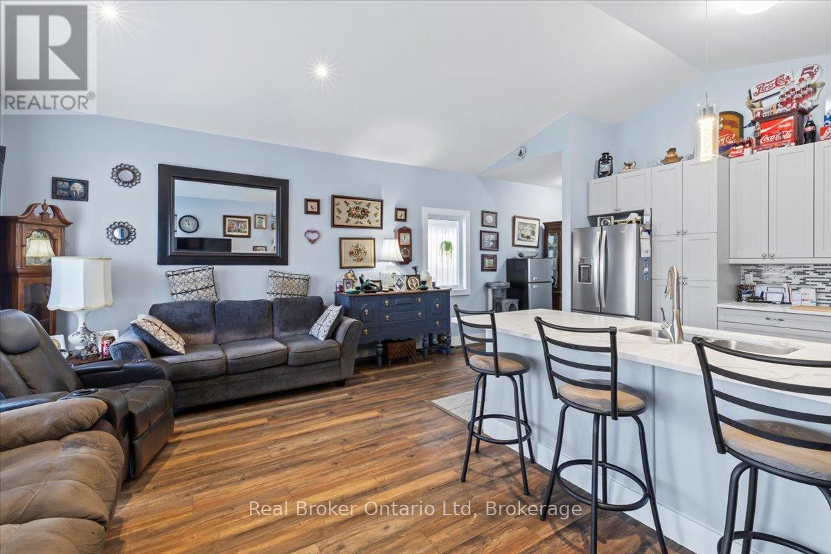 Welcome to 169 Main Street W, Dundalk – where modern comfort meets small-town charm in this beautifully maintained 2020 raised bungalow set on a 150′ deep lot. You’ll appreciate the open-concept design and thoughtful upgrades throughout. This versatile home offers 2+1 bedrooms and 3 bathrooms, making it perfect for families, multi-generational living, or those looking to right-size without compromise. The stunning kitchen is truly the heart of the home, featuring quartz countertops, a breakfast bar, stainless steel appliances, porcelain tile flooring, under-cabinet lighting, and an over-the-range microwave – a space designed for both everyday living and effortless entertaining. The living room showcases vaulted ceilings and a walkout to your backyard deck, creating the perfect indoor-outdoor lifestyle. Step outside to enjoy the fully fenced yard, offering plenty of space for kids, pets, gardening, or summer gatherings. The finished basement provides exceptional flexibility with a large recreation area, additional bedroom, 3-piece bath, laundry, and generous storage. The layout offers excellent potential for an in-law suite, guest space, or private retreat. Adding incredible value and peace of mind, this home is equipped with a backup generator, ensuring comfort and security during unexpected power outages. Additional Highlights: 4-Car Driveway + Attached Garage with Opener & Storage, Walk-In Closet in Primary Bedroom with Laundry Hook-Up, Finished Deck Perfect for Entertaining, Move-In Ready with Modern Finishes Throughout. Located in a growing, family-friendly community close to local amenities, parks, and schools, this home offers the perfect balance of convenience and lifestyle. Whether you’re entering the market, accommodating extended family, or looking for low-maintenance modern living, this home checks all the boxes. Don’t miss your opportunity to own this exceptional home !! (id:54164)
