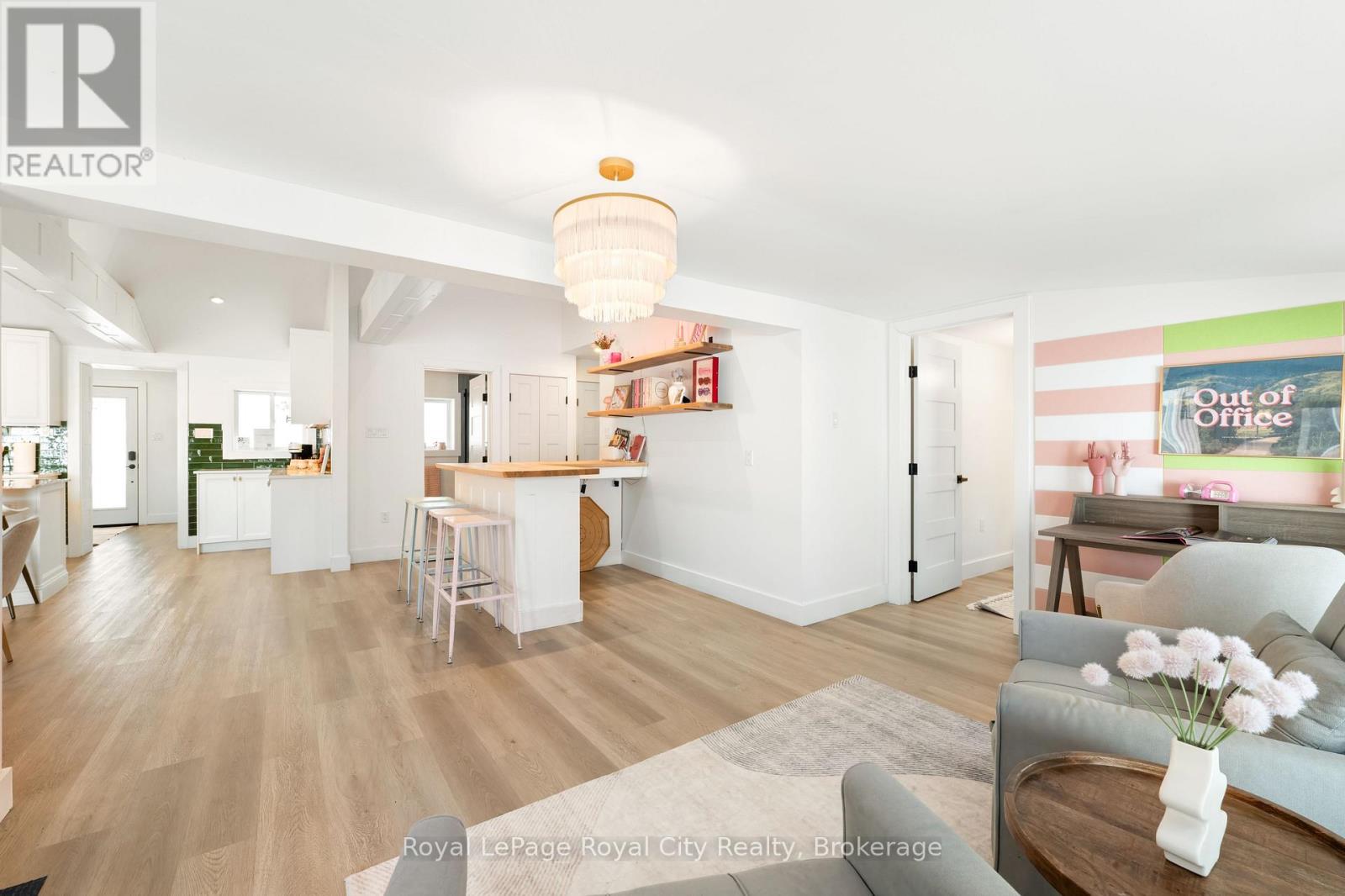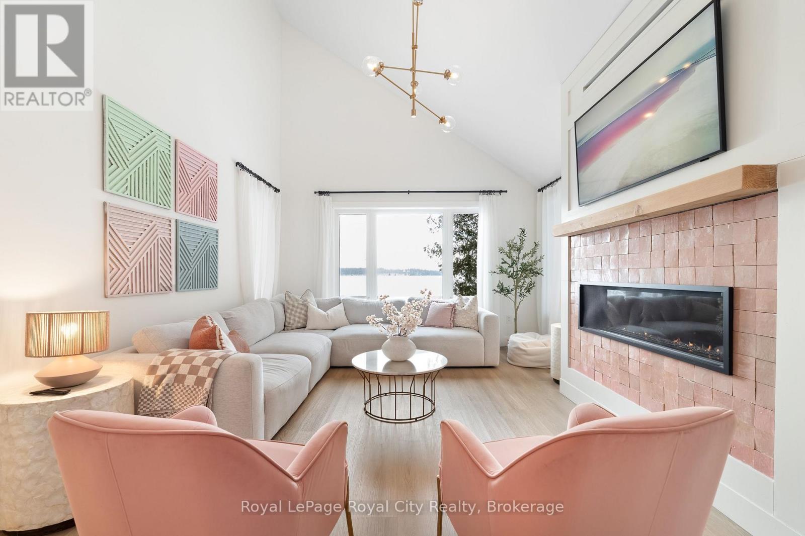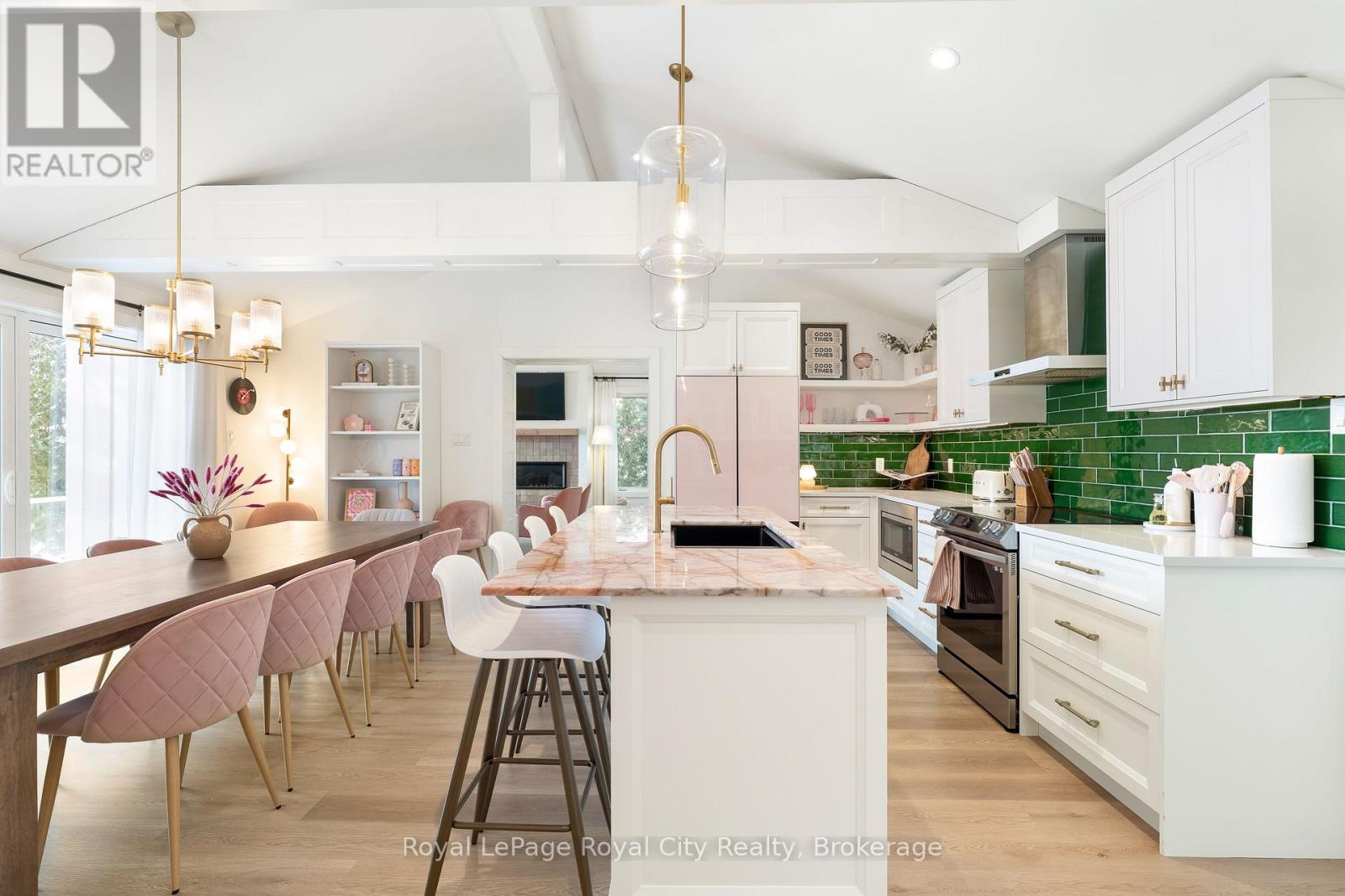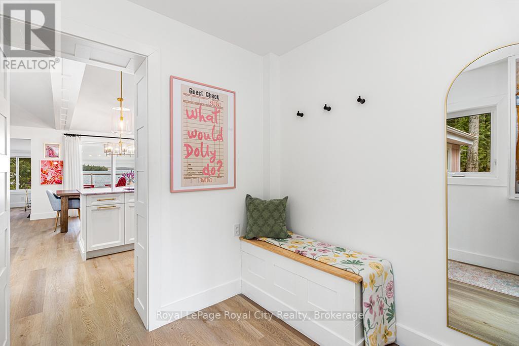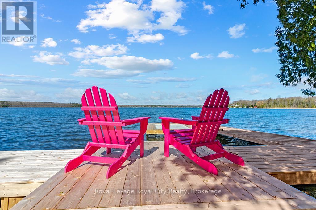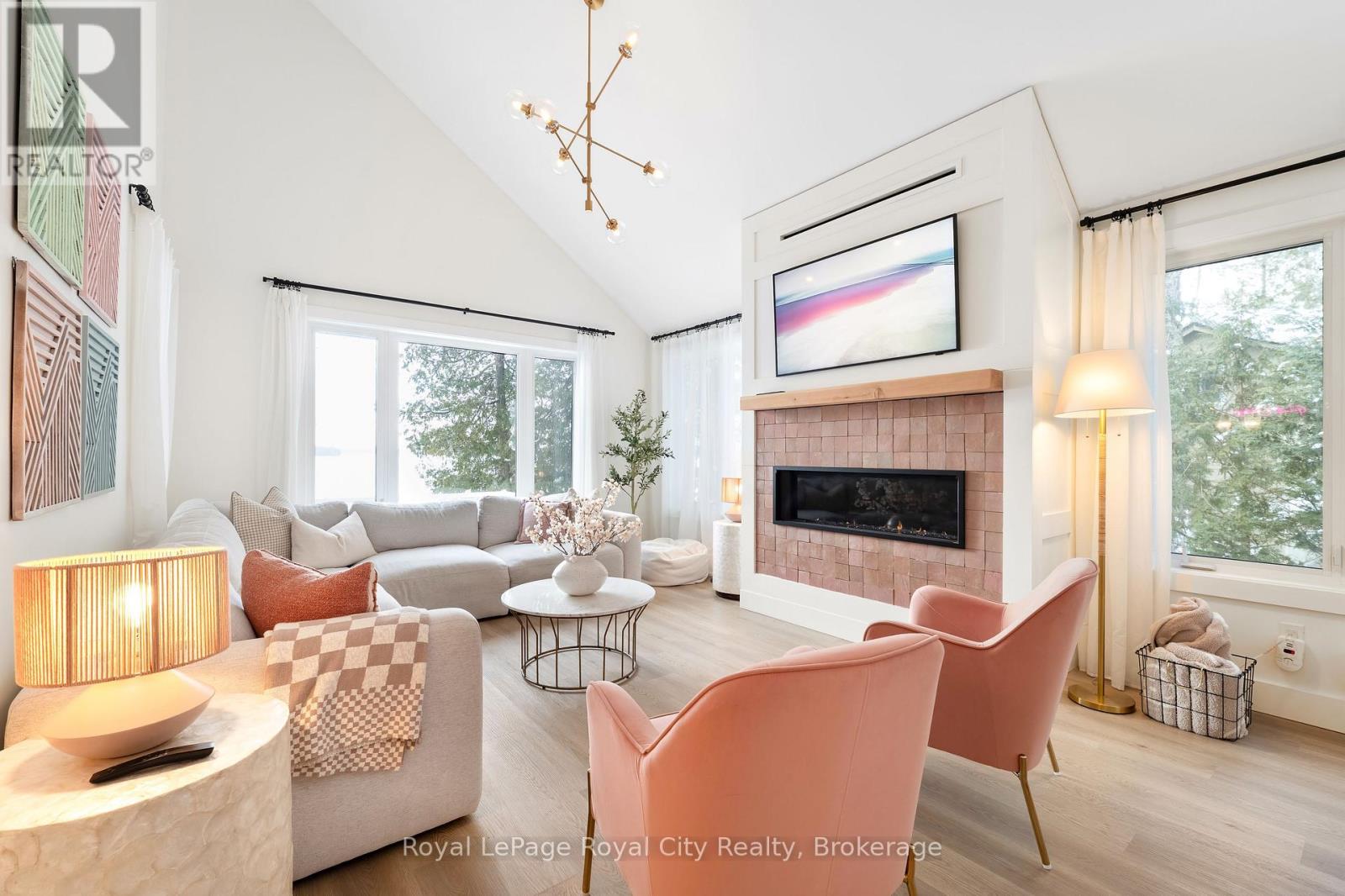 Start your day with uninterrupted sunrise views dancing across Lake Eugenia. Welcome to 194 Wiles Lane – a design-forward waterfront retreat offering 100 feet of private shoreline, a floating dock, gently sloped shorelines, and panoramic lake views from nearly every principal space.The two-tier deck, framed in glass, creates a seamless transition between indoors and out – complete with a built-in hot tub overlooking the water. This is lake living curated for both quiet mornings and sophisticated summer entertaining.Inside, vaulted ceilings and expansive windows flood the home with natural light. The statement fireplace, finished in custom blush tile, and the vaulted ceilings anchor the living room with warmth and architectural presence. The open-concept kitchen pairs elevated finishes with function: a stunning stone island with seating for four, rich emerald tile backsplash, brushed gold hardware, and plenty of cabinetry – flowing effortlessly into the dining space where sliding doors extend gatherings onto the deck against a lakefront backdrop.A secondary lounge and bar area offers a refined setting for evenings in, while three beautifully appointed bedrooms – each with individual A/C – provide comfort for guests. The shared bath is thoughtfully finished, while the primary suite is a private sanctuary featuring a spectacular ensuite with a freestanding tub, glass shower, dual vanity, and a lofted dressing retreat, also ideal as a reading lounge or private workspace.Turnkey and impeccably styled, this property offers exceptional lifestyle flexibility – whether enjoyed personally or positioned as a high-end short-term rental. Located just 25 minutes from Collingwood and 10 minutes to Beaver Valley Ski Club. 194 Wiles Lane is an elevated expression of lakefront living. (id:54164)