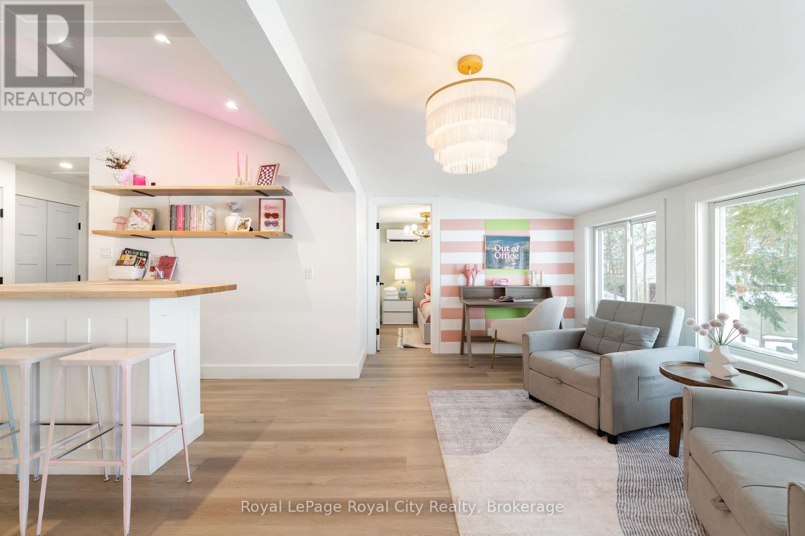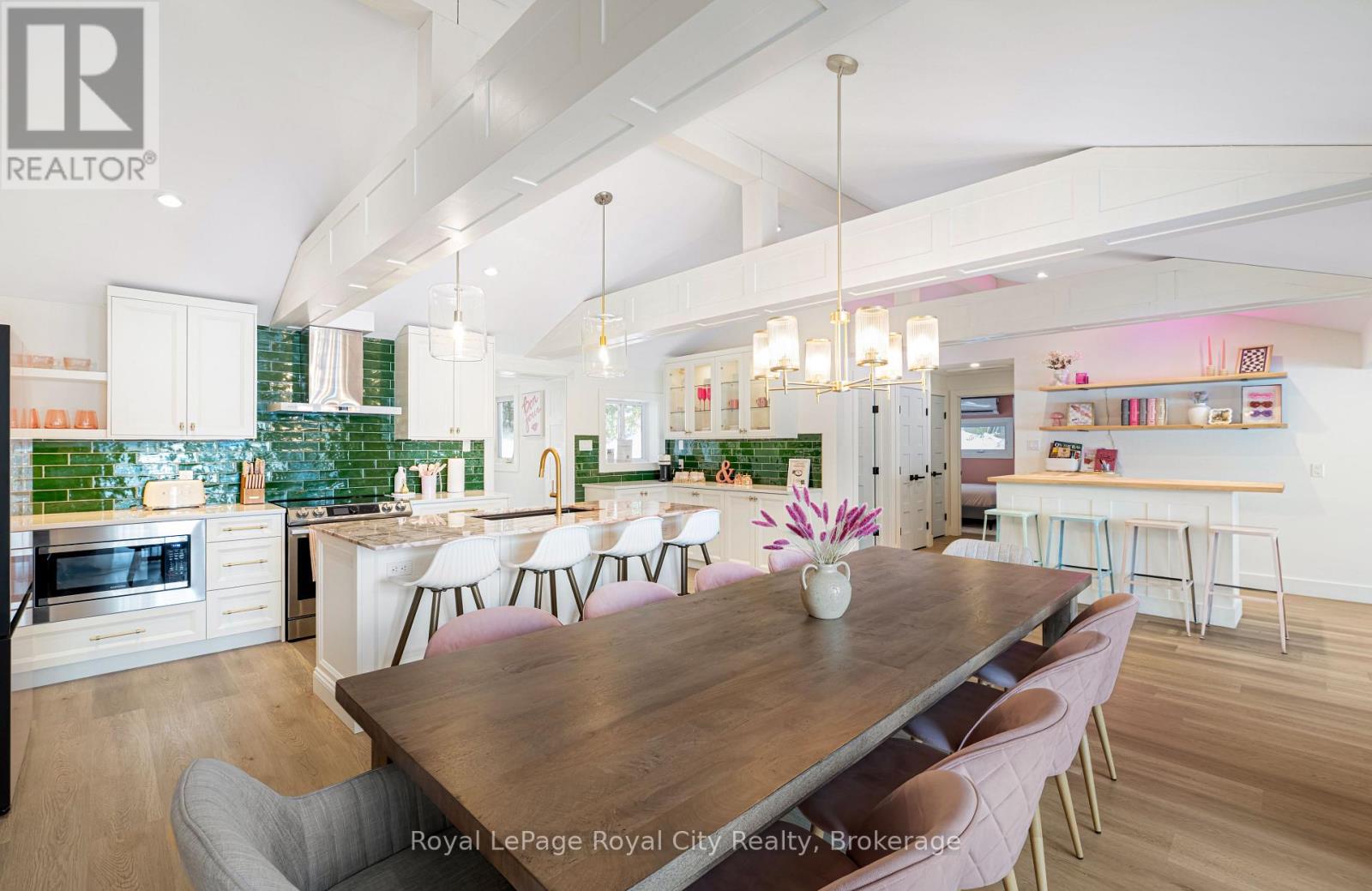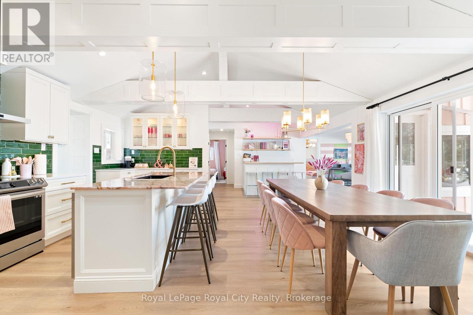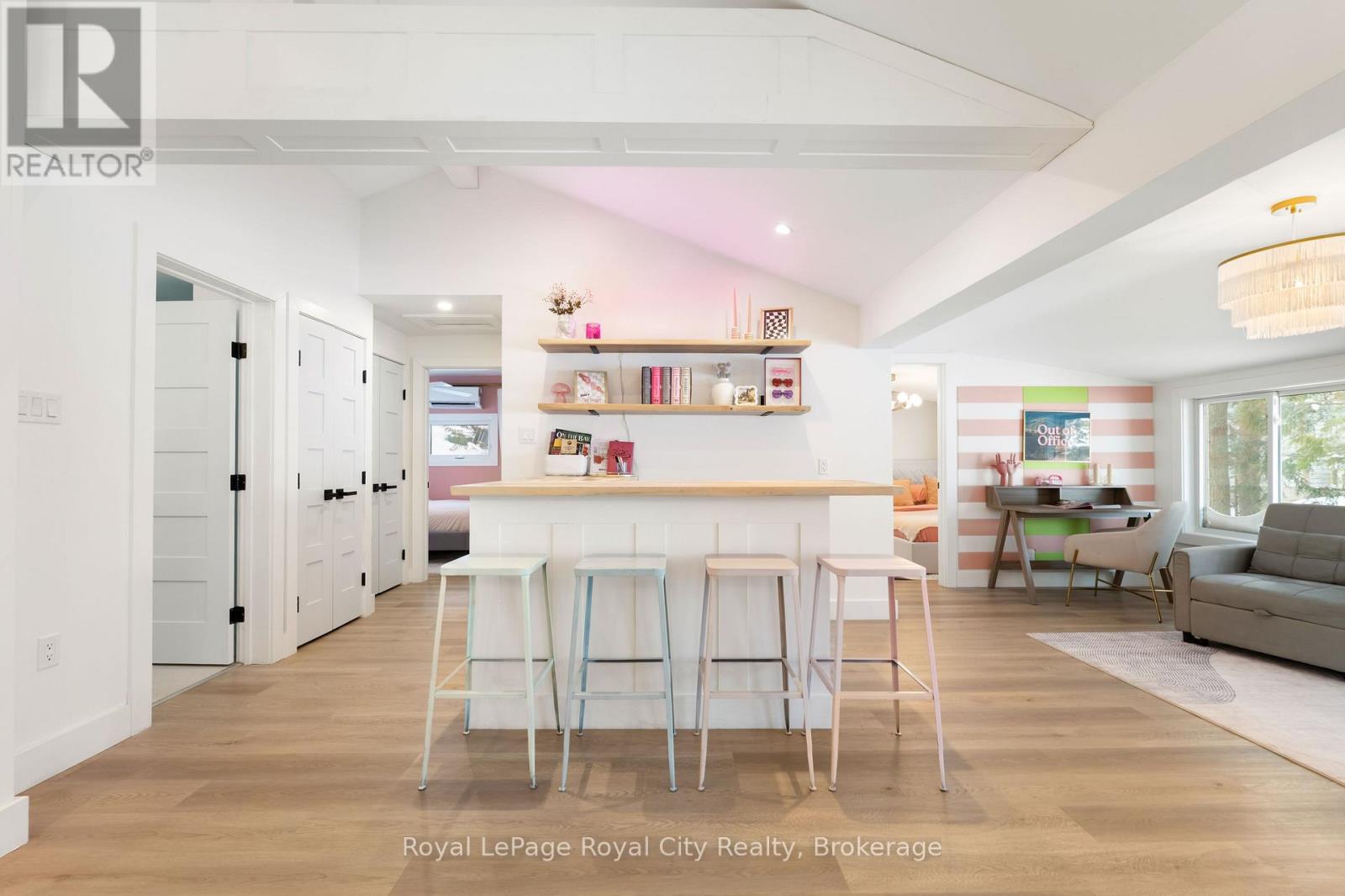 Start your day with uninterrupted sunrise views dancing across Lake Eugenia. Welcome to 194 Wiles Lane – a design-forward waterfront retreat offering 100 feet of private shoreline, a floating dock, gently sloped shorelines, and panoramic lake views from nearly every principal space.The two-tier deck, framed in glass, creates a seamless transition between indoors and out – complete with a built-in hot tub overlooking the water. This is lake living curated for both quiet mornings and sophisticated summer entertaining.Inside, vaulted ceilings and expansive windows flood the home with natural light. The statement fireplace, finished in custom blush tile, and the vaulted ceilings anchor the living room with warmth and architectural presence. The open-concept kitchen pairs elevated finishes with function: a stunning stone island with seating for four, rich emerald tile backsplash, brushed gold hardware, and plenty of cabinetry – flowing effortlessly into the dining space where sliding doors extend gatherings onto the deck against a lakefront backdrop.A secondary lounge and bar area offers a refined setting for evenings in, while three beautifully appointed bedrooms – each with individual A/C – provide comfort for guests. The shared bath is thoughtfully finished, while the primary suite is a private sanctuary featuring a spectacular ensuite with a freestanding tub, glass shower, dual vanity, and a lofted dressing retreat, also ideal as a reading lounge or private workspace.Turnkey and impeccably styled, this property offers exceptional lifestyle flexibility – whether enjoyed personally or positioned as a high-end short-term rental. Located just 25 minutes from Collingwood and 10 minutes to Beaver Valley Ski Club. 194 Wiles Lane is an elevated expression of lakefront living. (id:54164)