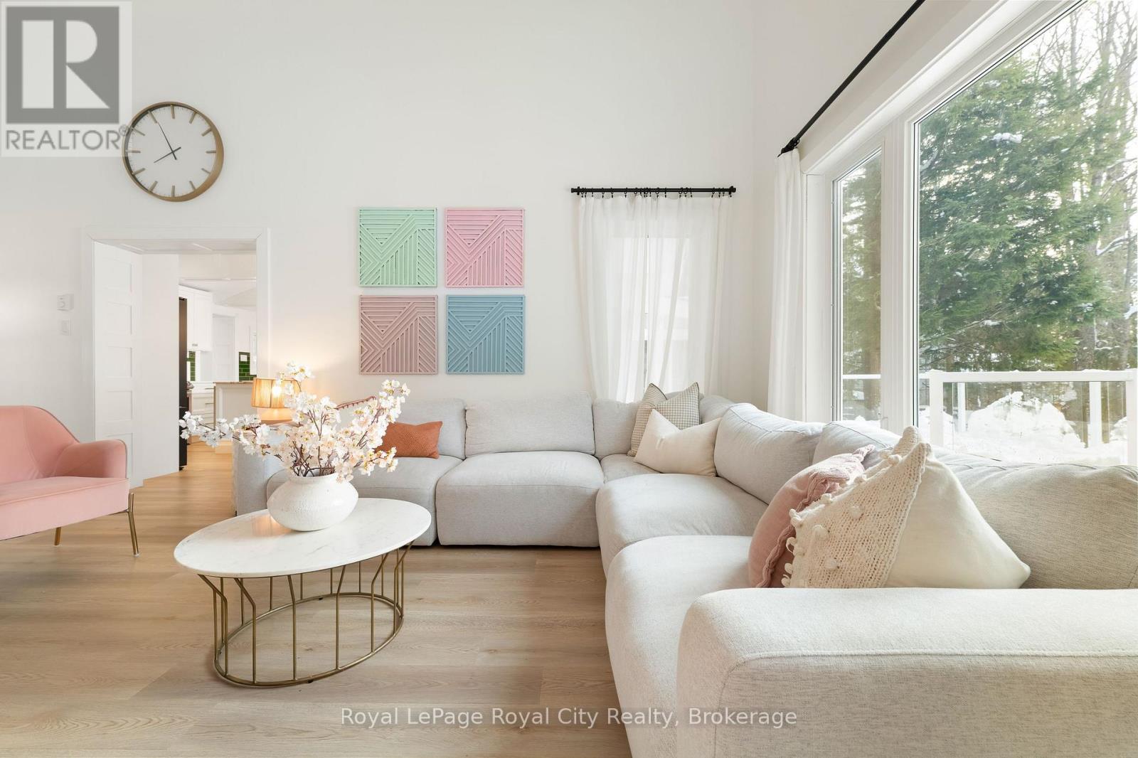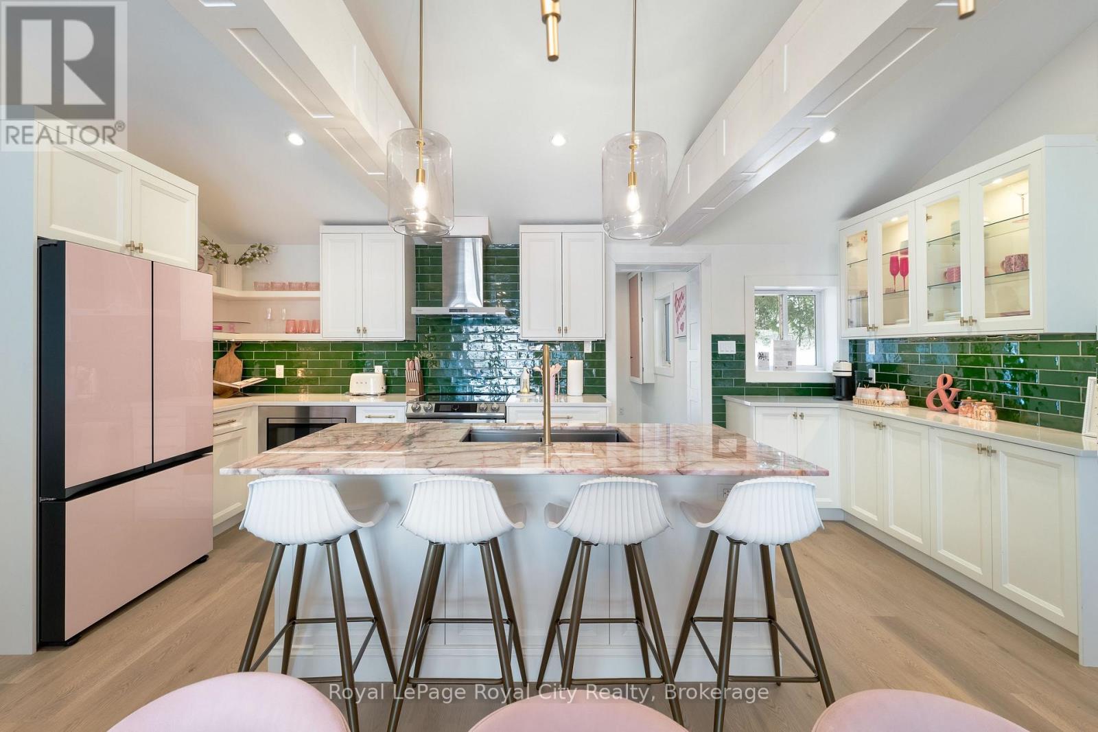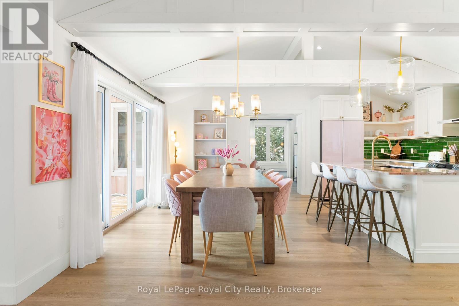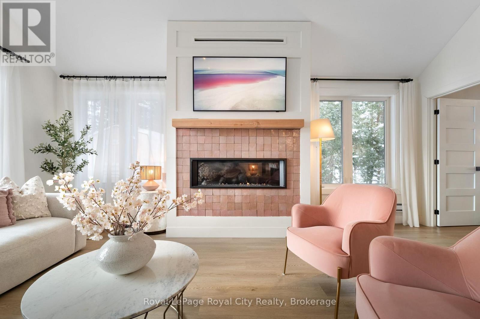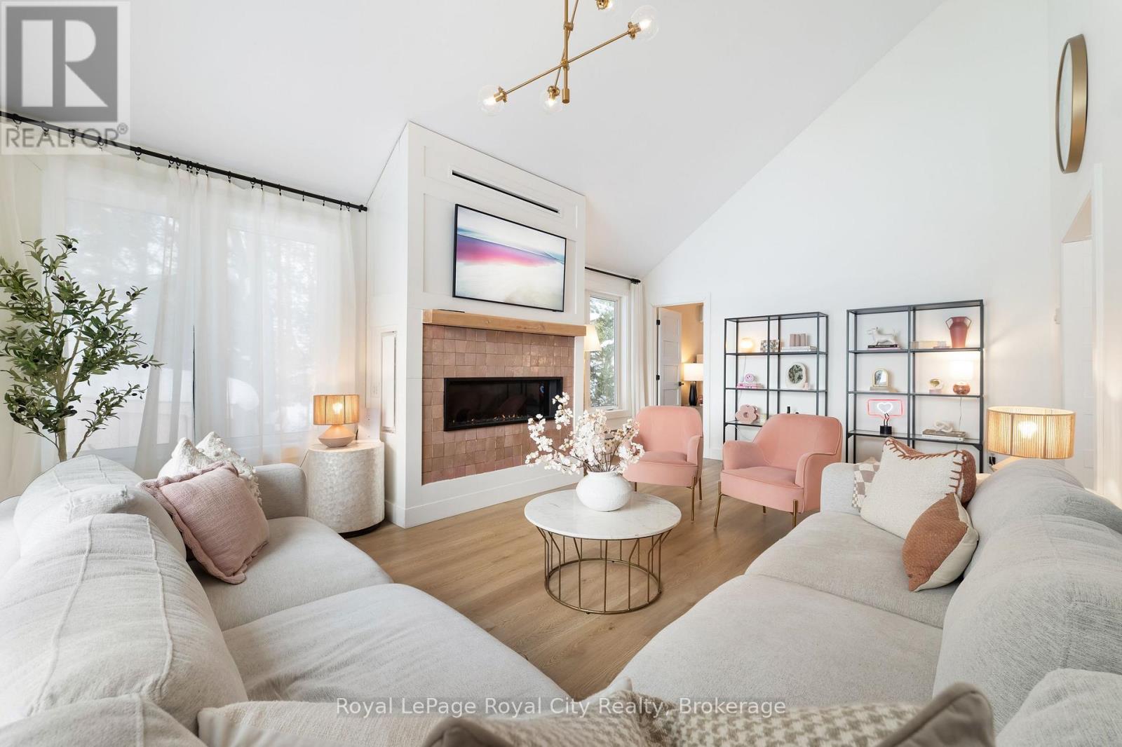 Start your day with uninterrupted sunrise views dancing across Lake Eugenia. Welcome to 194 Wiles Lane – a design-forward waterfront retreat offering 100 feet of private shoreline, a floating dock, gently sloped shorelines, and panoramic lake views from nearly every principal space.The two-tier deck, framed in glass, creates a seamless transition between indoors and out – complete with a built-in hot tub overlooking the water. This is lake living curated for both quiet mornings and sophisticated summer entertaining.Inside, vaulted ceilings and expansive windows flood the home with natural light. The statement fireplace, finished in custom blush tile, and the vaulted ceilings anchor the living room with warmth and architectural presence. The open-concept kitchen pairs elevated finishes with function: a stunning stone island with seating for four, rich emerald tile backsplash, brushed gold hardware, and plenty of cabinetry – flowing effortlessly into the dining space where sliding doors extend gatherings onto the deck against a lakefront backdrop.A secondary lounge and bar area offers a refined setting for evenings in, while three beautifully appointed bedrooms – each with individual A/C – provide comfort for guests. The shared bath is thoughtfully finished, while the primary suite is a private sanctuary featuring a spectacular ensuite with a freestanding tub, glass shower, dual vanity, and a lofted dressing retreat, also ideal as a reading lounge or private workspace.Turnkey and impeccably styled, this property offers exceptional lifestyle flexibility – whether enjoyed personally or positioned as a high-end short-term rental. Located just 25 minutes from Collingwood and 10 minutes to Beaver Valley Ski Club. 194 Wiles Lane is an elevated expression of lakefront living. (id:54164)