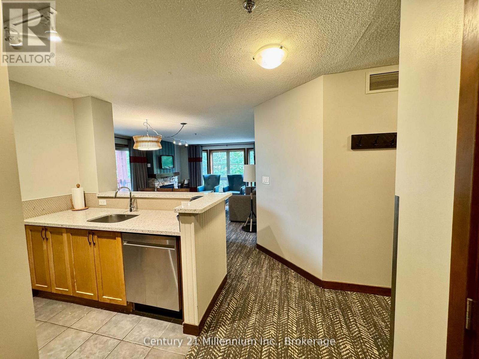 SLOPE-SIDE 3-Bedroom, 3-Bath End-Unit in Sought-After Weider Lodge. Enjoy premier slope-side living in the heart of Blue Mountain Village. This beautifully updated and fully refurbished 2nd-floor end unit offers breathtaking ski hill views and direct ski-in/ski-out access at the Silver Bullet lift. Designed to comfortably accommodate up to eight guests, the spacious open-concept layout features a bright living and dining area, fully equipped kitchen, and stylish turnkey furnishings included – truly move-in ready. Step onto the large private balcony and take in the vibrant setting – the perfect place to unwind après-ski while watching the slopes come alive. Just outside your door, enjoy Plunge! Aquatic Centre, the tranquil Mill Pond, mini putt, and the Village’s shops, dining, and year-round entertainment. Owners and guests benefit from outstanding on-site amenities, including a seasonal outdoor pool, year-round hot tub, fitness room, sauna, ski locker (common area), and secure heated underground parking. Currently enrolled in the Blue Mountain Village Rental Program, the suite offers fully managed, hassle-free ownership with strong rental income potential, helping to offset ownership costs while allowing owner use of up to 10 days per month in accordance with program guidelines. Whether you’re seeking a four-season family retreat, a couples’ getaway, or a proven passive revenue-generating investment, this exceptional slope-side offering delivers an ideal balance of lifestyle and income potential in one of Ontario’s premier resort destinations. HST is applicable to the purchase price (may be deferred with an HST number). A 2% + HST Blue Mountain Village Association entry fee applies on closing, plus an annual Village Association fee of $1.08 + HST per sq. ft. Utilities are included in the condo fees. (id:54164)