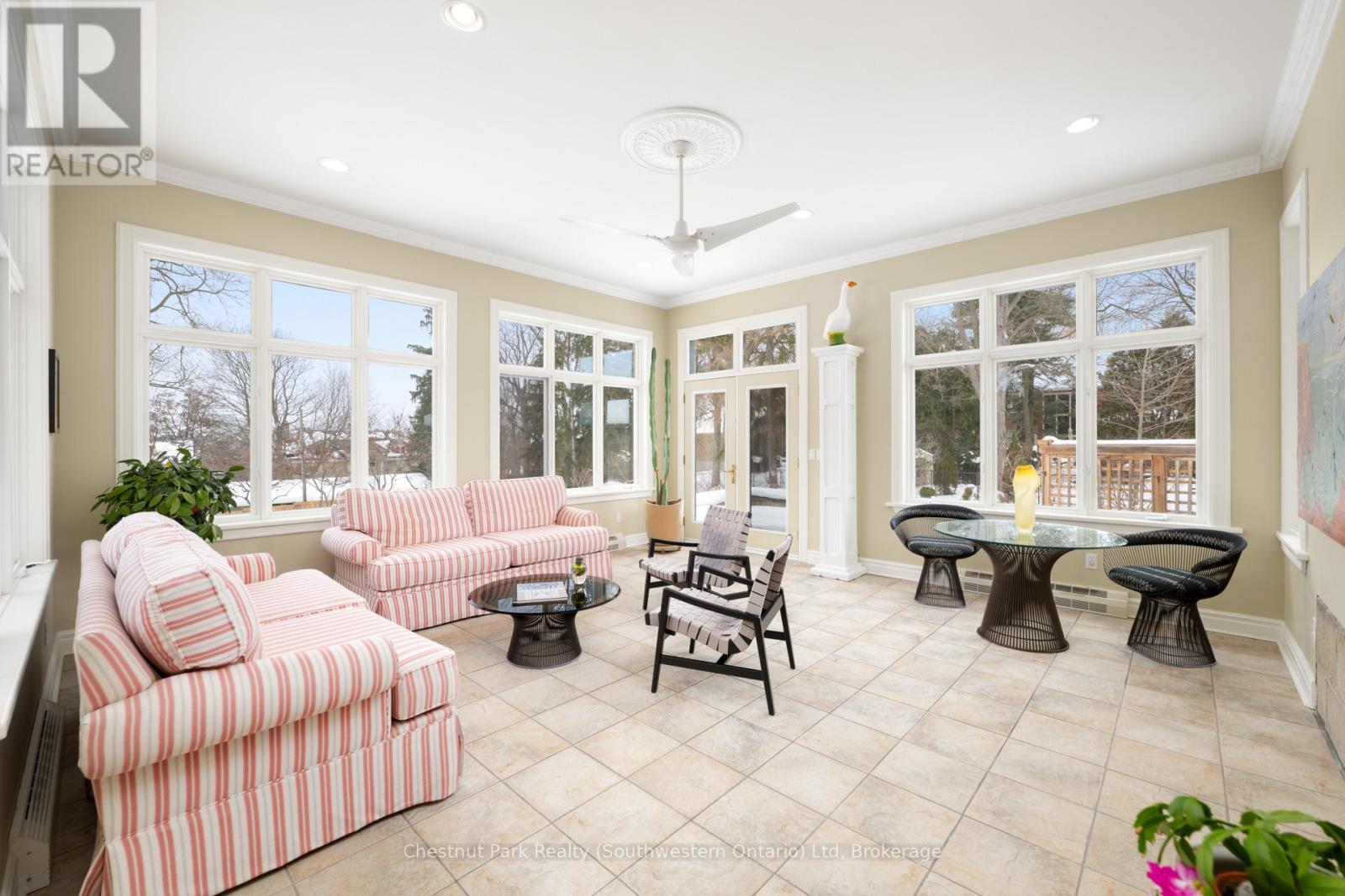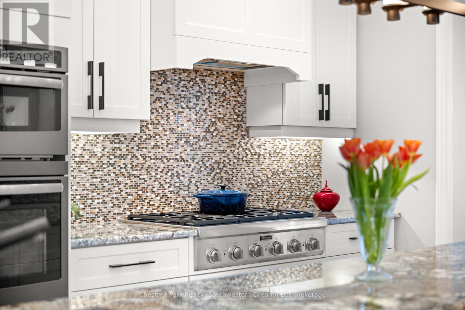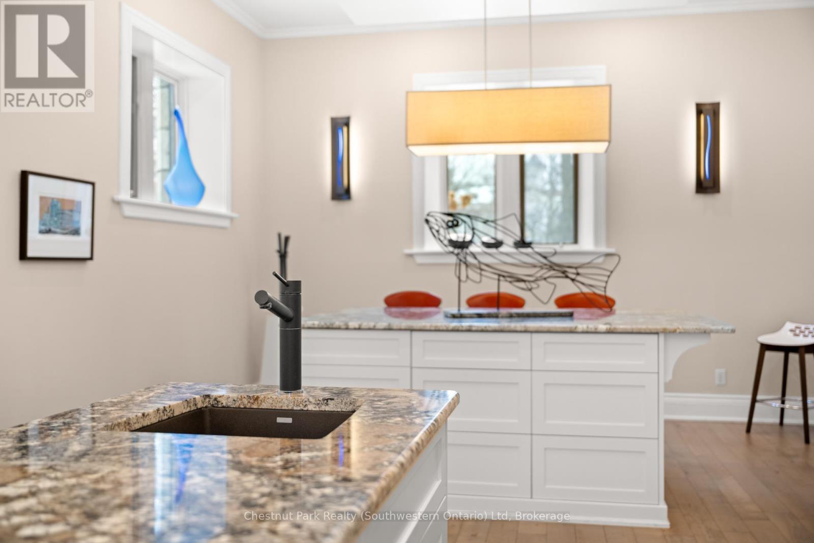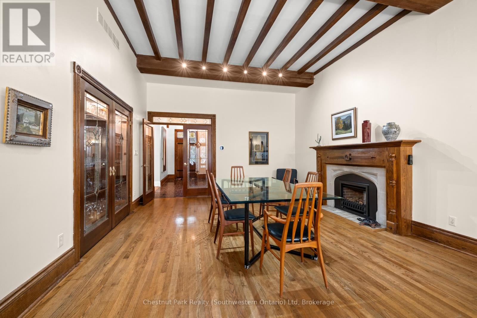 Welcome to Ker Cavan at 22 Stuart Street, Guelph’s extraordinary and irreplaceable estate quietly set on one of Guelph’s most prestigious streets. Rarely does a property of this calibre, provenance, and architectural importance come to market. Originally known as Tyrcathlen, Ker Cavan is a masterful example of Tudor Gothic Revival architecture, constructed between 1854 and 1856. Widely attributed to Sir Charles Barry-renowned architect of the British Parliament Buildings. As such, Ker Cavan stands among the most historically and architecturally significant homes in the city. The estate is further enhanced by its associated properties, including the adjacent residence and the original coach house. Set back from Stuart Street, the home is approached by a winding circular drive, creating a sense of arrival, privacy, and quiet grandeur. Mature trees and manicured grounds envelop the property, forming a park-like setting across approximately two-thirds of an acre. An oversized, detached stone garage complements the architecture while offering generous storage. Inside, a gracious vestibule opens to beautifully scaled principal rooms. The formal dining room is distinguished by a gas fireplace and period stained-glass windows. The redesigned kitchen is filled with natural light and centred around two substantial islands, offering effortless entertaining. A recent great room addition features expansive windows on every exterior wall, seamlessly connecting the interior to the terraces and gardens beyond. Above, the second floor offers three impressive bedrooms, a main bath, and laundry, while the third level is devoted entirely to a private and grand primary suite. The lower level provides versatile living spaces including a media room, billiards room, wine storage, and restored limestone and brick details throughout. Ker Cavan is not simply a home–it is a legacy estate, offering timeless architecture, exceptional privacy, and a truly rare opportunity in the heart of Guelph. (id:54164)