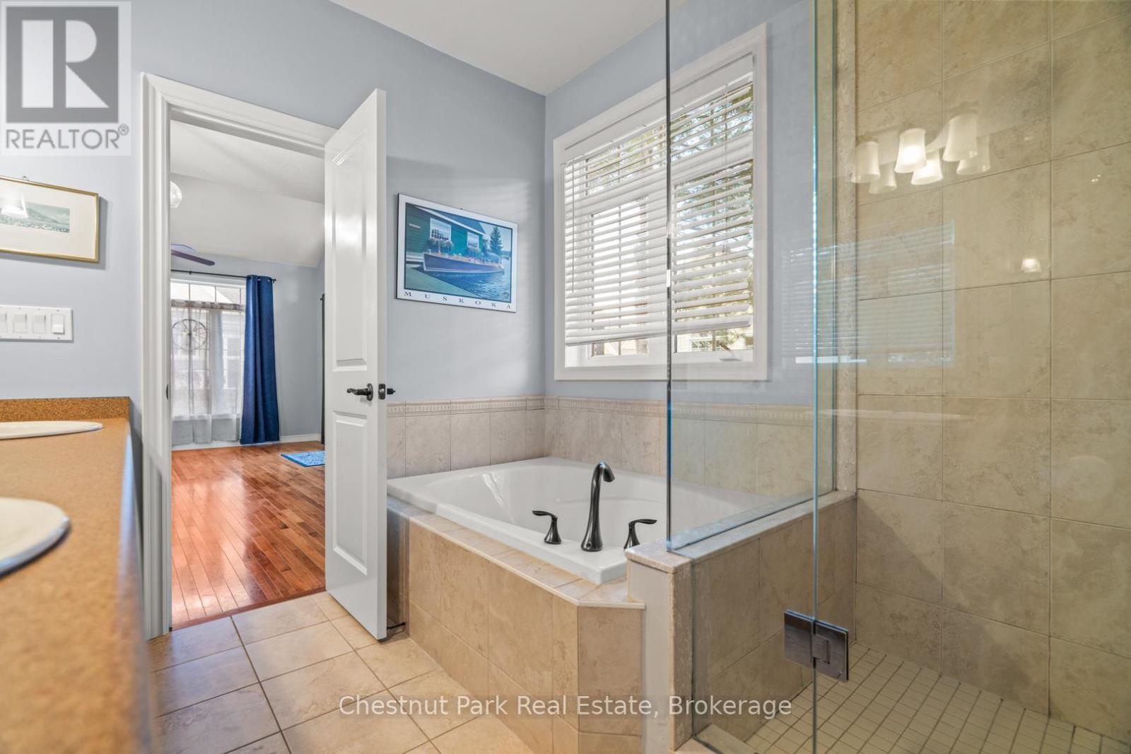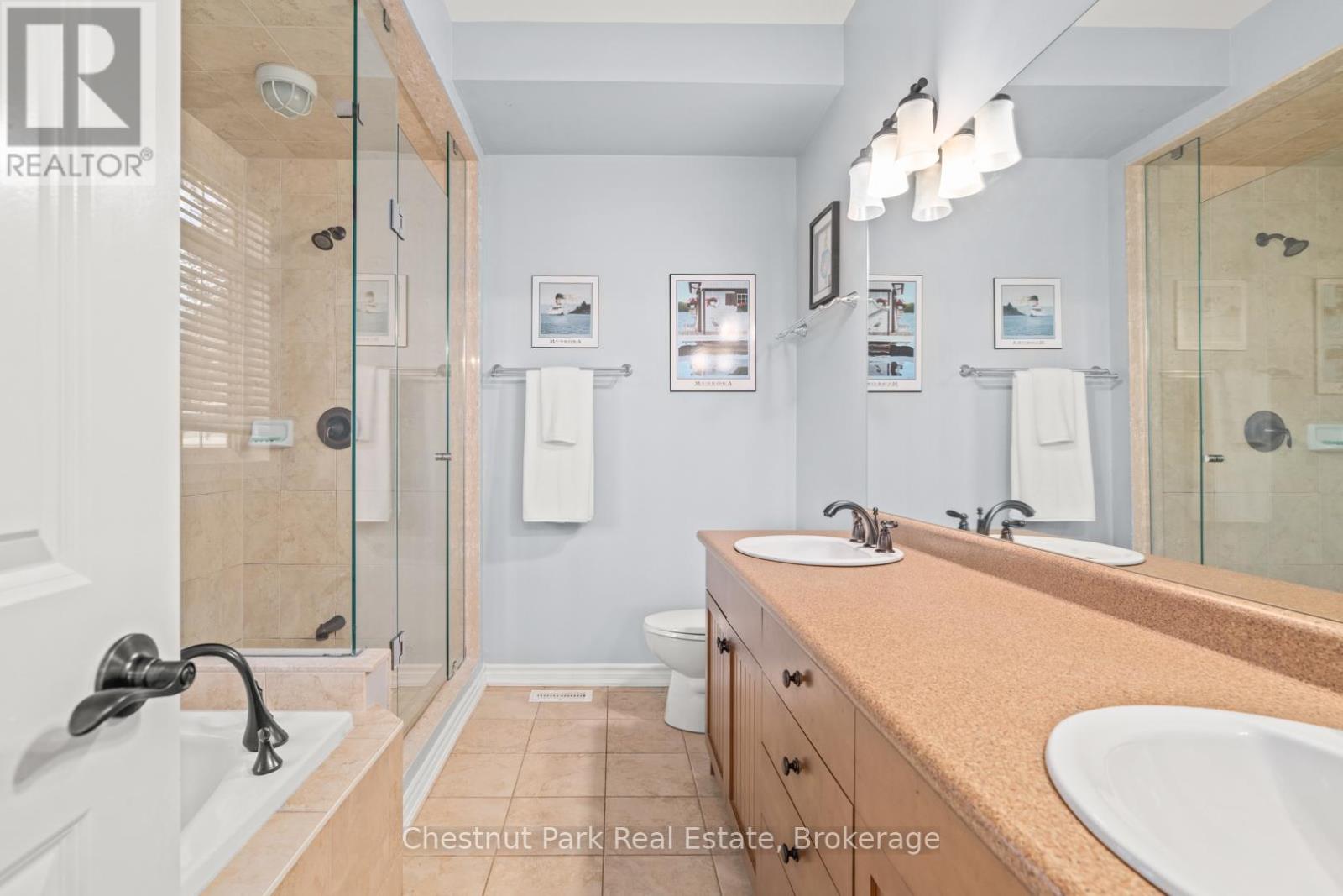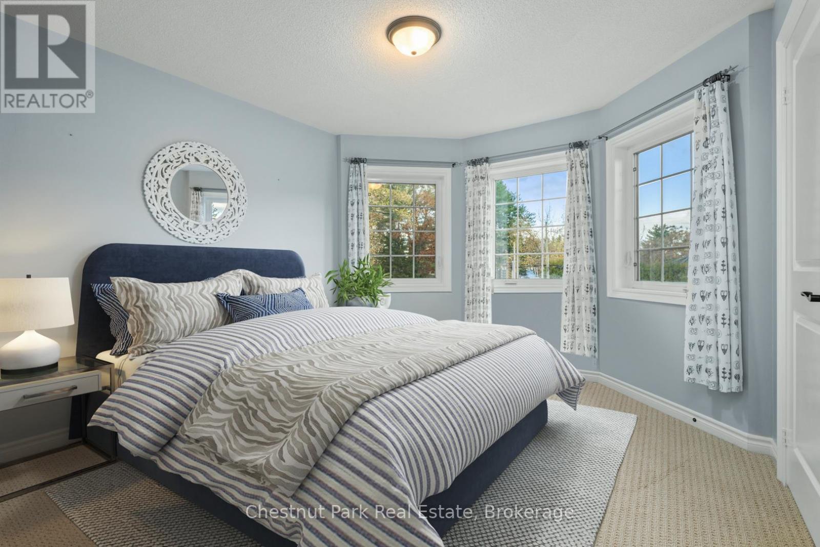 This stunning end unit townhome is located in the highly sought after Waterways community, and offers access to the Muskoka River and a maintenance free lifestyle. Originally built as the Model Home this grand property boasts an array of upgrades and higher end features & finishes. The impressive Great Room has cathedral ceilings, a full height stone fireplace and large windows that gift the space with natural light. The Chef’s Kitchen and open concept Dining Room offer an ideal area to entertain and host dinner parties with its large island, granite counter tops and unobstructive views of neighbouring green space and mature trees. The generous main floor Primary suite offers vaulted ceilings, a 5 piece ensuite , walk in closet and direct access to the expansive private deck- a peaceful retreat and perfect place to enjoy morning coffee or unwind at the end of the day. A laundry room/mudroom with access via the single car garage and a powder room complete the main level. Upstairs you will find an inviting open to below loft space overlooking the Great Room along with three spacious Bedroom and a four piece washroom- perfect for family or guests. The lower level is full of potential, with eight foot high ceilings and plumbing roughed in for another bathroom. The home also features an upgraded water filtration system. Mature perennial gardens & landscaped stone pathway add additional curb appeal and fibre internet keeps you connected. Maintenance Free Living at its finest. Lawn Care, complete snow removal and garbage/recycle pick up are provided with your monthly maintenance fee ($287). This beautiful home is situated next to Annie Williams Park, where you will find beach areas, a swim dock, room for your pets to play and year round events including theatre performances and the popular Muskoka Arts & Crafts Show. Enjoy the best of Muskoka living in this quiet, friendly neighbourhood just minutes from downtown Bracebridge and its many shops, restaurants and amenities. (id:54164)