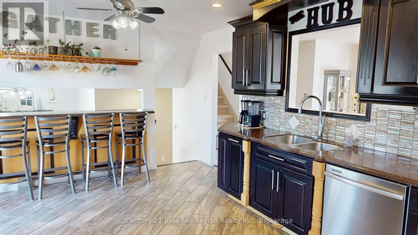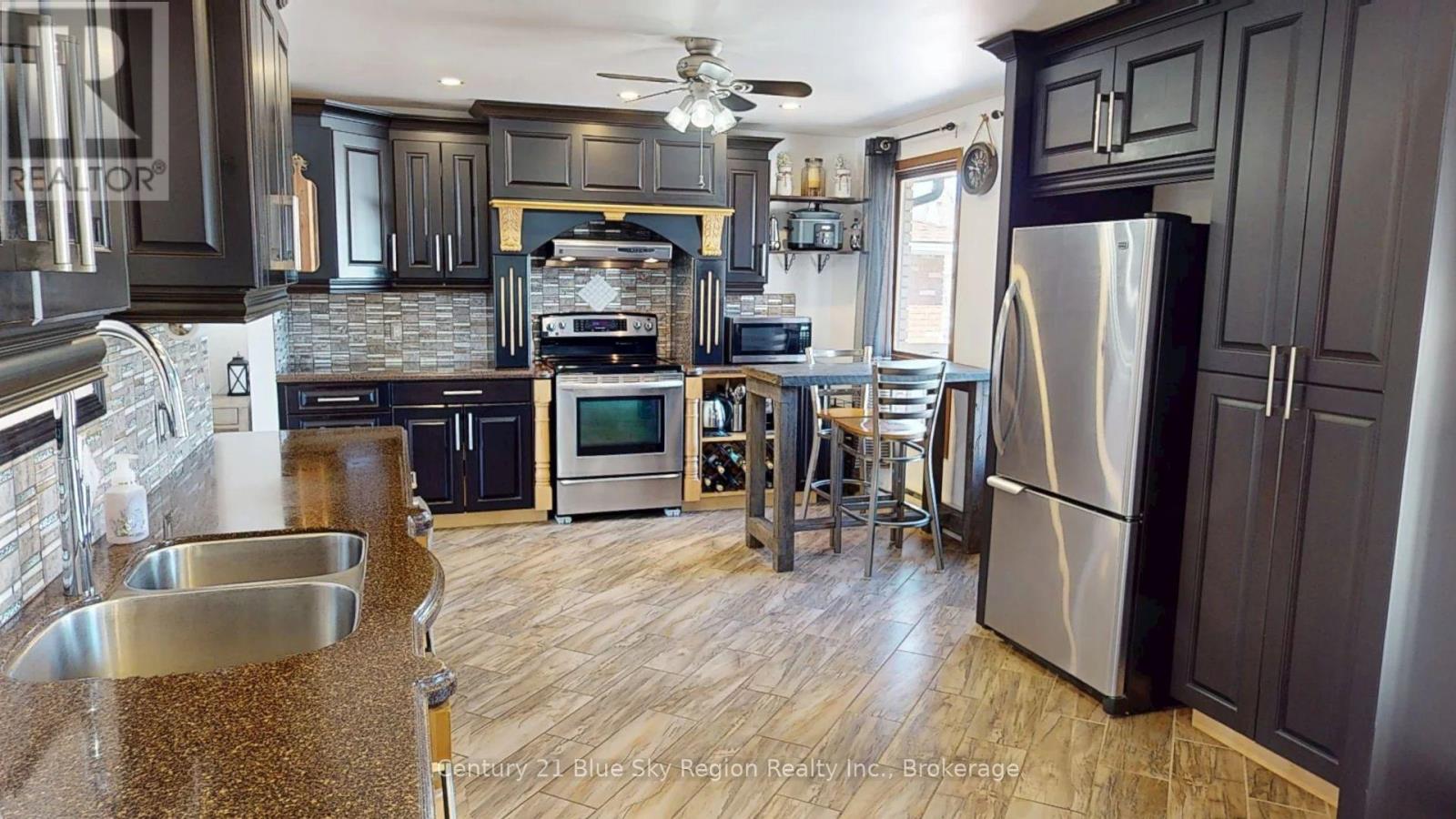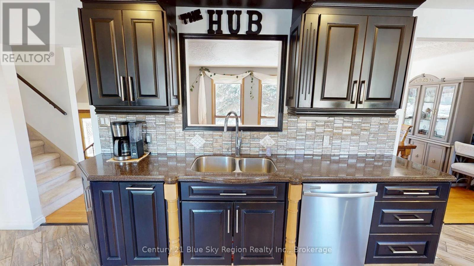 Welcome to a home that effortlessly blends style and functionality, offering the lifestyle you’ve always envisioned. The heart of the main floor is a stunning open-concept kitchen, dining, and living space where bold espresso cabinetry, mosaic tile backsplash, stainless steel appliances, and warm wood-look flooring create an atmosphere that’s equal parts sophisticated and inviting – perfect for entertaining or quiet family evenings. Sun-drenched windows in the adjacent living room frame lush evergreen views, bathing the space in natural light and bringing the beauty of North Bay indoors. Upstairs, the generously sized primary bedroom offers a serene retreat with warm flooring and a ceiling fan for year-round comfort, accompanied by three additional bedrooms ideal for family, guests, or a home office. The bathrooms are thoughtfully designed – one featuring cool blue tones with a walk-in shower, another with clean white finishes and tile flooring. The versatile lower-level living room provides bonus space for recreation or relaxation. With two living areas, a dedicated laundry, and 1927 sq. ft. of well-planned space, this home is ready to grow with you. (id:54164)