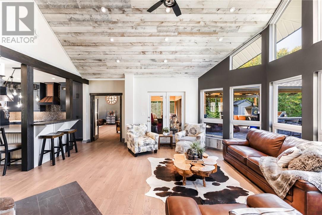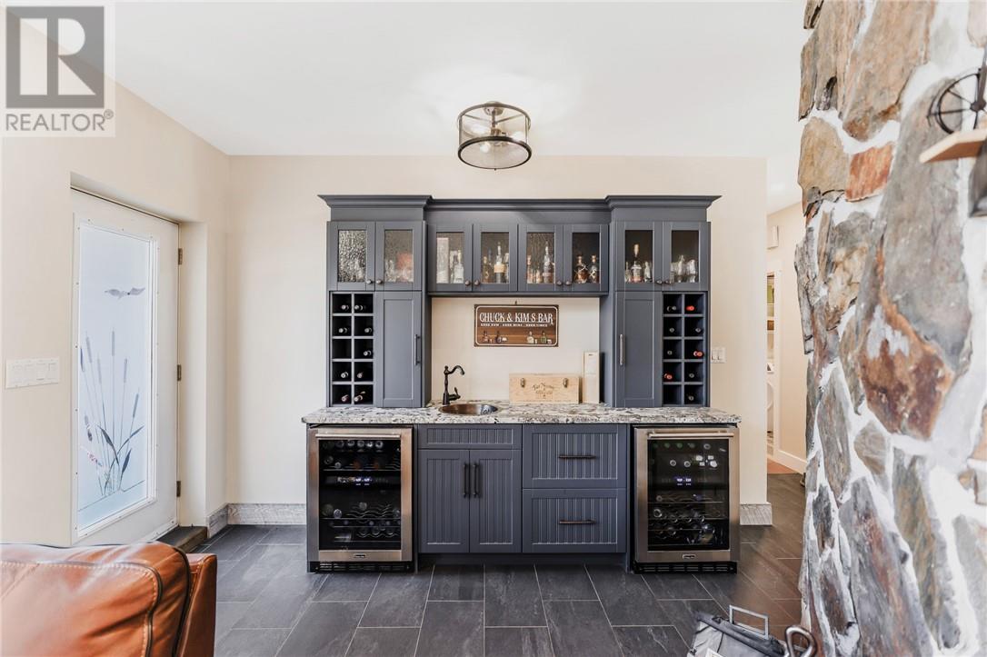 This is the unicorn you’ve been waiting for—6.8 acres with nearly 300 feet of water frontage on what every Long Laker knows as Sudbury’s best lake. A once-in-a-lifetime opportunity, this property offers the privacy and tranquility you’ve been dreaming of. Most of the acreage remains natural and untouched, while the waterfront area has been thoughtfully developed with a sprawling landscaped lawn. There’s more than enough space for all activities. The 2500 sq ft slab on grade bungalow has comfortable in-floor heating throughout, with 3 spacious bedrooms, and 2 full bathrooms. The en-suite off the primary bedroom is an absolute spa get away. The great room has the most stunning views of the lake with 14 foot cathedral ceilings highlighted by the stone wood fireplace. There is a wet bar off the living room for convenient entertaining. The kitchen is stunning with a granite island built for large gatherings. The family room has vaulted ceilings and offers a second recreational space or TV room. It leads to your 3 season porch. The lakeside has some great features including a custom fire pit sitting area and the covered outdoor kitchen with cabinets, prep area, sink and granite countertops. At the lake you have another deck with a gazebo and no waterfront home is complete without the wood burning sauna and outdoor shower. The waterfront offers the most beautiful shallow sand that you can walk out for hundreds of feet. The original garage has been converted to a Bunkie for the kids and guests. With two bedrooms and a space for a bathroom. The brand-new 60×40 completely finished garage provides endless possibilities. With a state-of-the-art boiler system creating the perfect in-floor heat. Whether it’s for your vehicles or toys, this addition makes the property as practical as it is beautiful. The whole property back-up generator offer country living peace of mind. This unique combination of space, privacy, and pristine lakefront living is unmatched. (id:54164)