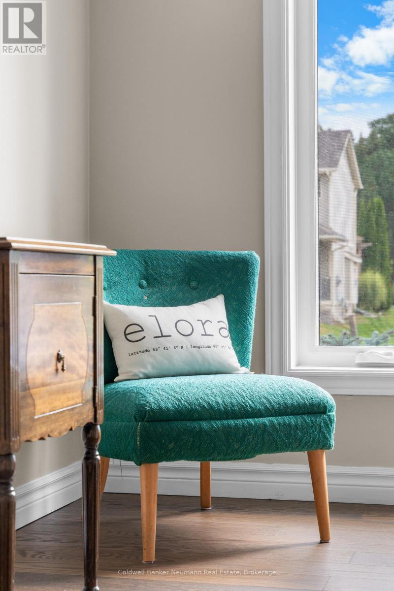 This beautifully updated solid red brick bungalow, constructed by James Keating Construction, offers a bright and calm atmosphere from the moment you enter through the new front door. The large windows throughout the main level (2019) allow ample natural light to flood the home. This 2BR, 2 bath home features newer engineered hardwood floors throughout the main level and updated carpeting in each bedroom. The kitchen, renovated in 2021, boasts white shaker cabinets, quartz countertops, a tile backsplash and stainless steel appliances. The renovated (2024) main level 3pc bath includes a walk-in tile shower with glass enclosure, a new vanity with linen tower and an updated light fixture. Laundry facilities are conveniently located on the main floor, equipped with a newer washer and dryer and a large folding counter. Downstairs, a spacious rec room serves as a versatile space for movie nights, office work or a home gym. A 4pc bathroom completes the finished space. The basement also features a large storage room that could be converted into a third bedroom. An unfinished mechanical room offers ample space for additional storage or a workshop. The furnace/AC, air exchanger and gas water heater were all updated in 2019, 2022 and 2026, respectively. Attic insulation was topped up in 2021 to enhance the home’s energy efficiency. The double concrete driveway connects to a walkway leading to a large concrete patio (all 2022). The patio features a gazebo with solar roller shades, providing all day enjoyment of the backyard. Tasteful, low-maintenance landscaping offers privacy and seasonal colour. Barbecuing is convenient with the natural gas hookup on the patio. Enjoy nearby schools, scenic trails, shops, restaurants, parks/outdoor activities and Elora’s vibrant downtown. This property offers a perfect blend of small-town charm and modern convenience. An exceptional opportunity for families or downsizers seeking a well-built home in one of Ontario’s most desirable communities! (id:54164)