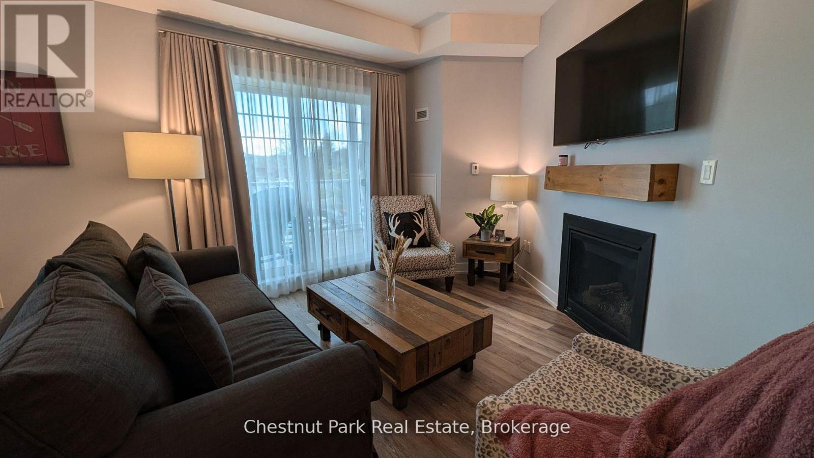 A Muskoka Retreat with Earning Potential! Dreaming of owning a little slice of Muskoka? Welcome to Unit 316 at Lakeside Lodge in Deerhurst Resort a beautifully furnished 1-bedroom condo that offers the best of both worlds: a carefree cottage lifestyle with the potential to generate income when you’re not using it. Step inside and you’re greeted by a bright, open-concept layout with a full kitchen, island seating, and a cozy gas fireplace perfect for curling up after a day on the trails or the lake. The spacious living area flows out to a private balcony with peaceful views over Sunset Bay – your front-row seat to golden morning light and quiet evening skies. As part of the Deerhurst community, you’ll enjoy year-round access to resort-style amenities: a lakeside outdoor pool, fitness center, owners lounge, shared spaces, laundry facilities, and of course, the sparkling waters of Peninsula Lake. Summer days are made for swimming, paddling, hiking, and tennis, while winter invites you to hit the cross-country ski trails or spend the day carving turns at nearby Hidden Valley Ski Club. This unit is currently enrolled in the resorts rental program, giving you the option to earn rental income when you’re not here – making it a smart and low-maintenance way to step into the Muskoka market, whether you’re a first-time buyer or savvy investor. Tucked just minutes from downtown Huntsville’s shops, restaurants, and cultural gems and a short drive to Algonquin and Arrowhead Parks this is more than a property; its a lifestyle. Don’t miss this chance to own a piece of Muskoka charm with flexibility and potential. Contact us today to schedule your private tour. ***Measurements approximate. Hydro not included. HST is applicable to the sale. (id:54164)