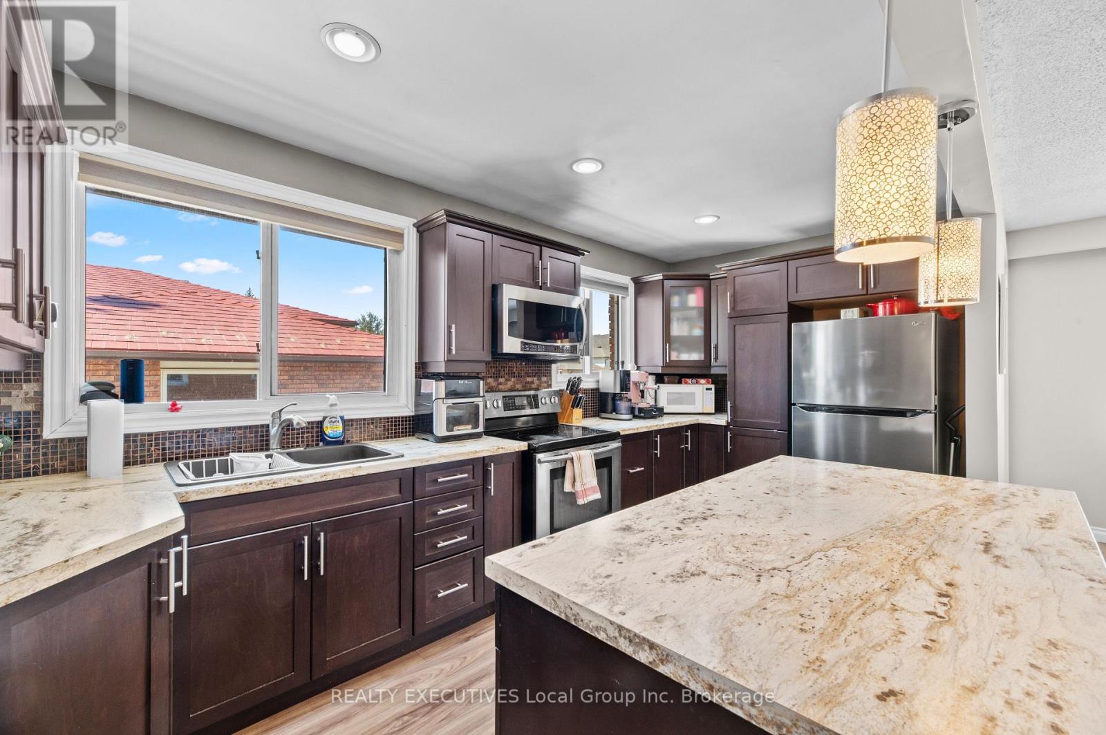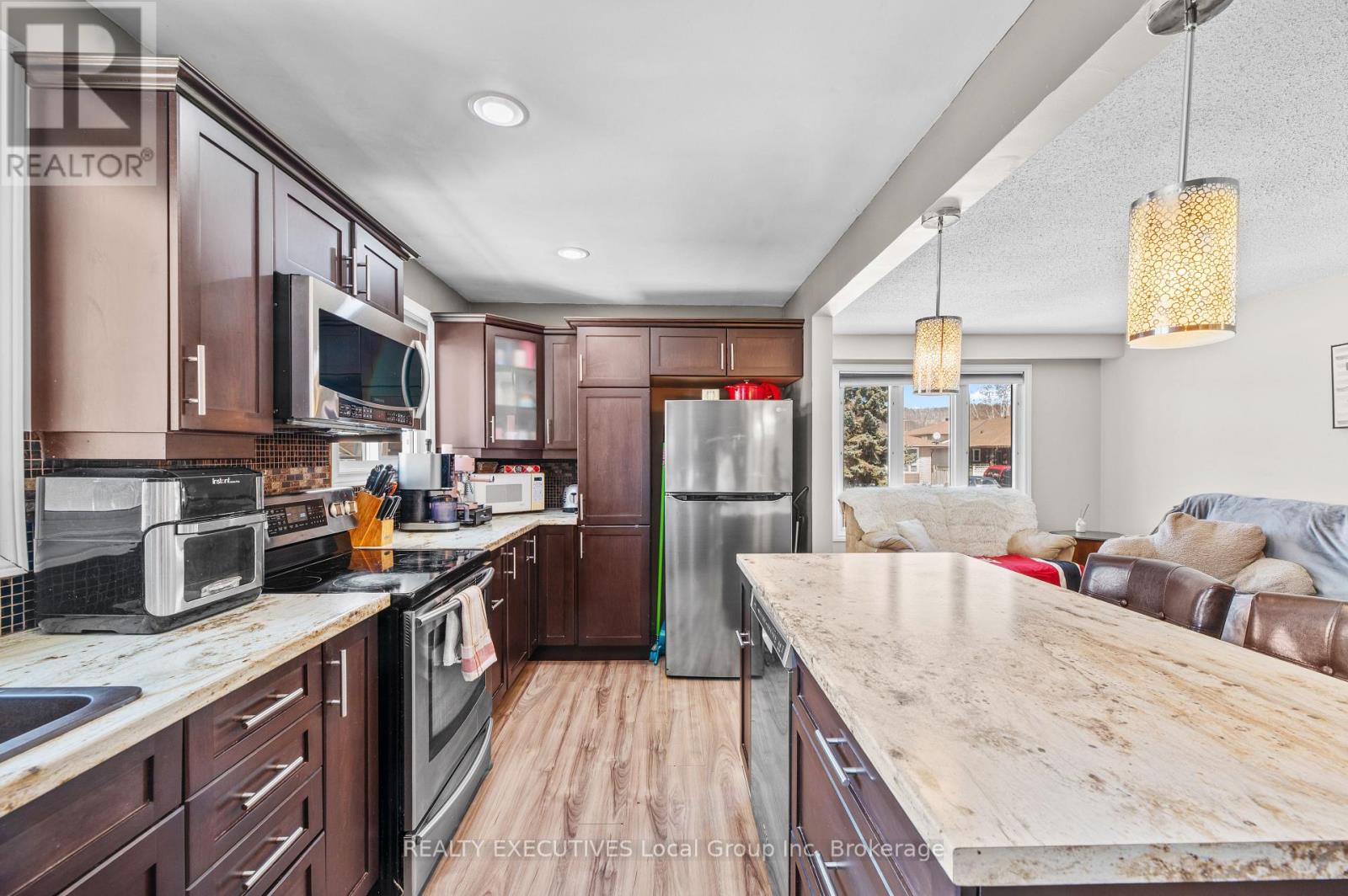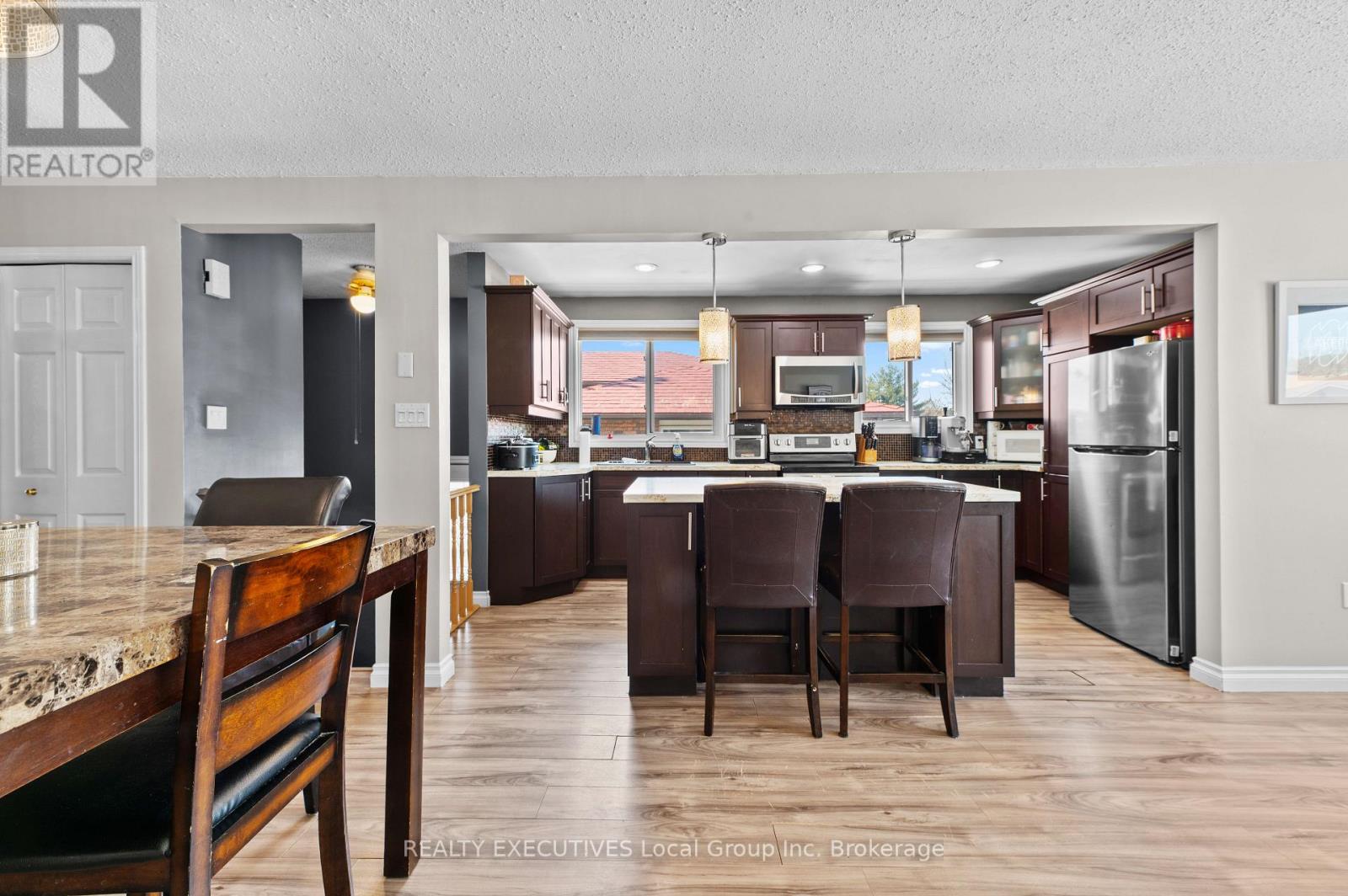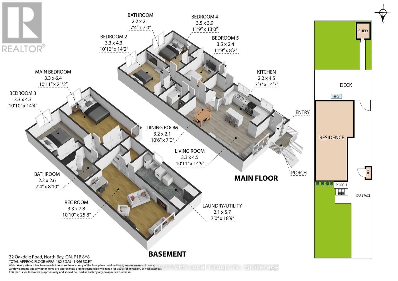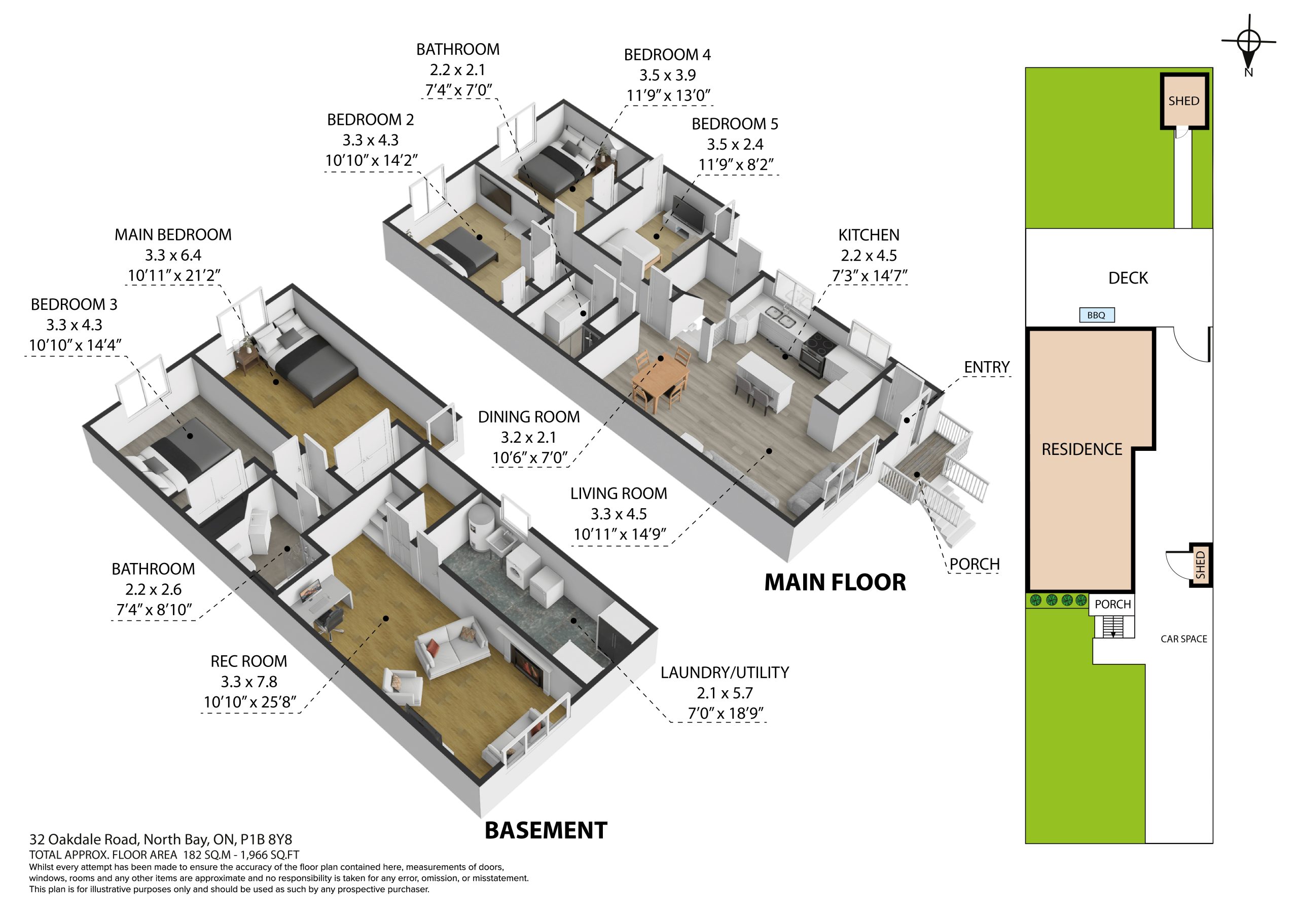 32 Oakdale Road – North Bay 3+2 bedrooms 2 bathrooms separate entrances fenced yard College Heights location. If being close to everything matters, 32 Oakdale Road puts you right where you want to be. Located in the College Heights neighbourhood, puts you close to Nipissing University, Canadore College, shopping, restaurants, and public transit. The hospital is also just minutes away, making this a convenient and well-connected area. This semi-detached bungalow offers a functional 3+2 bedroom, 2 bathroom layout with an open-concept main living space. The kitchen features an eat-at island and flows into the dining and living areas. Down the hall are three bedrooms and a four-piece bathroom on the main level. Downstairs adds more usable space with a rec room featuring a gas fireplace, two additional bedrooms, and a three-piece bathroom, along with the laundry and utility area. The home has two separate entrances, a front entrance with a hall closet and a side entrance that provides access to both levels, adding flexibility to how the space is used. Outside, the backyard is fully fenced with a deck and storage shed, and the paved driveway accommodates two vehicles. This home is heated by a gas forced-air furnace and has A/C. A solid option in a location that continues to be in demand, close to schools, amenities, and everyday essentials. (id:54164)