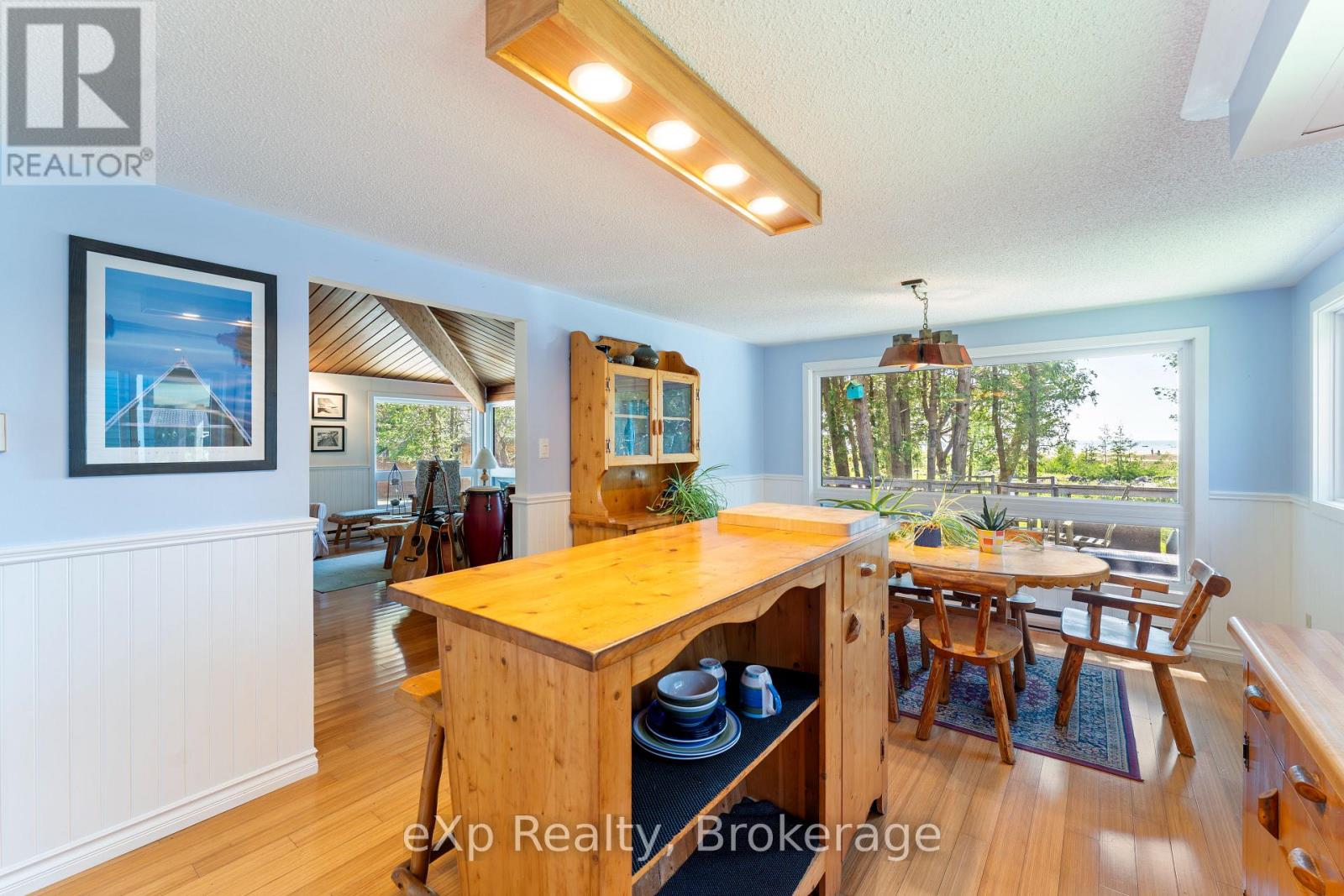Lakefront Living with a great beach and unforgettable sunsets. Welcome to your dream retreat on the shores of Lake Huron! This 3 bedroom, 2 bathroom Viceroy home boasts stunning cathedral ceilings and a stone fireplace that anchors the spacious living room. Beautiful water and beach views through the large windows and two patio doors; one leading to a water view 17 foot x 30 foot deck, the other to a private balcony with sweeping views of the sandy beach below. The oversized 30′ x 30′ heated four season garage is a great workshop, for all your tools and all your toys. Even better, the garage features a 2 bedroom, 1 bathroom loft with a full kitchen, ideal for guests and extended family. Whether you are looking for a year round home or a lakeside escape, this property has it all, comfort, space, and unbeatable waterfront views. All windows replaced in 2021 (Northstar, most triple pane), Siding 2021, Garage built 2003 with radiant in floor heat with separate zones upper and lower. New raised septic system in 2003, drilled well. Easy access to the fine sand beach directly across the road or walk north on Bay Street past 3 cottages to the sign “Hannigan Cottage”, access the beach through the boardwalk. The beach and waterfront are great for kids and puppies as well as kayaking, fishing, paddle boarding, sailing power boating and all other watersports. Or just relaxing by the water. A rare find on this bay, this property has been owned by the same family for over 25 years. Properties like this don’t come upon ofter… close to Sauble Beach, Southampton, Tobermory and Owen Sound (id:54164)
