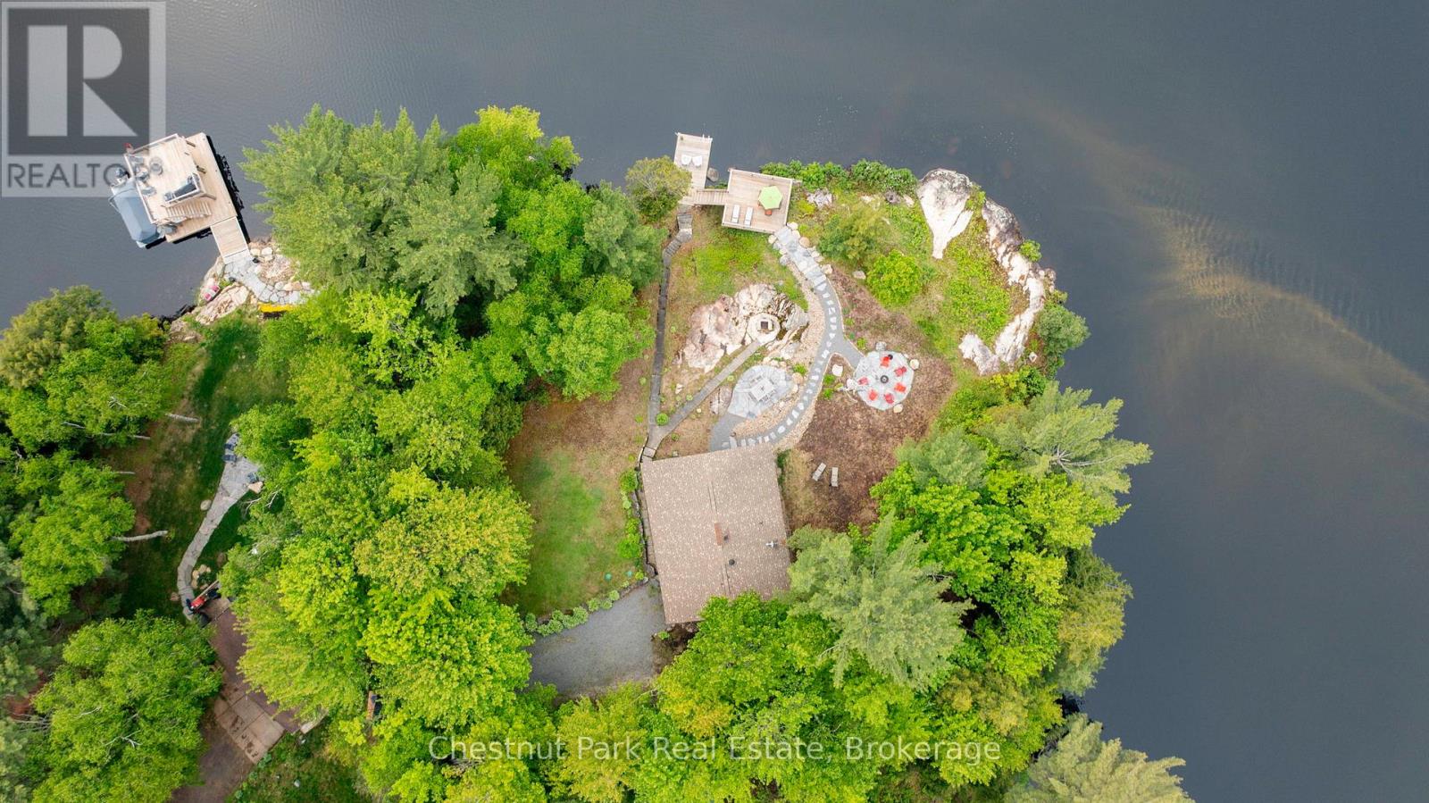 Welcome to 4 Mallard Lane on picturesque Dickie Lake, where 310′ of panoramic northwest-facing shoreline offers all-day sun and postcard-worthy sunsets. Set on a gentle point with 0.64 acres of beautifully landscaped grounds and naturally exposed Muskoka granite, this cherished 3-season cottage has been loved by the same family for over 50 years – now it’s ready to welcome yours. The raised bungalow features 4 bedrooms, 1.5 baths, and a bright open-concept kitchen, dining, and living area with a cozy propane fireplace and breathtaking lake views. From the living room, step onto an expansive wrap-around deck (2017) perfect for sipping your morning coffee while soaking in the serenity of the lake. Downstairs, you’ll find a fun retro bar and a spacious flex room ideal for games, lounging, or extra storage. A convenient shower in the lower level makes post-swim cleanup a breeze. Stunning Muskoka granite walkways (2023) wind through the yard, connecting multiple granite patio spaces, a firepit for stargazing and s’mores, and the lakeside entertaining areas. Between the patio area and the dock, a large elevated deck (2021) provides an amazing space for sunbathing or lakeside dining. The water off the dock (2021) is perfect for swimming or mooring your boat, canoe, kayak, or paddleboards and the included boathouse offers secure storage for all your lake toys. A wired-in Generac generator adds peace of mind during cottage stays, rain or shine. The septic system was replaced in 2004, giving peace of mind for years to come. Whether it’s morning coffee on the dock, sunset dinners on the deck, or paddling out for an early morning swim, this is cottage living at its finest. Only 20 minutes from Huntsville and just minutes to the vibrant village of Baysville – home to local gems like Cast Iron Restaurant, Miss Nelle’s, Lake of Bays Brewing, Humble Pie Pizzeria and the famous summer Walkabout Festival – this is your Muskoka escape. Let this special place become part of your story. (id:54164)