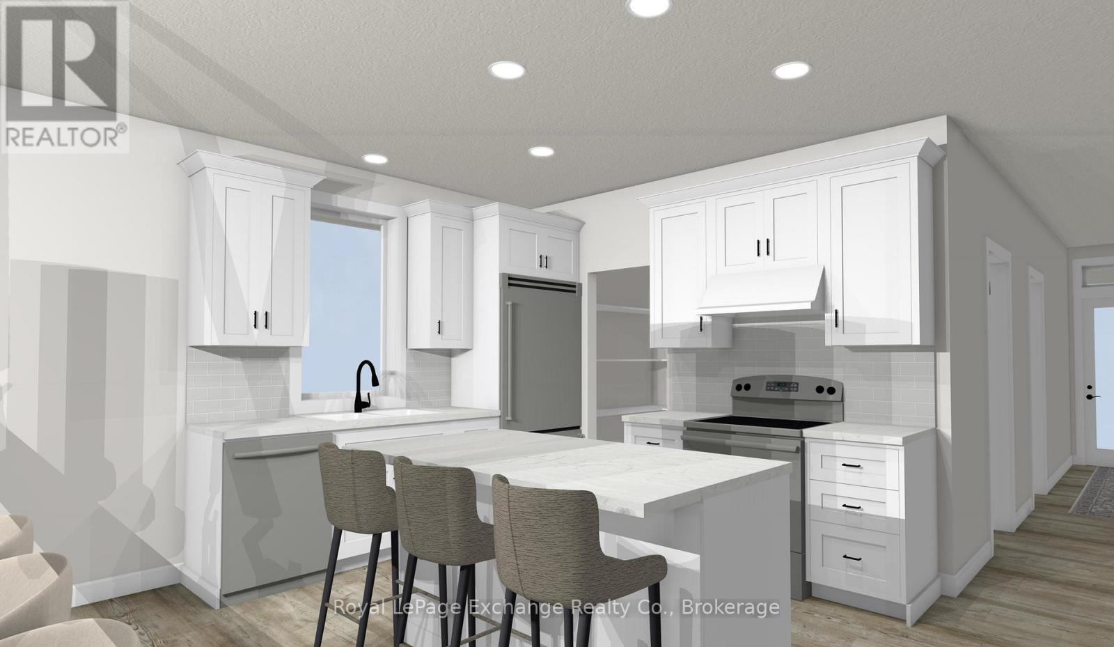 Phase 2 to be built . Discover the epitome of serene living with these six exquisite freehold townhomes nestled in the prestigious Golf Sands Subdivision. Embrace the luxury of NO CONDO FEES and relish in the allure of being carefree. Situated adjacent to the picturesque Kincardine Golf and Country Club and mere steps away from a pristine sand beach. Each townhome offers unparalleled elegance. Indulge in the convenience of single-floor living with over 1345 square feet of meticulously crafted space. Experience the seamless flow of open-concept living and dining areas, complemented by a spacious kitchen featuring a large pantry and 9-foot ceilings. Unwind in two generously sized bedrooms and revel in the opulence of two full bathrooms, both boasting quartz counter tops, the guest offering an acrylic tub and shower, and the ensuite featuring a custom tiled shower. Enjoy the convenience of an attached garage, complete with an automatic opener, and a meticulously landscaped front yard adorned with lush shrubs. Relax on the charming front porch or retreat to the covered rear deck, perfect for enjoying tranquil moments outdoors. Experience ultimate comfort with in-floor heating and ductless air conditioning, ensuring year-round comfort. With thoughtful features such as a concrete driveway, topsoil, sod, and designer Permacon Stone exterior finishing, each townhome exudes timeless elegance and quality craftsmanship. Rest assured with the peace of mind provided by a full Tarion warranty. Don’t miss your opportunity to secure your dream home today. No need for up grades ,heat pump, trusscore on garage walls, inground sprinklers, fenced rear yard and gas fireplace all included. (id:54164)