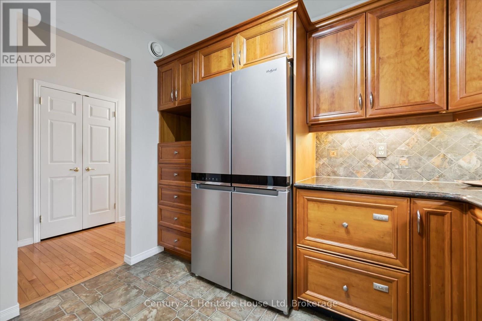 Welcome to this beautifully maintained all-brick bungalow in the charming community of Elora, built by respected local builder James Keating. This thoughtfully designed 2-bedroom home offers comfort, functionality, and timeless appeal. Inside, you’ll find hardwood floors and a bright, airy living space with a vaulted ceiling and an abundance of windows that fill the home with natural light. The main living room features a cozy gas fireplace, perfect for relaxing evenings. The updated kitchen offers granite countertops, stainless steel fridge and stove, and ample cabinetry for storage. A standout feature is the double-drawer dishwasher, with each drawer operating independently for added convenience. A built-in “silent butler” crumb catcher, along with a charming garden window, adds both function and character. The adjacent dining area includes sliding doors leading to a beautifully landscaped backyard. Enjoy outdoor living with a private two-level deck and awning, ideal for entertaining or relaxing. The main floor includes two bedrooms and a spacious front room that can be used as an office, den, or flex space. California blinds are featured in both the bedrooms and den. A large closet offers potential for main-floor laundry. The partially finished basement provides a generous rec room with a second gas fireplace, a 2-piece bath with rough-in for a shower, a large laundry/storage area, a workshop with bedroom potential, and an additional room for office, crafts, or storage. Additional features include newer windows, a VanEE air exchanger, an insulated double car garage door and more. Ideally located near the hospital and just minutes to downtown Elora and Fergus, with great restaurants, shops, and everyday amenities nearby. A versatile and well-cared-for home in a desirable location, book your showing today! (id:54164)