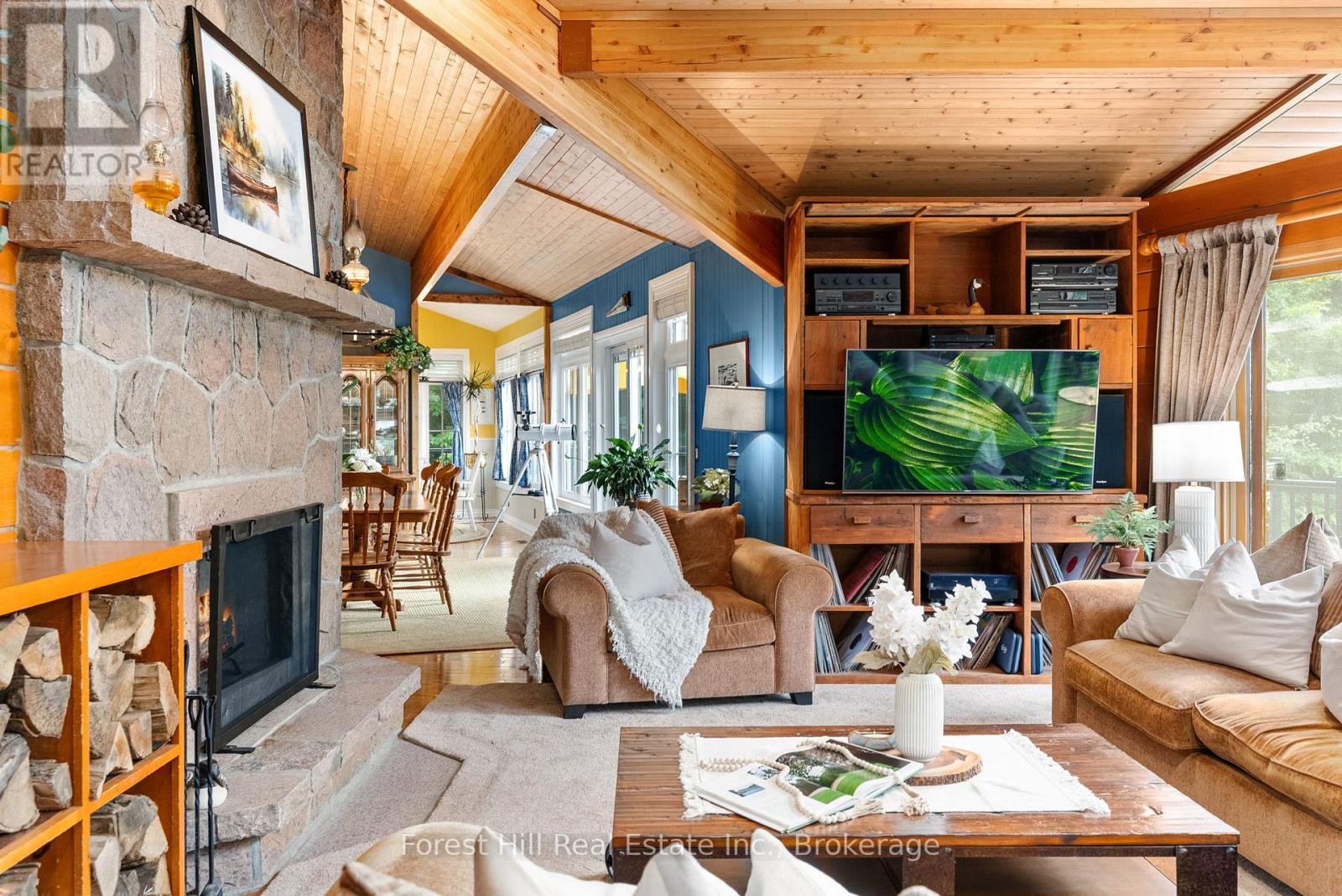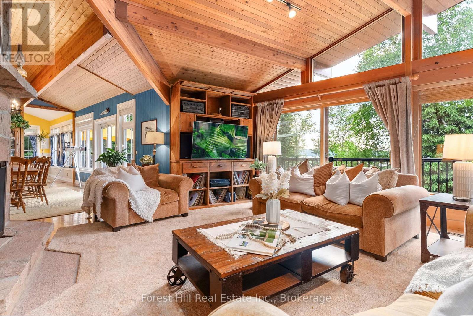 Located on one of the premier properties on beautiful Kawagama Lake, the four season lakehouse boasts a majestic sunset view and a charming, fully equipped seasonal guest house or income property shares the same spectacular vista. With a covered boat dock with two boat lifts, separate swimming dock, large garage with ample storage space and a handcrafted, classic woodshed, this property has everything you need for function and comfort. The main lakehouse, known as “Loon’s End”, is suitable for full-time or seasonal residence and offers an open concept main floor with natural, wooded and lakefront views from every window. A spectacular open hearth fireplace is the centerpiece of the living area which opens to an expansive, wrap around deck that affords areas for outdoor cooking, entertaining, dining and private relaxation, all while enjoying the specular panoramic view over the lake. Affectionately known as “The Owl’s Nest”, the guesthouse includes a fully equipped kitchen, three bedrooms and bathroom with shower. A full deck and outdoor seating area with a fireplace and stone walkway leading to the swim dock offer endless possibilities for outdoor living, dining and activities. A newly installed KOHLER generator services both of the dwellings on the property to ensure continuous access to all functions. This is truly a four season property, offering the opportunity to enjoy the beauty of nature in summer with endless possibilities for swimming, boating, watersports, biking and hiking. Fall colours are on full display on Kawagama Lake Road, winter activities abound and the spring thaw is a magical time of melting snow, rushing streams and the return of the many species of warblers and songbirds to the area. Make this property your own and share the priceless gift of time spent making memories in the magnificence of the natural beauty of the Kawagama Lake region. (id:54164)