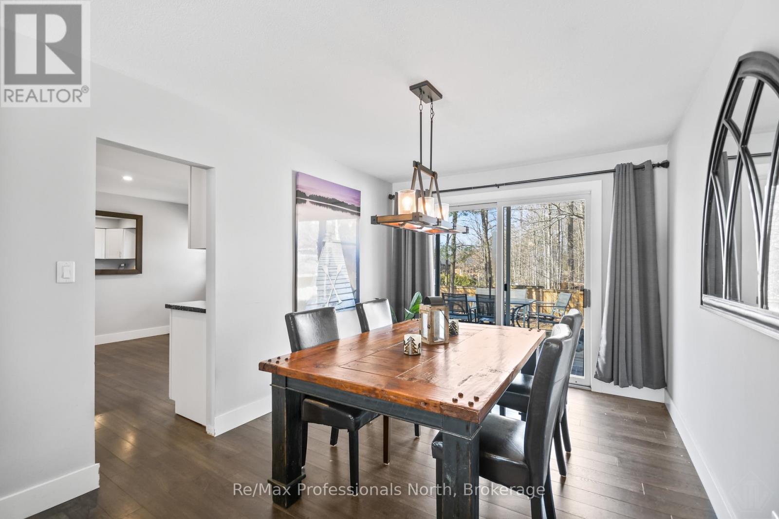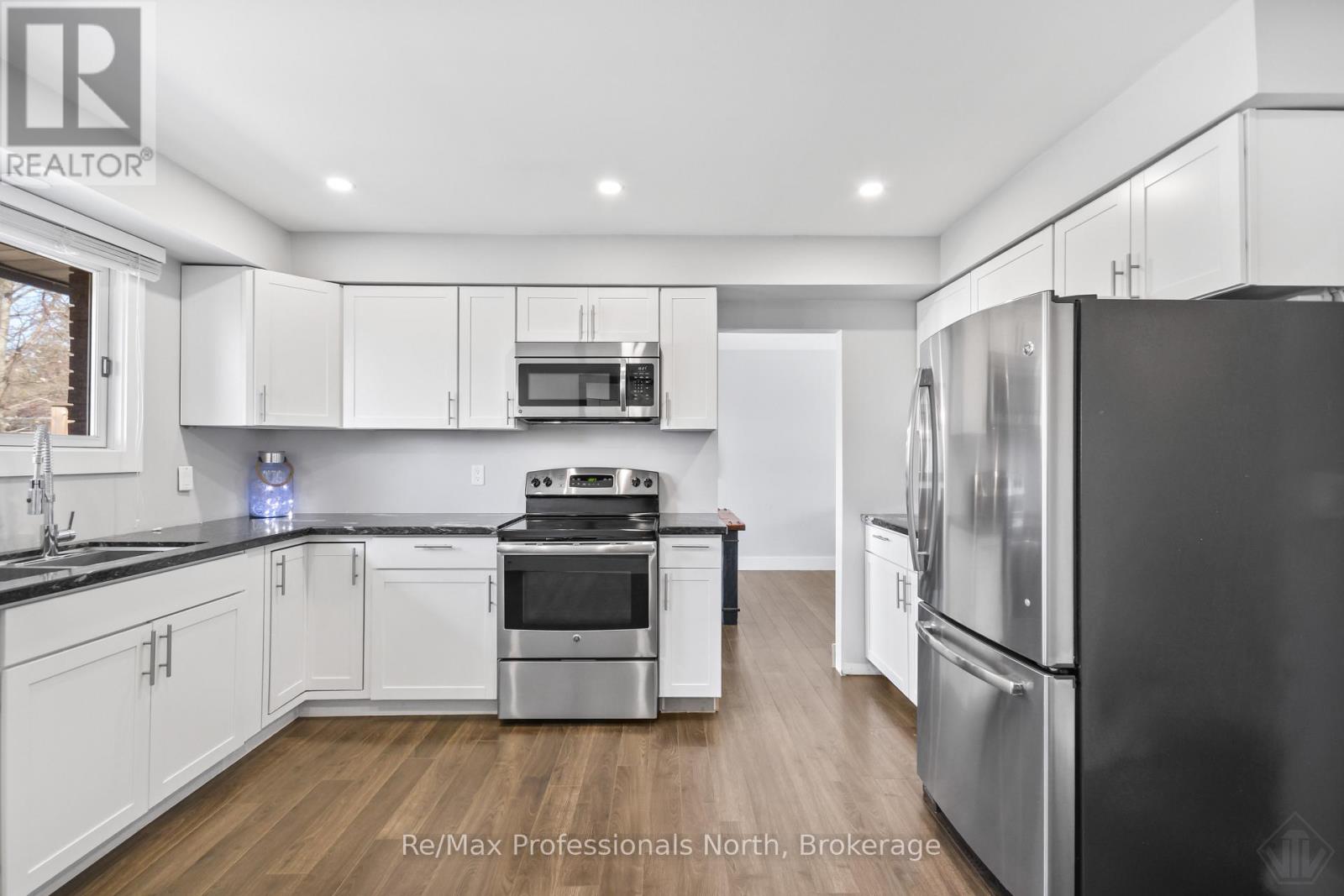 Welcome to this ideally located raised brick bungalow in the heart of Gravenhurst, just a short walk to beautiful Lorne St. beach and Gateway Ungerman Park on Lake Muskoka. This well maintained all brick home offers 3+2 bedrooms and 2.5 bathrooms, perfectly suited for families, those seeking multigenerational living or rental income. The main floor features a bright, open-concept living and dining area, ideal for both everyday living and entertaining. Updated flooring, kitchen cabinets, pot lights, granite countertops, heated tile bathroom flooring and more. The home has a spacious kitchen and dining room both with easy access to the back yard and deck. The dining room offers a sliding door walkout to the large deck overlooking the private backyard perfect for summer gatherings, hot tubbing, fires and outdoor enjoyment. The fully finished lower level in-law suite expands your living space with a generous family room, a full kitchen, 2 bedrooms and a full bathroom. With separate garage walk-up entrance it allows for easy grocery drop offs right into the LL kitchen. An oversized single attached garage provides convenient access to both the lower level and backyard, while the paved circular driveway ensures plenty of parking for guests and family. Excellent access to the backyard for boat storage, travel trailers, and toys, easy to get machines back to the backyard for servicing or a future pool installation. Situated in a desirable neighbourhood with 1,200 sq ft both up and down this bungalow combines comfort, functionality, and an unbeatable location close to the water, trails, and town amenities. (id:54164)