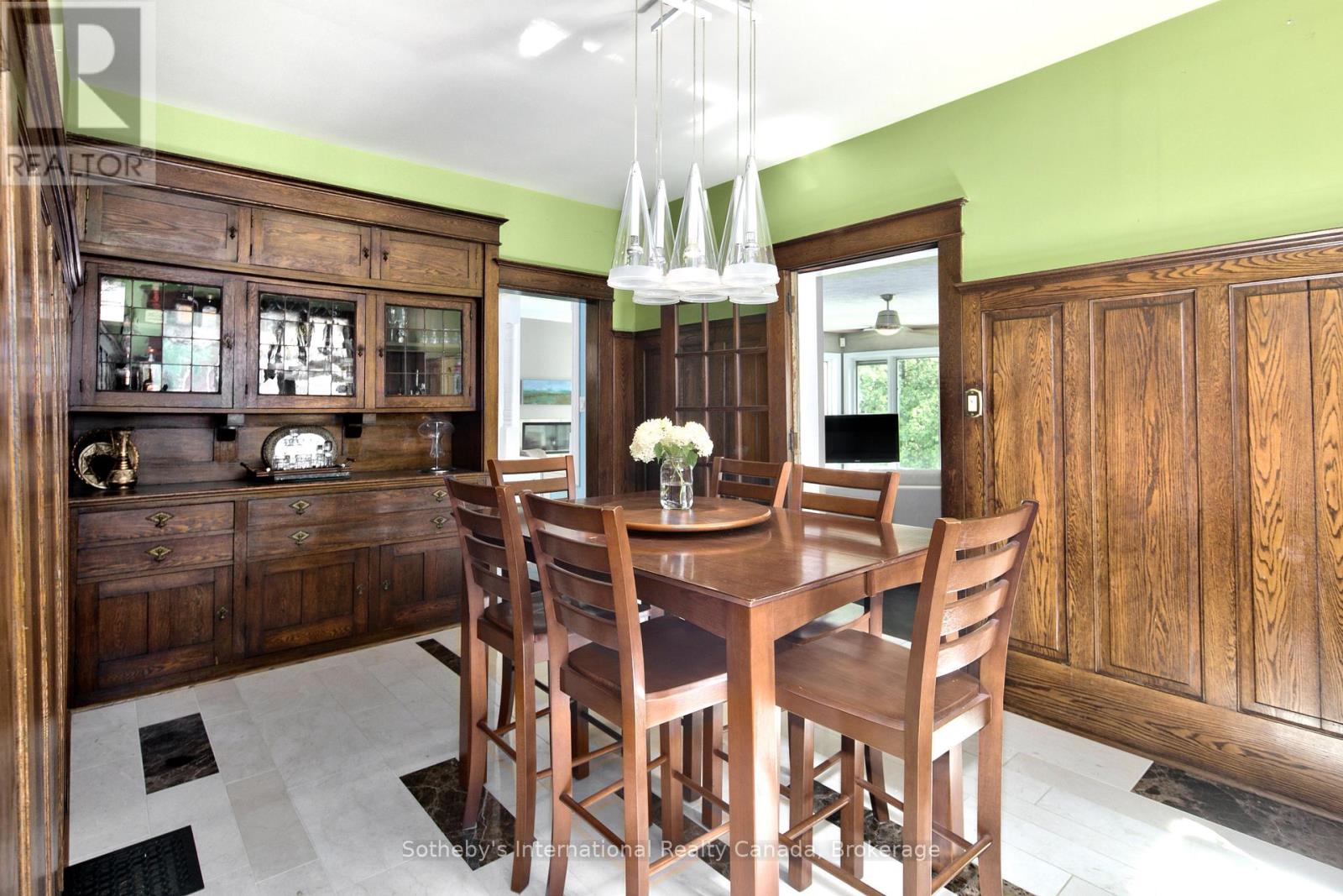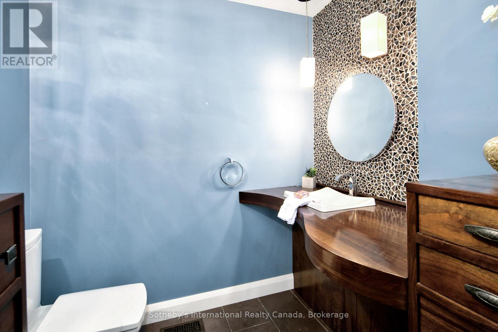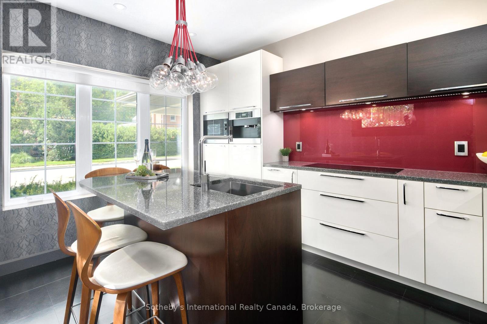Nestled along the picturesque Sydenham River in the prestigious Millionaire Drive Waterfront neighborhood, this stunning 4 bedroom, 3-bathroom estate seamlessly combines timeless elegance with modern sophistication. The expansive living room serves as the centerpiece, featuring oversized windows that frame breathtaking river views and flood the space with natural light. Step out onto the balcony an ideal spot for relaxing or entertaining while soaking in the serene river scenery. The main floor boasts custom marble floors with in-floor heating in the dining area and hallways. The elegant dining room, accented by original hardwood built-in cabinets and a designer FLOS light fixture, sets the perfect mood for hosting memorable gatherings. Culinary enthusiasts will appreciate the gourmet kitchen, outfitted with top-of-the-line Miele appliances, including an induction cooktop, built-in coffee machine, and garburator, all illuminated by a luxurious designer light fixture. Upstairs, indulge in the spa-inspired bathroom featuring Italian faucets, in-floor heating, a large glass-enclosed shower with teak floors, and a deep soaker tub for ultimate relaxation. The master suite offers dual custom walk-in closets and elegant cabinetry, creating a tranquil retreat. The spacious basement walkout opens to the backyard, providing stunning river views and versatile space for family living, an in-law suite, or private sanctuary. Outside, nicely landscaped grounds lead directly to the river via a set of stairs perfect for outdoor pursuits and peaceful enjoyment. Additional highlights include ample parking for four vehicles, a Tesla charger, and recent upgrades such as a 2024 roof and new eavestrough 2025, blending historic charm with contemporary comfort. Located in one of Owen Sounds most sought-after neighborhoods, just moments from local amenities, this exceptional riverfront estate presents a rare opportunity to experience luxury living at its finest. (id:54164)