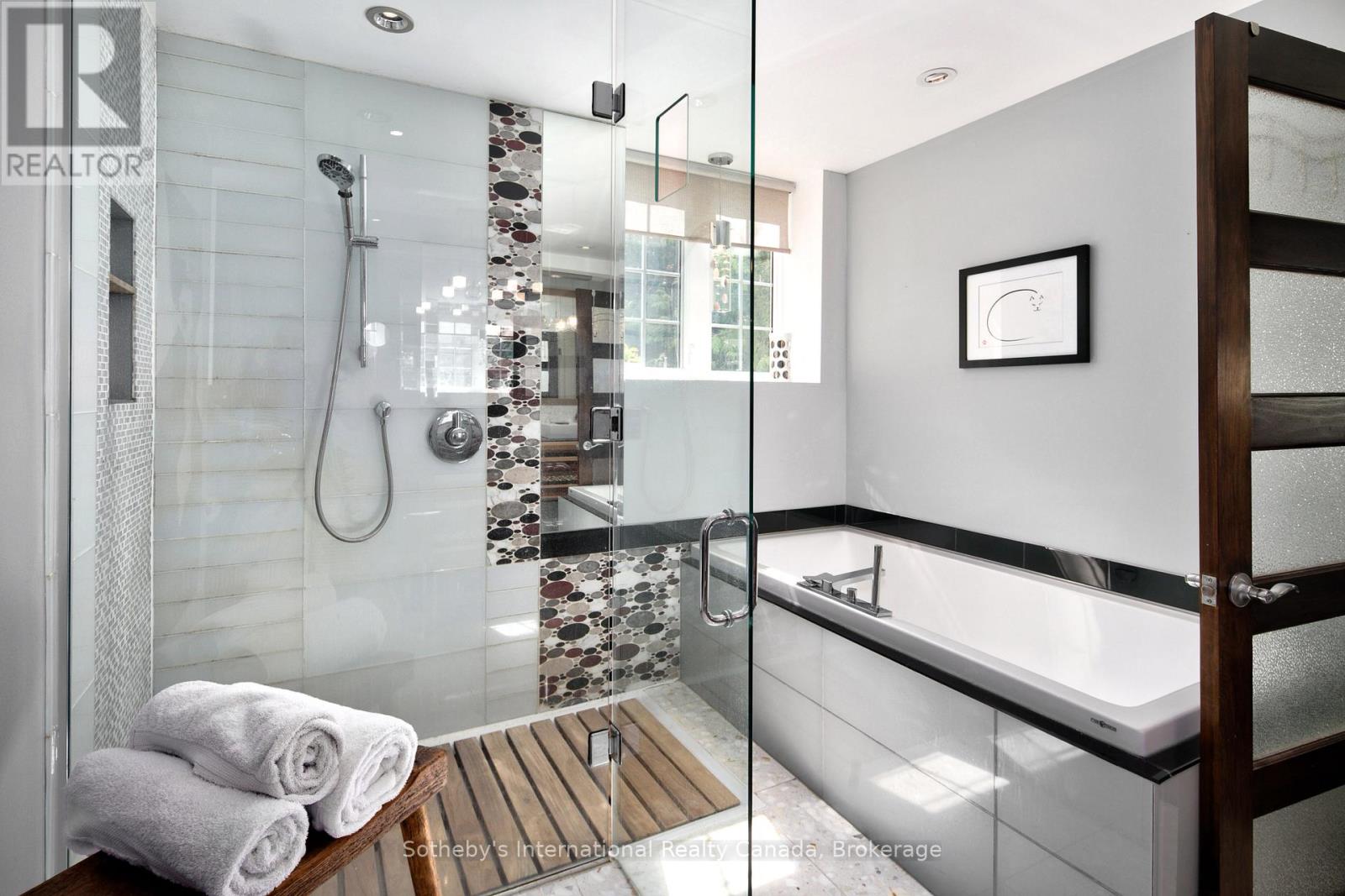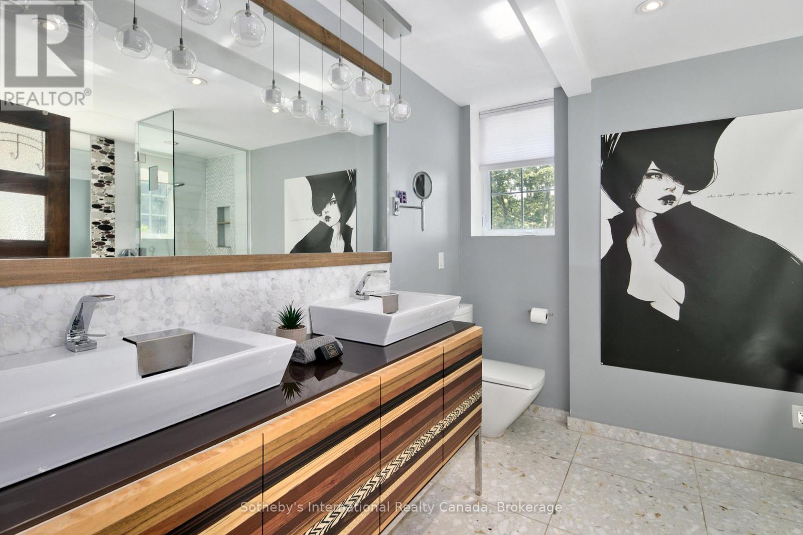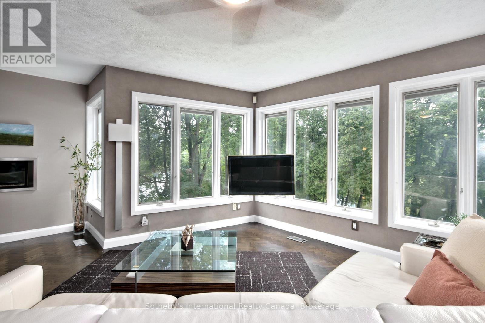 Nestled along the picturesque Sydenham River in the prestigious Millionaire Drive Waterfront neighborhood, this stunning 4 bedroom, 3-bathroom estate seamlessly combines timeless elegance with modern sophistication. The expansive living room serves as the centerpiece, featuring oversized windows that frame breathtaking river views and flood the space with natural light. Step out onto the balcony an ideal spot for relaxing or entertaining while soaking in the serene river scenery. The main floor boasts custom marble floors with in-floor heating in the dining area and hallways. The elegant dining room, accented by original hardwood built-in cabinets and a designer FLOS light fixture, sets the perfect mood for hosting memorable gatherings. Culinary enthusiasts will appreciate the gourmet kitchen, outfitted with top-of-the-line Miele appliances, including an induction cooktop, built-in coffee machine, and garburator, all illuminated by a luxurious designer light fixture. Upstairs, indulge in the spa-inspired bathroom featuring Italian faucets, in-floor heating, a large glass-enclosed shower with teak floors, and a deep soaker tub for ultimate relaxation. The master suite offers dual custom walk-in closets and elegant cabinetry, creating a tranquil retreat. The spacious basement walkout opens to the backyard, providing stunning river views and versatile space for family living, an in-law suite, or private sanctuary. Outside, nicely landscaped grounds lead directly to the river via a set of stairs perfect for outdoor pursuits and peaceful enjoyment. Additional highlights include ample parking for four vehicles, a Tesla charger, and recent upgrades such as a 2024 roof and new eavestrough 2025, blending historic charm with contemporary comfort. Located in one of Owen Sounds most sought-after neighborhoods, just moments from local amenities, this exceptional riverfront estate presents a rare opportunity to experience luxury living at its finest. (id:54164)