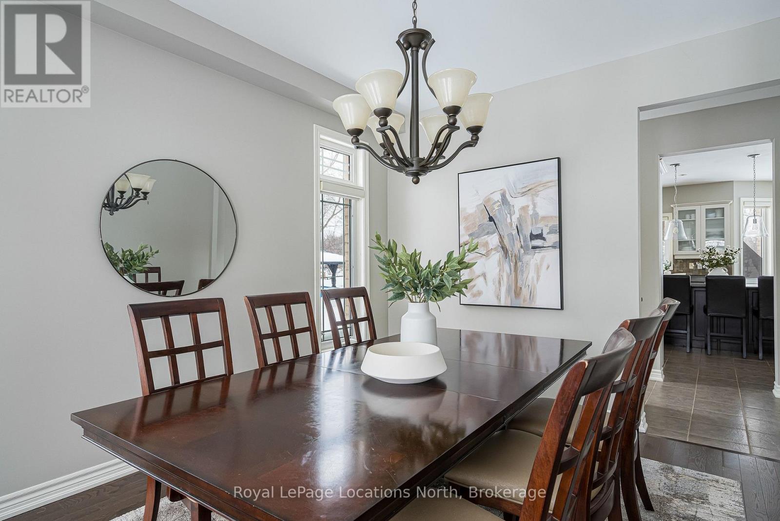 Welcome to one of Mair Mills’ most exceptional offerings, where refined executive class living meets an excellent setting. Ideally located between the Blue Mountains and downtown Collingwood, this executive all-brick home sits on a rare, south-facing 1/2 acre lot backing directly onto the Blue Mountain Golf & Country Club. This property delivers sun-filled views, privacy, and a sense of calm that is increasingly hard to find. Tucked away on a quiet no-thru street in a neighbourhood celebrated for its safety, green spaces, playgrounds, and tennis courts, this is a location families actively seek out and seldom leave. Offering over 4,000 sq ft of finished living space, this 5-bedroom, 5-bathroom residence showcases quality craftsmanship and timeless finishes throughout. The main living area is anchored by a stunning great room and chef’s kitchen featuring custom built-ins, solid wood cabinetry, stainless steel appliances, a 10-foot quartz island, butler’s pantry, and formal dining room-perfectly designed for both entertaining and everyday luxury. Unwind by the fireplace while enjoying sweeping south-facing golf course views. The primary suite is a true retreat with a spa-inspired ensuite including a soaker tub, separate shower, luxury finishes, and an oversized walk-in closet. The fully finished lower level adds versatility with a dedicated theatre room, spacious recreation area with electric fireplace, and a private bedroom with ensuite, ideal for guests or extended family. One of the largest and most private lots in Mair Mills, the backyard offers endless potential for a custom outdoor oasis. Minutes to skiing, golf, Georgian Bay, trails, and Collingwood’s shops and dining, this home delivers an unmatched four-season lifestyle in a setting that rarely becomes available. (id:54164)