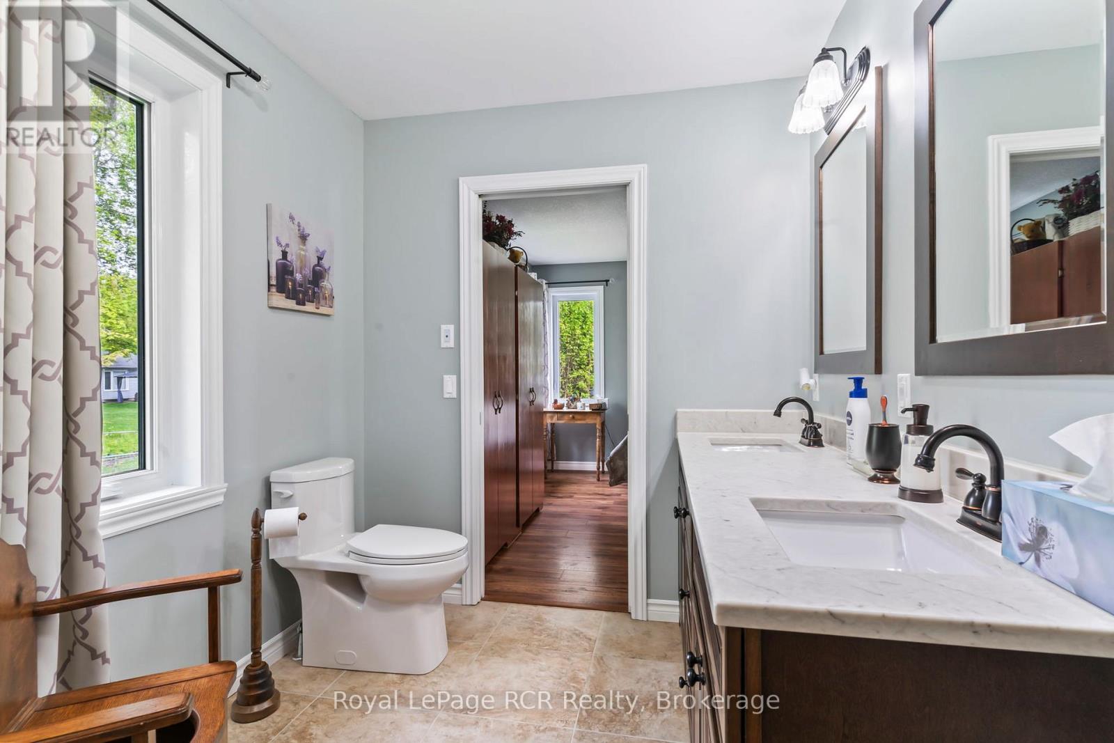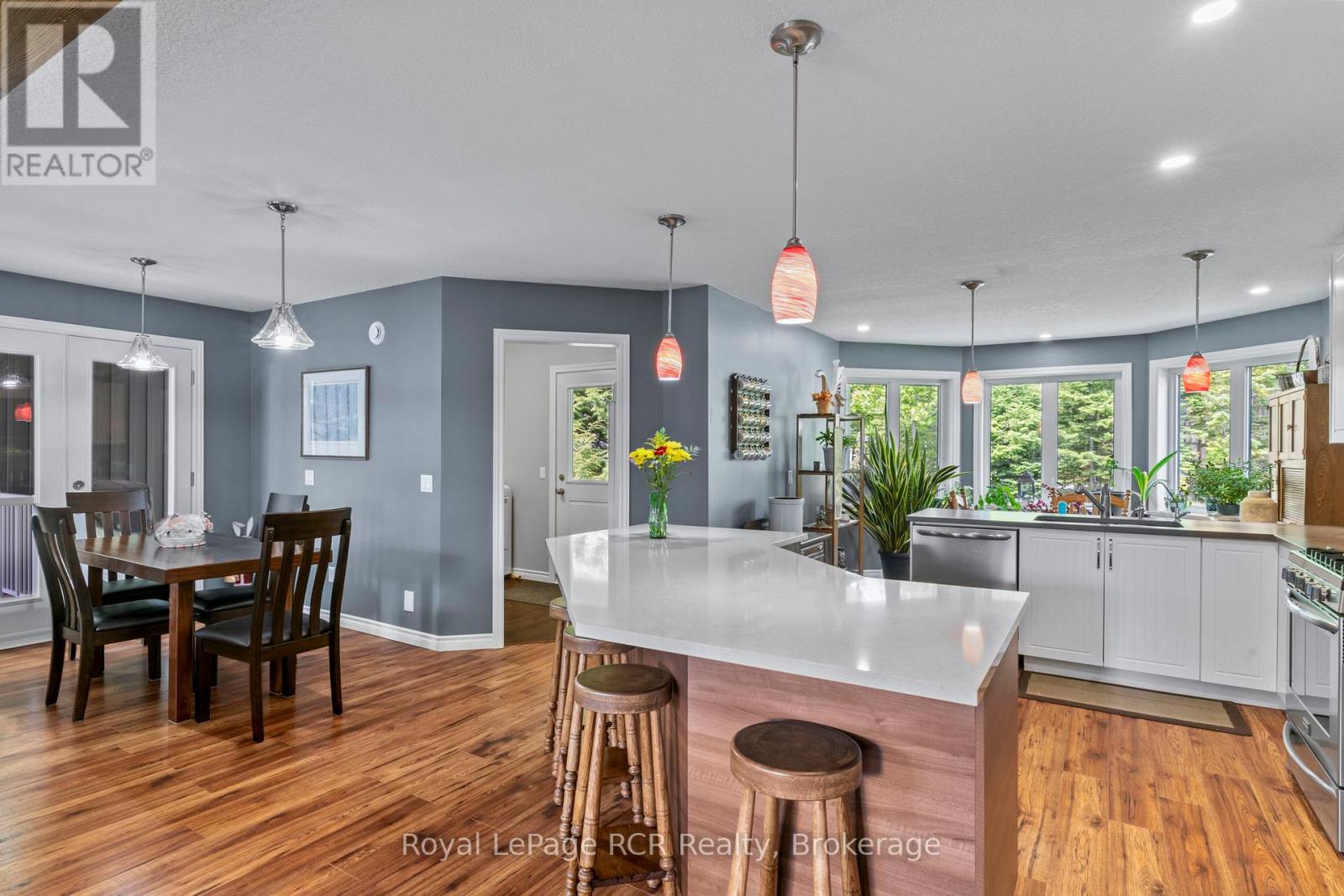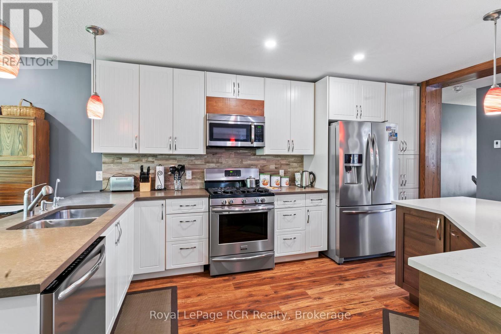 Welcome to this charming 3 bedroom bungalow located in the peaceful village setting of Point Clark. Situated on a dead-end cul-de-sac, this beautiful 8 year old home offers a serene and private setting, perfect for those seeking tranquility. Upon entering the home, imagine relaxing on the 130′ of covered deck space, then you will be greeted by an open concept layout, creating a spacious & inviting atmosphere. The open kitchen, dining room, dinette and living room offer an entertainers delight. With an abundance of cabinetry, large working island with quartz and concrete countertops making it a chefs delight. Impressive ensuite bathroom with double sinks and large walk in shower, conveniently located off the primary bedroom with a large walk-in closet with custom made barn door. Added in 2025 was a split heat/air unit which will be a perfect for the summer heat. Whether you envision a home gym, a play area for the kids, or a cozy entertainment space, the full unspoiled basement provides ample room to bring creative ideas to life. For car or woodworking enthusiasts you will be pleased to know that this property includes a detached double car garage with an attached workshop. The home features in-floor heat throughout the main floor, basement and workshop. This additional space allows you to indulge in your hobbies or provides ample storage for your vehicles and equipment. The exterior of the house boasts immaculate landscaping, creating a visually appealing and well maintained curb appeal. The yard is thoughtfully designed, making it a perfect space for outdoor activities, gardening (which if fully fenced to avoid wild life) or simply to enjoy the fresh air. Another major bonus is the location to the beach/lighthouse and marina. Imagine taking leisurely strolls along the shoreline, enjoying the sunsets, and embracing the natural beauty mother nature surrounds you in. (id:54164)
