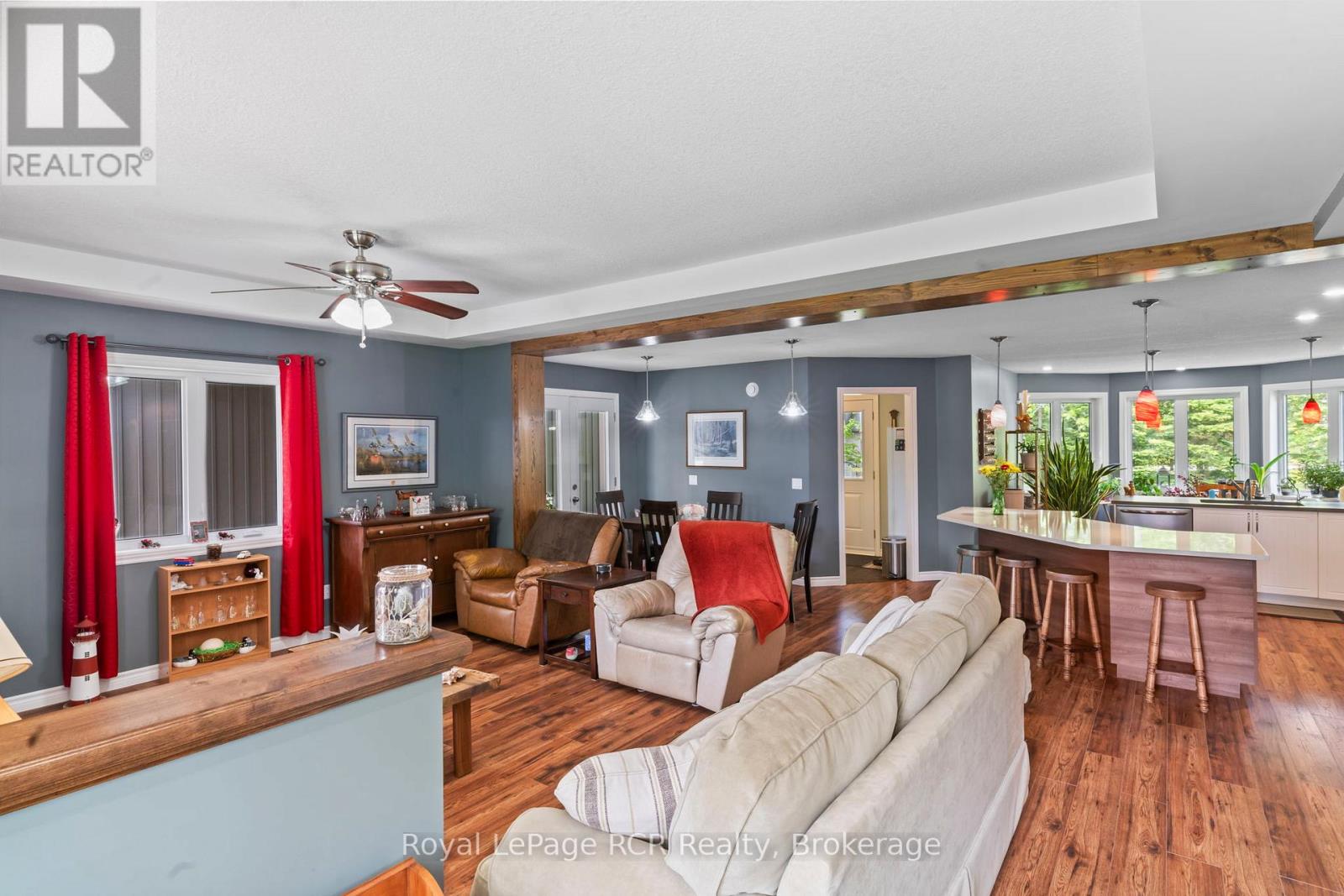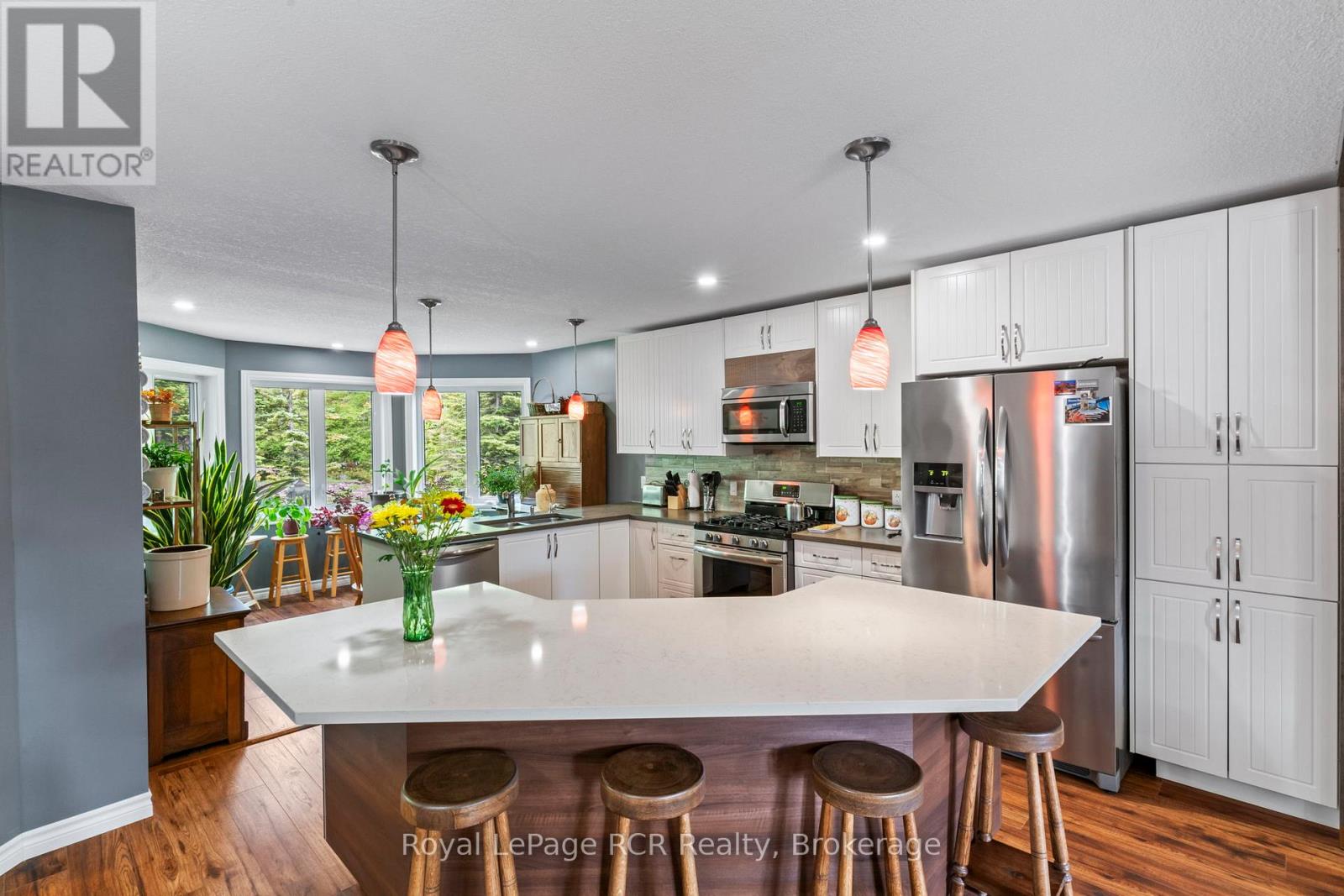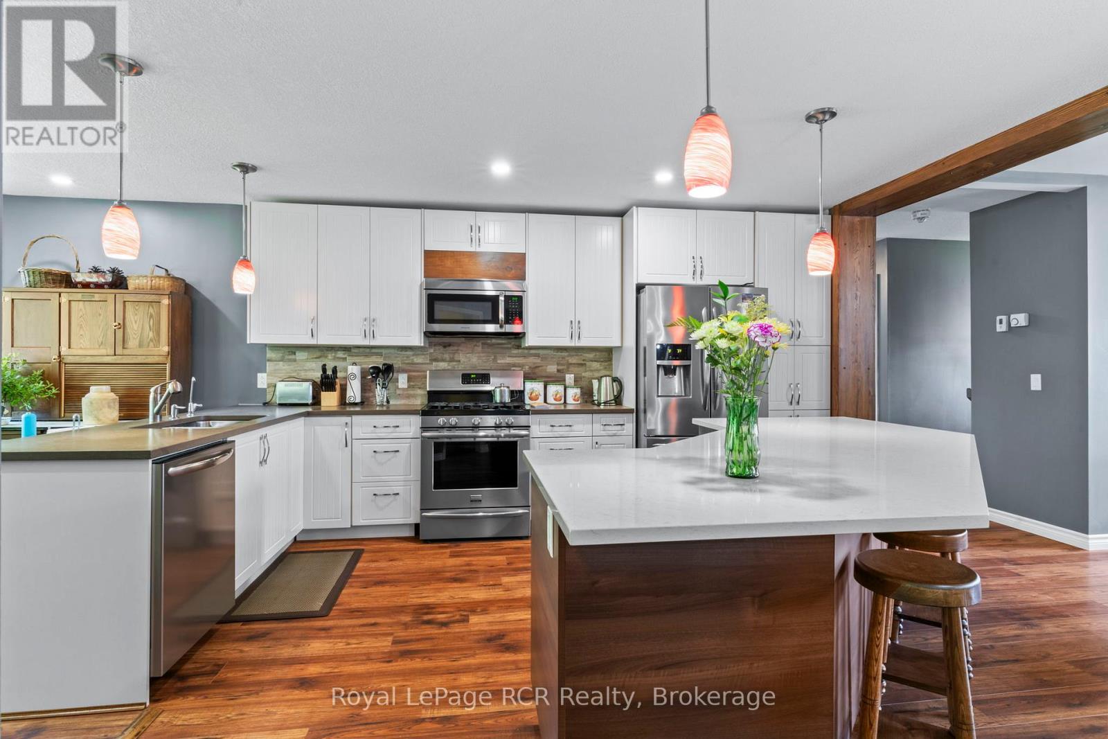 Welcome to this charming 3 bedroom bungalow located in the peaceful village setting of Point Clark. Situated on a dead-end cul-de-sac, this beautiful 8 year old home offers a serene and private setting, perfect for those seeking tranquility. Upon entering the home, imagine relaxing on the 130′ of covered deck space, then you will be greeted by an open concept layout, creating a spacious & inviting atmosphere. The open kitchen, dining room, dinette and living room offer an entertainers delight. With an abundance of cabinetry, large working island with quartz and concrete countertops making it a chefs delight. Impressive ensuite bathroom with double sinks and large walk in shower, conveniently located off the primary bedroom with a large walk-in closet with custom made barn door. Added in 2025 was a split heat/air unit which will be a perfect for the summer heat. Whether you envision a home gym, a play area for the kids, or a cozy entertainment space, the full unspoiled basement provides ample room to bring creative ideas to life. For car or woodworking enthusiasts you will be pleased to know that this property includes a detached double car garage with an attached workshop. The home features in-floor heat throughout the main floor, basement and workshop. This additional space allows you to indulge in your hobbies or provides ample storage for your vehicles and equipment. The exterior of the house boasts immaculate landscaping, creating a visually appealing and well maintained curb appeal. The yard is thoughtfully designed, making it a perfect space for outdoor activities, gardening (which if fully fenced to avoid wild life) or simply to enjoy the fresh air. Another major bonus is the location to the beach/lighthouse and marina. Imagine taking leisurely strolls along the shoreline, enjoying the sunsets, and embracing the natural beauty mother nature surrounds you in. (id:54164)