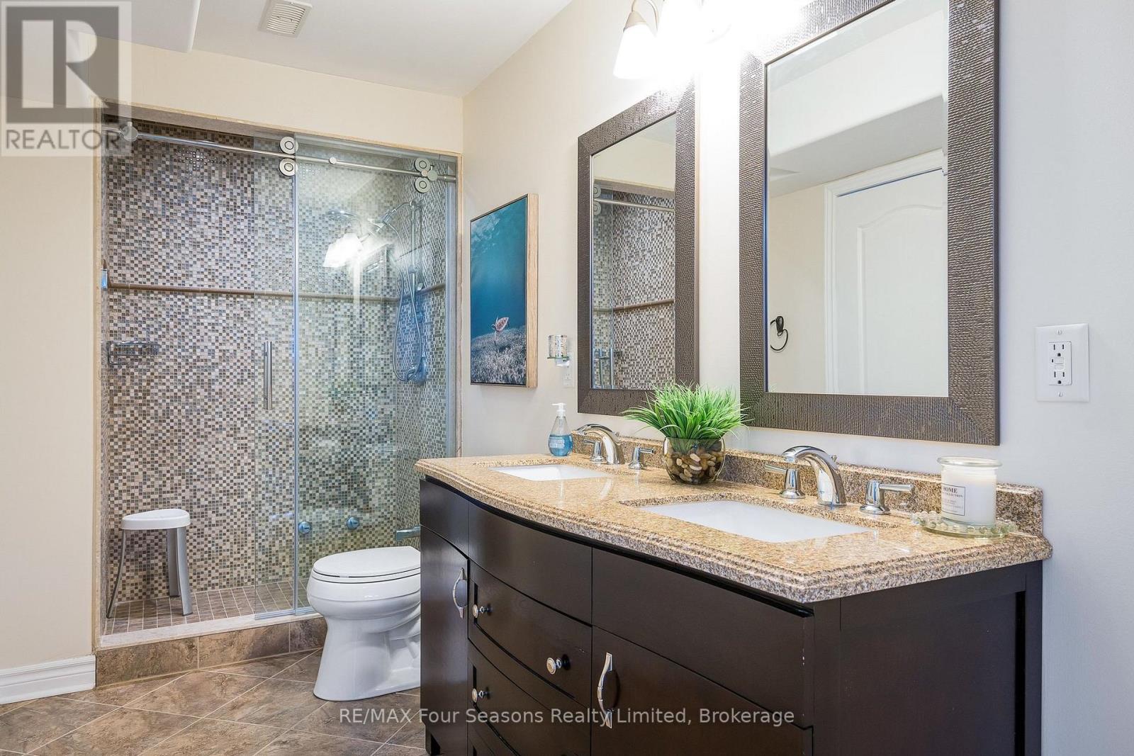 Exceptional waterfront living on the shores of Georgian Bay with a view to the water~ right on the border of Collingwood (.5 km). Thoughtful design and EXTENSIVE upgrades invite all potential buyers~ full time residence, vacation home or family living. This meticulously maintained home offers over 2974 sq. ft. of refined finished living space, ideal for everyday comfort and entertaining. The main level features a spacious primary bedroom with a 5-piece ensuite, jet tub and glass shower, plus a second bedroom/ den with ensuite privileges to a 4-piece bath. Soaring cathedral ceilings enhance the great room and foyer, while the open-concept kitchen, dining, and living areas showcase a large island, granite countertops, stainless steel appliances, gas fireplace, and expansive windows that flood the home with natural light. Walk out from the family room and primary suite to a new composite deck (14.8 X 19.7) with glass railings (2024), overlooking a fully fenced yard. Additional highlights~ main-floor laundry, a whole-home generator, high tech camera security system, double-car garage with inside entry and mezzanine for all of your storage needs. The second level offers an additional primary suite with a 4-piece bath, walk-in closet, and a versatile loft/flex space overlooking the living area. The fully finished lower level includes a spacious family room/ cozy gas fireplace, two large bedrooms, and a 4-piece bath with steam shower. Residents enjoy access to a private clubhouse featuring a recreation center with social activities, fitness area, inground saltwater pool and a large covered waterfront deck capturing stunning Georgian Bay views. Worry free community living~ snow removal and lawn services included for your convenience. Embrace the Four Season Lifestyle~ Amenities Just Minutes Away~ *Blue Mountain Village *Historic Downtown Collingwood~ Dining, Shopping, Cultural Events *Championship Golf Courses *Wasaga Beach~ Longest Freshwater Beach. View Virtual Tour (id:54164)