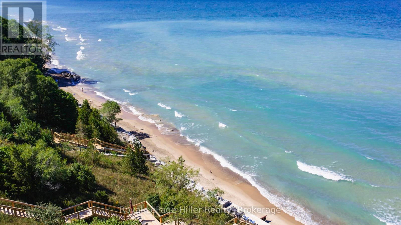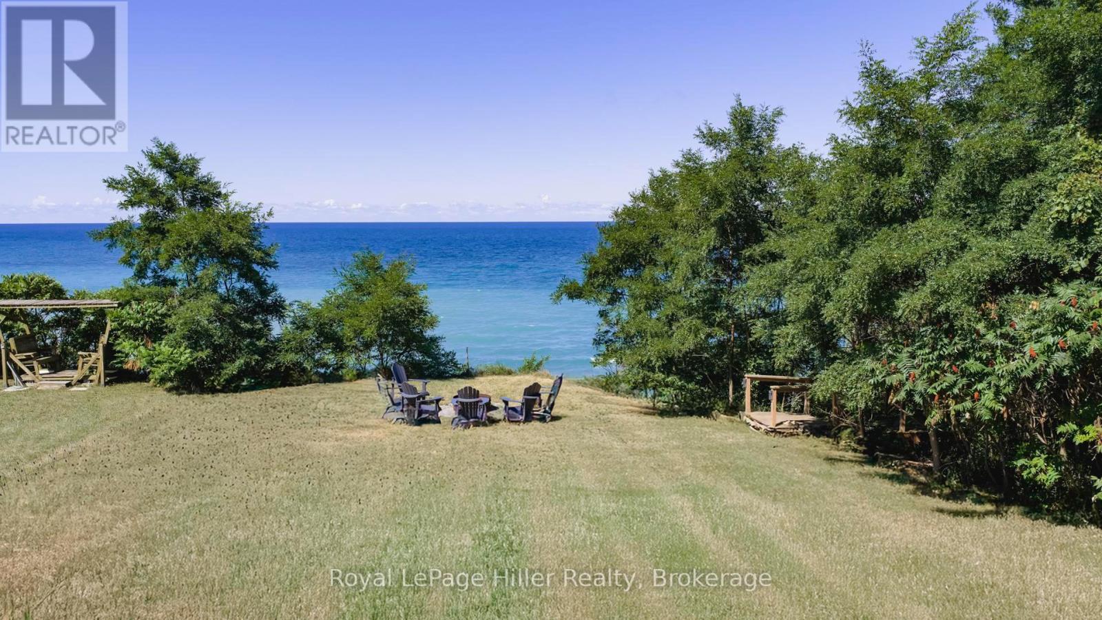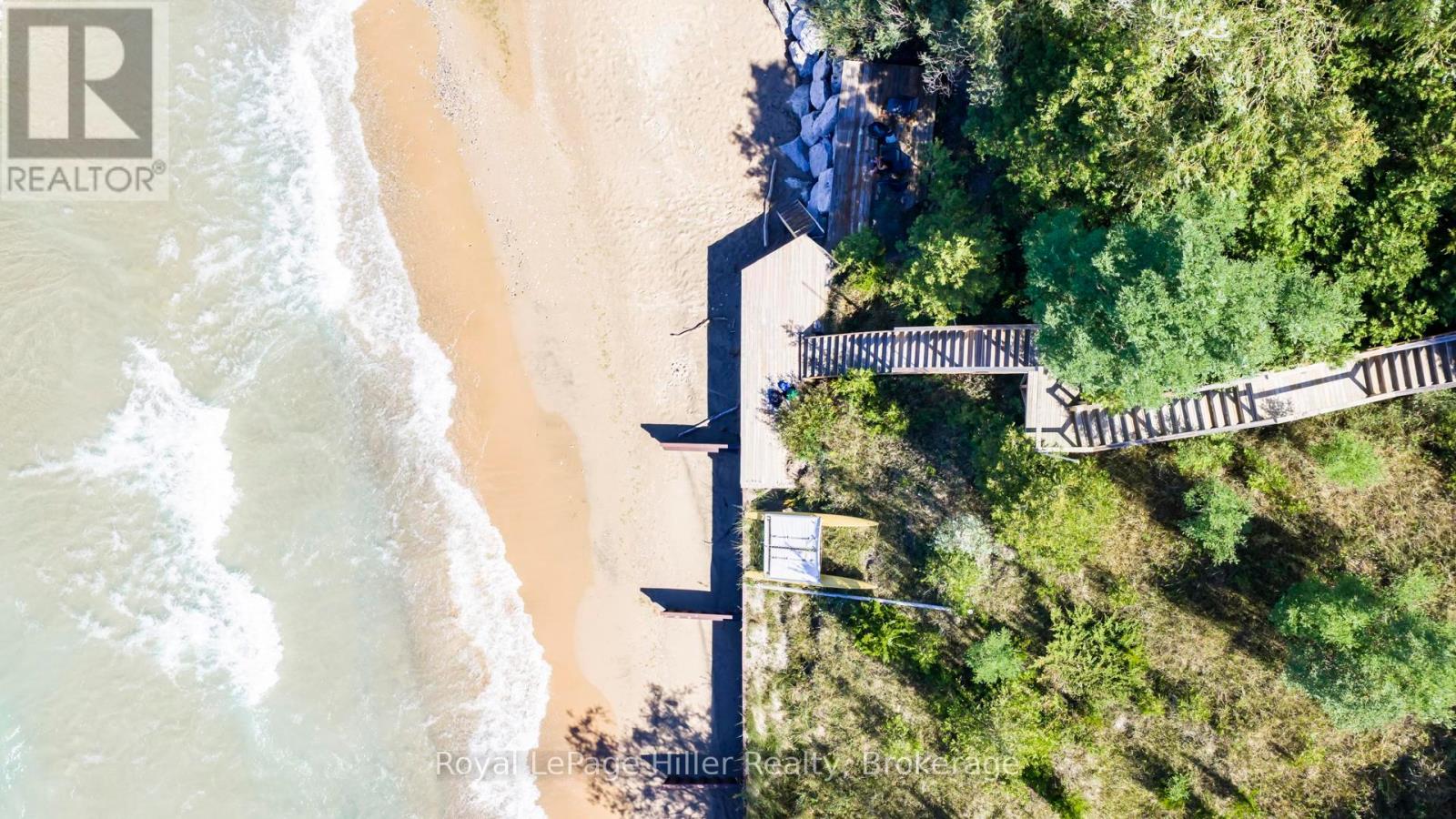 Exceptional Lake Huron waterfront bungalow set on a full acre of land with approximately 100 feet of sandy beach frontage and uninterrupted sunset exposure. Built in 2019, this is a true beachfront property where land, frontage, privacy, and setting define the value. The property is positioned on a prime stretch of shoreline and benefits from a ravine that serves as a permanent natural buffer, protecting the adjoining woodland and preserving long-term privacy and green space. This ravine effectively shields the property from future encroachment, creating a secluded, estate-like waterfront setting rarely found along Lake Huron. Designed to maximize lake views, natural light, and indoor-outdoor living, the home features an open-concept main floor with strong sightlines and seamless walkouts to the rear yard. Expansive windows keep the lake as the focal point throughout the living areas. An extensive private deck is integrated into a solid stair structure leading to the beach, creating a direct and secure connection between the home, yard, and shoreline. The wide, level grassy yard transitions naturally to the beach, which feels notably private due to the surrounding land configuration and limited sightlines along this stretch of shoreline. Ideal for full-time living, retirement, or expanded family use. A rare opportunity to secure authentic Lake Huron frontage with scale, privacy, and protected natural surroundings in a tightly held waterfront corridor. Conveniently located minutes to Grand Bend, 15 minutes to Bayfield, less than one hour to London, and within two hours of Toronto. (id:54164)