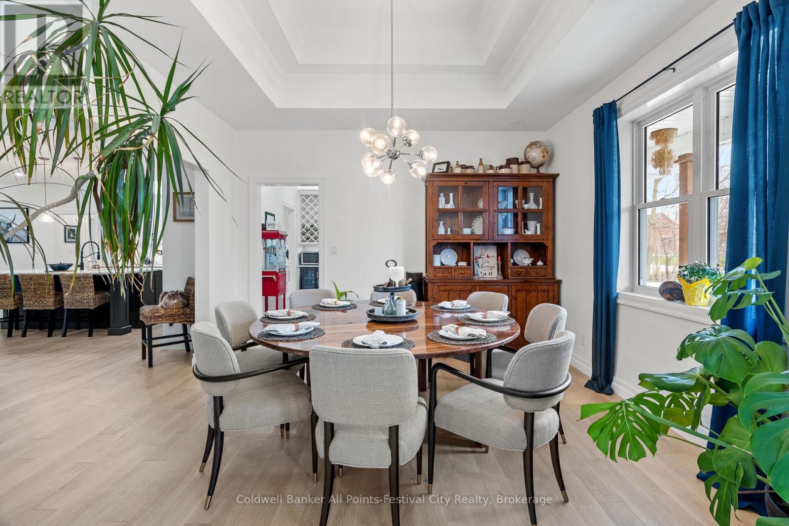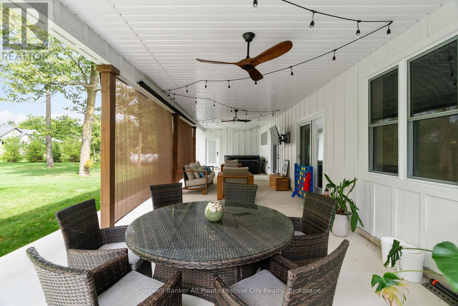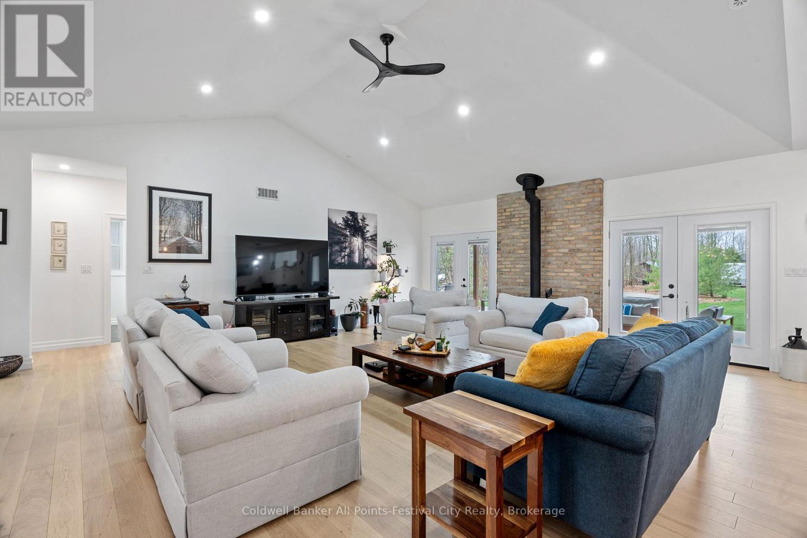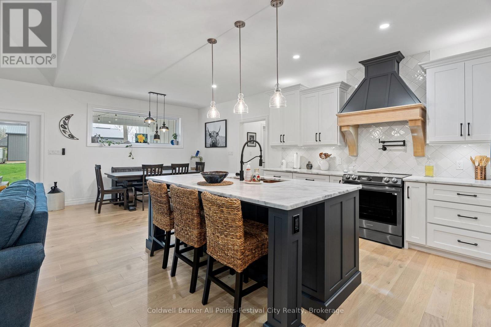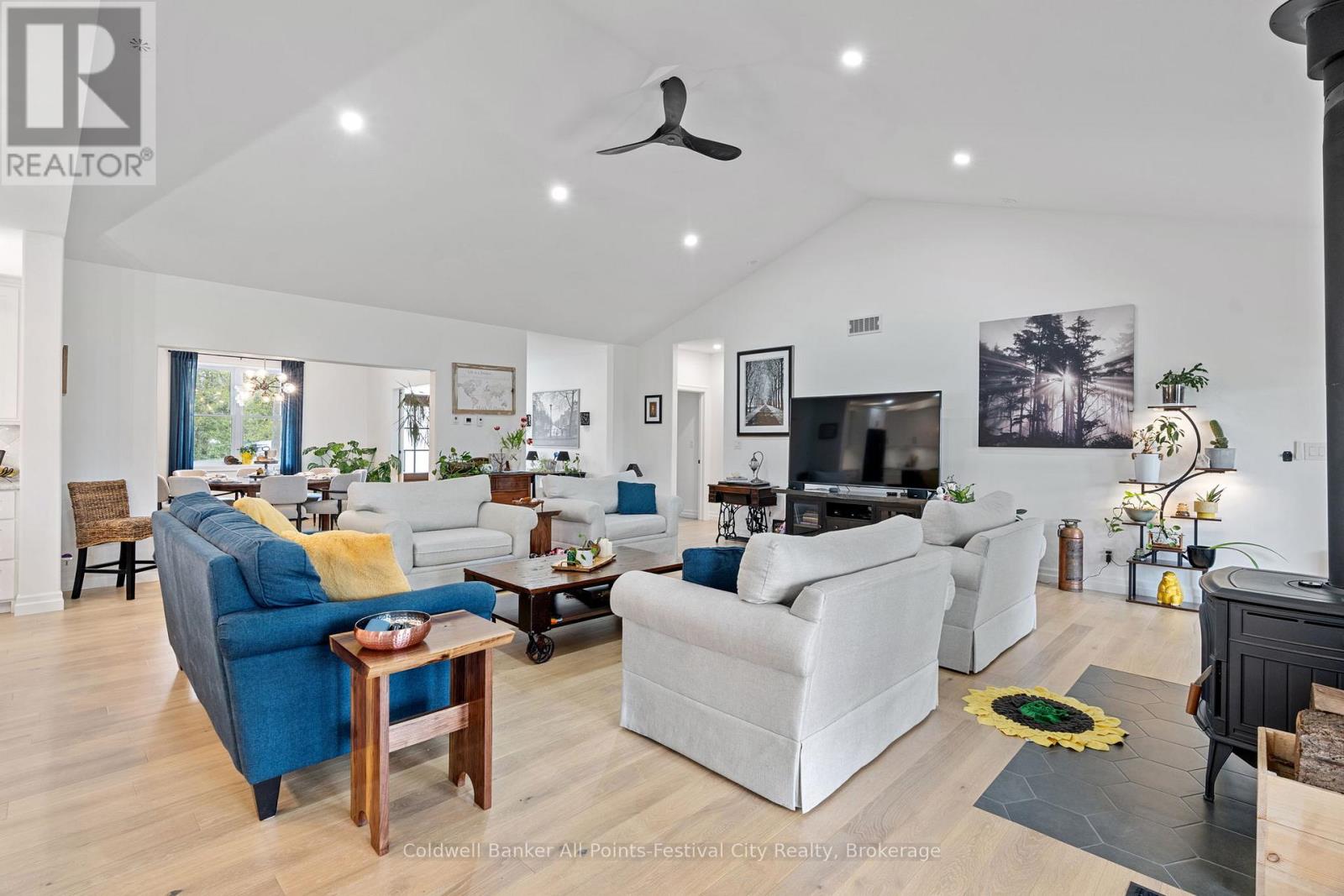 Welcome to this stunning custom-built home, featuring over 3,000 sqft of luxurious living space, perfectly situated in beautiful Benmiller. With its thoughtful design, luxurious amenities and versatile outdoor space, this property is sure to impress. The heart of the home features an open-concept design, seamlessly connecting the living room, dining room & gourmet kitchen with adjacent butlers kitchen. Two spacious bedrooms with main bath are situated at one end of the main floor. Retreat to the expansive primary suite, featuring a stunning double walk-in shower and soaker tub in the ensuite. This spa-like oasis is perfect for relaxation and rejuvenation. Enjoy a hot tub on the covered patio with direct access from your bedroom. Main floor laundry, walk-in pantry and mudroom area with garage access, finish out this level. Cozy in-floor heating throughout. Above the garage you’ll find additional living space for a 4th bedroom or den, complete with 2pc bath. Snuggle up by the wood stove and take in the panoramic views from the expansive patio doors overlooking the covered patio and backyard. The 2000 sqft detached shop offers endless possibilities for hobbies, storage or workshop – featuring large overhead doors and incredible space. The home’s striking board and batten exterior enhances its curb appeal with a rustic charm, complete with wrap-around covered porch. Located just a short drive to Goderich, for all your amenities. Enjoy the scenic banks of the Maitland River and Falls Reserve Conservation area just minutes from your front door. (id:54164)