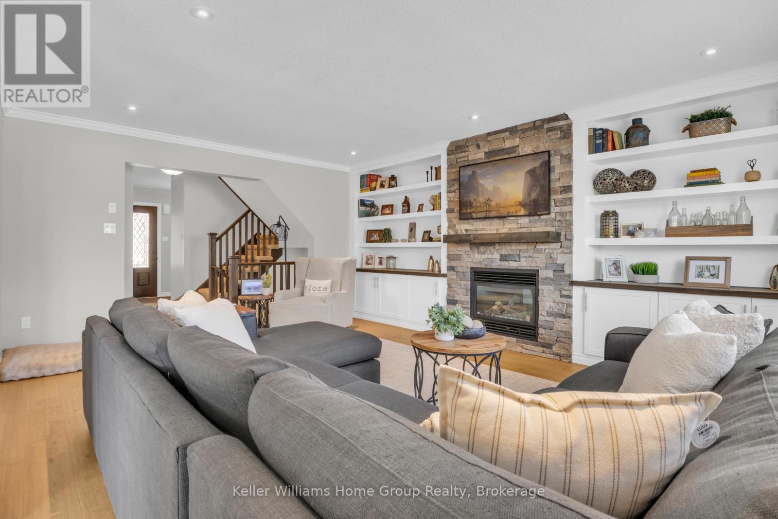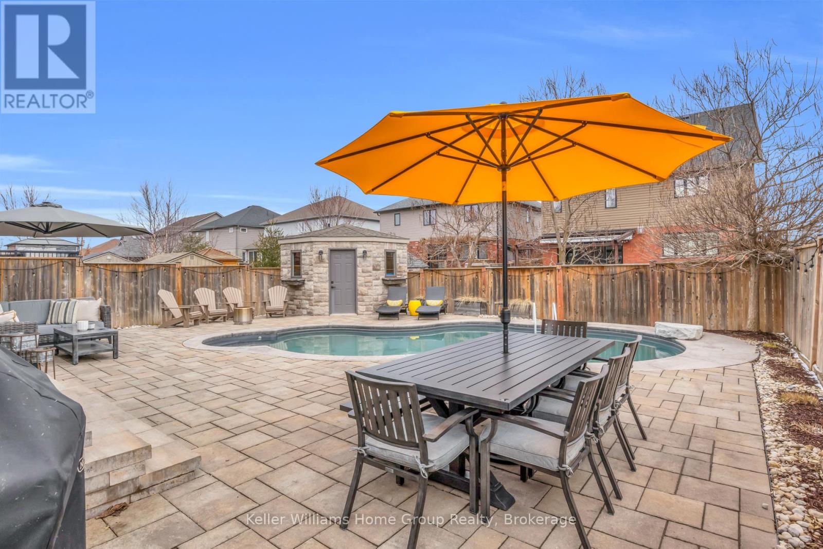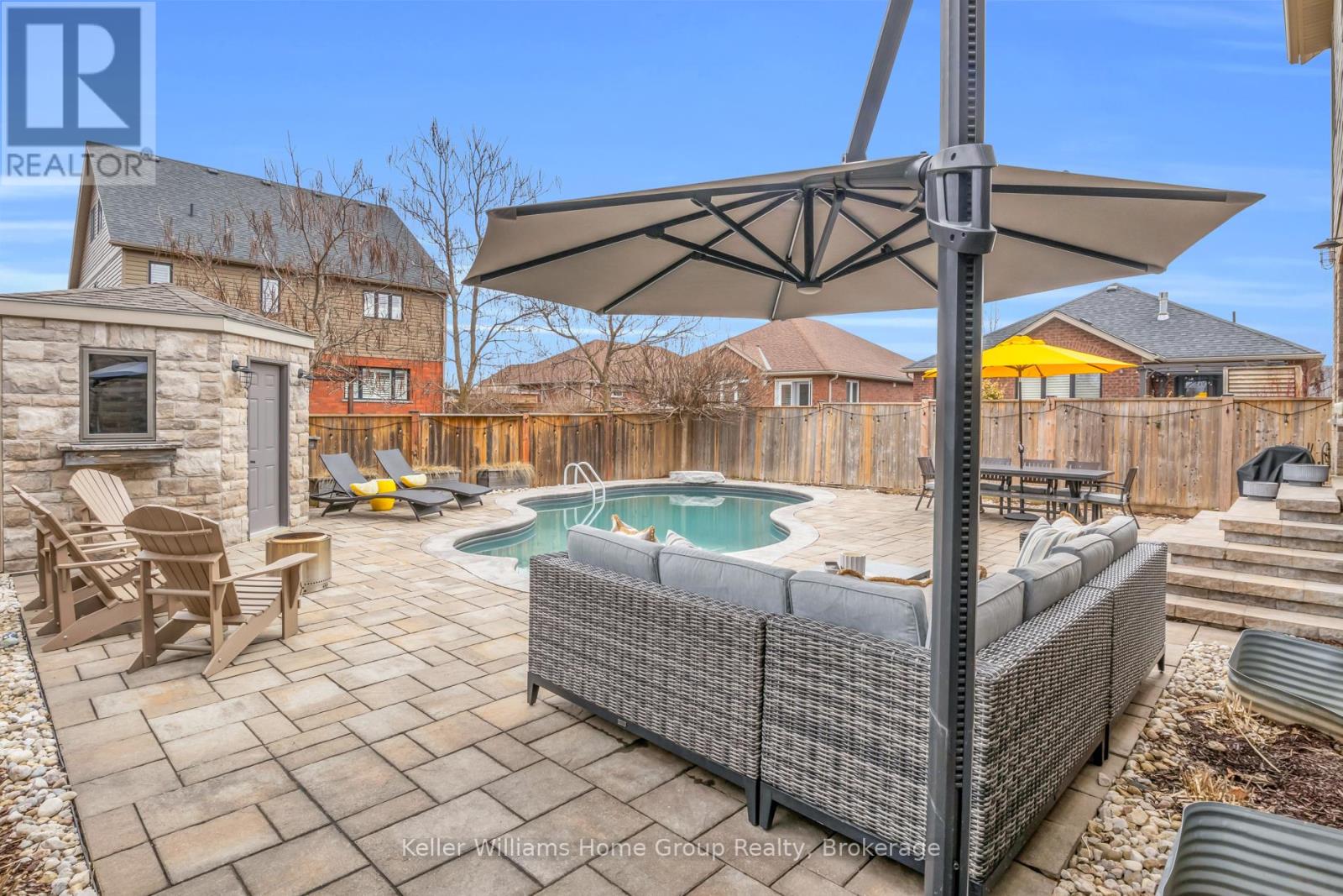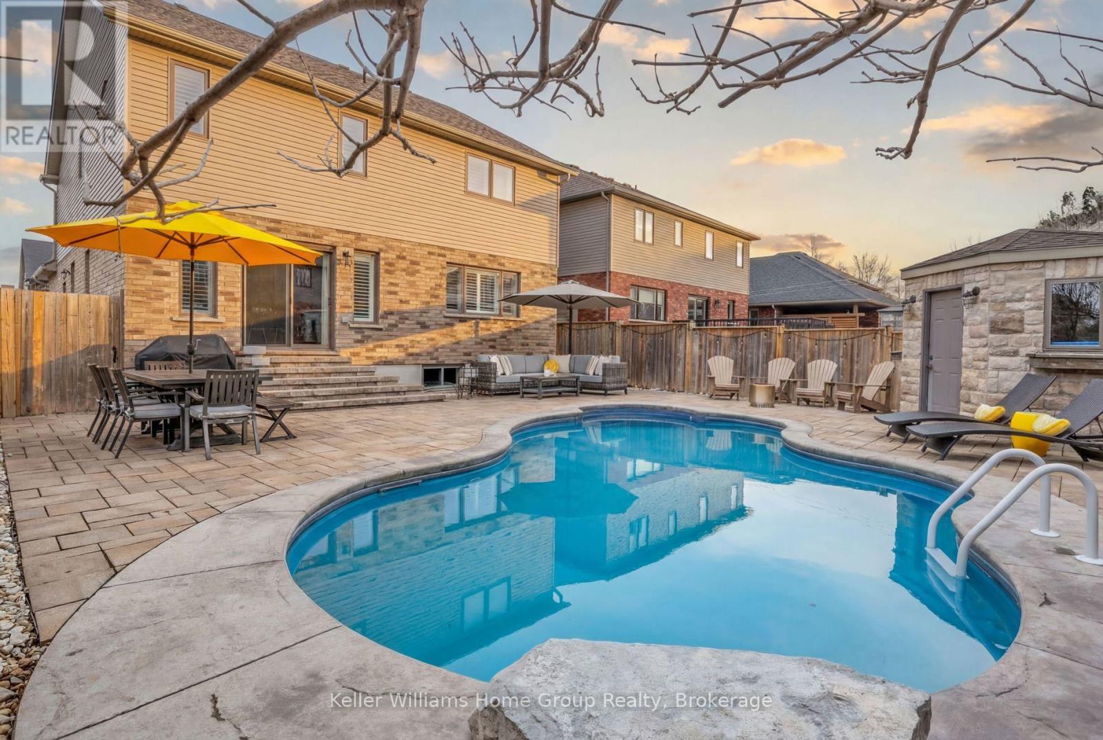Tucked into one of Elora’s most desirable south end neighbourhoods, just steps from the trail and minutes from the charm of downtown. Welcome to 87 McGowan Street, Built in 2014 by award-winning Wright Haven Homes, this impressive 4-bedroom, 4-bathroom home offers over 3300 sq ft of finished living space. With its prime location and exceptional features, this property is sure to capture your attention. The spacious eat-in kitchen is designed for both everyday living and entertaining, featuring stainless steel appliances, a large island, and upgraded cabinetry, all seamlessly open to the family room. The living room showcases a cozy gas fireplace, custom built-in cabinetry, and oversized windows overlooking the private, resort-style backyard with a saltwater pool. Professionally landscaped, the backyard includes a stone patio, elegant poolside coping, and a versatile shed with a stone exterior that houses pool equipment, a change area, and even a fridge, perfect for summer entertaining. The main floor is completed by a powder room, a large mudroom with laundry, and stunning backyard views throughout. Upstairs, the primary suite offers a true retreat with a walk-through closet leading to a bright ensuite featuring a soaker tub and separate shower. Three additional generously sized bedrooms, a 3-piece bathroom, and a bonus TV/lounge area complete the second level. Recent updates include a new pool heater (2 years old), new hardwood flooring in the main floor living room, and a fully finished basement (2025) with a new bathroom. The home is also equipped with all new California shutters throughout. Don’t miss out on the opportunity to make this house your home. With its modern design, upgraded features, and family-friendly layout 87 McGowan Street is the perfect place to create lasting memories. Schedule your private showing today! (id:54164)