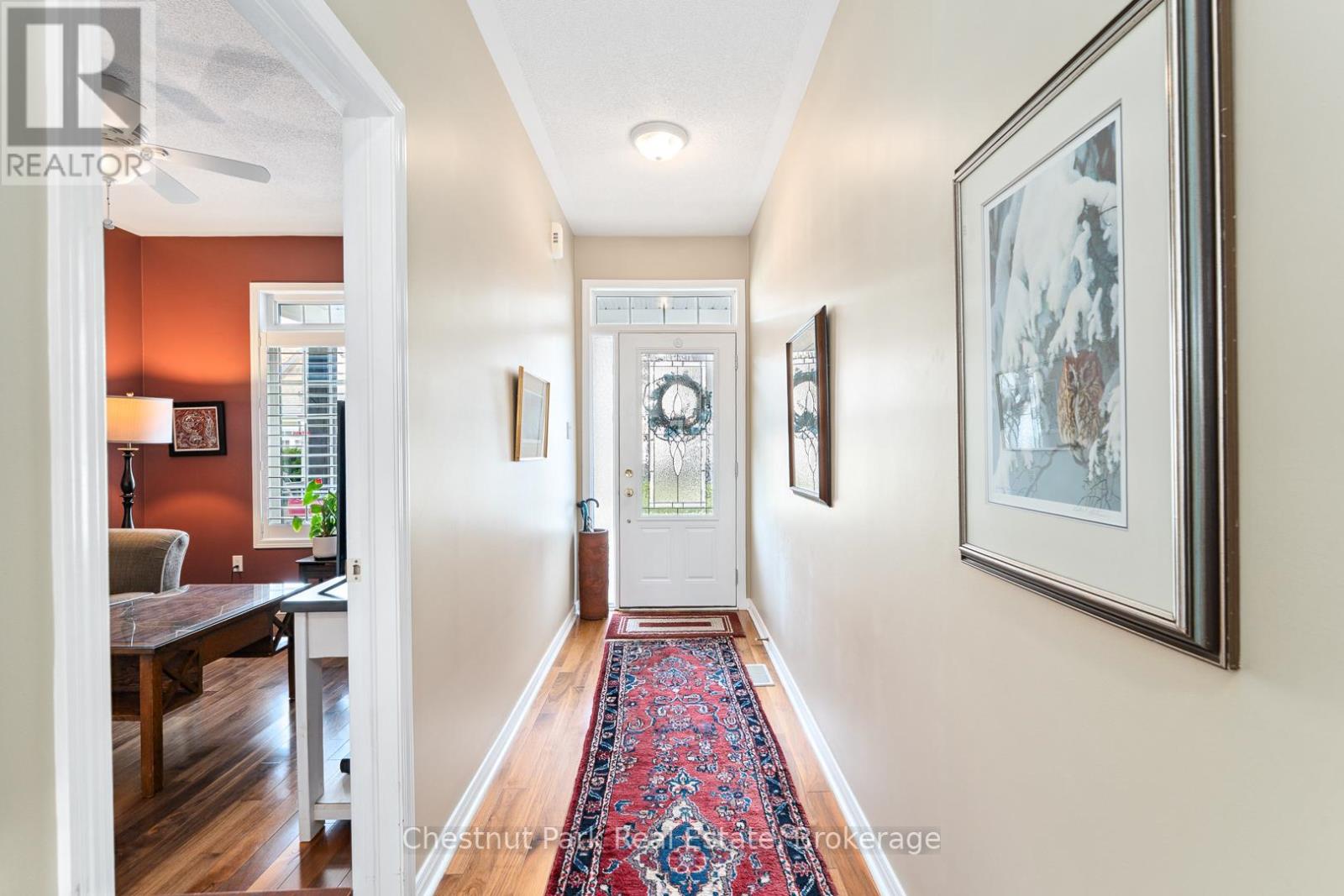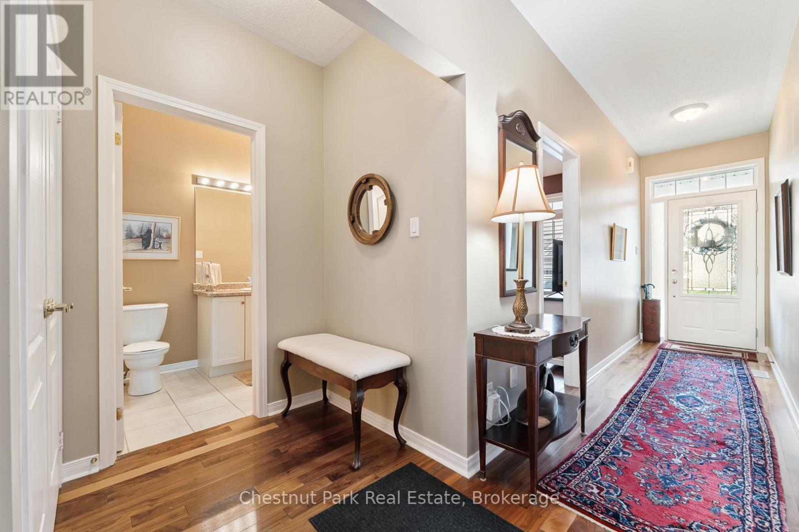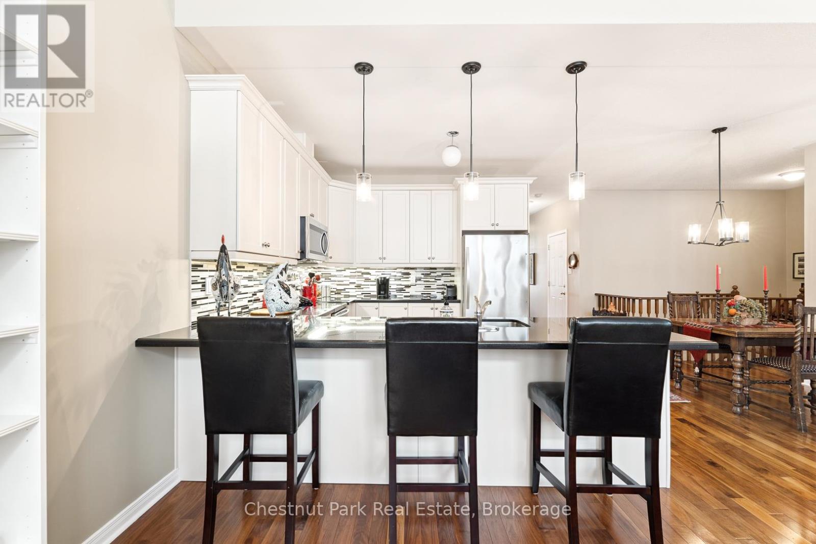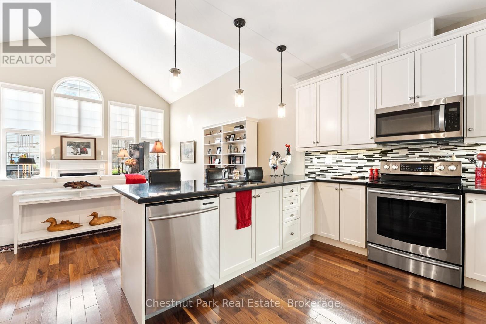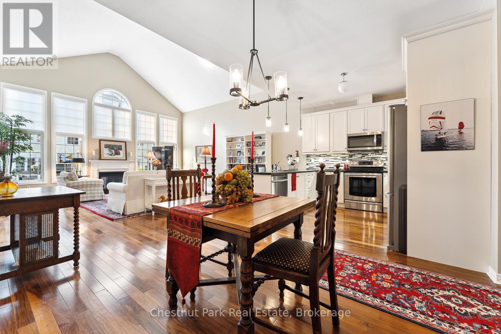 Nestled in the sought after Waterways Community in Bracebridge this beautifully upgraded two bedroom, two bathroom Townhome offers the perfect blend of comfort, style and location. Situated on a quiet cul-de-sac close to scenic Annie William’s Park this home is ideal for those seeking a peaceful lifestyle with nature at your doorstep. Step inside to discover rich walnut floors that flow throughout the open concept living, kitchen and dining area, creating a warm and inviting atmosphere. The chef inspired kitchen is both functional and elegant boasting modern appliances, extended cabinetry, granite countertops and tons of storage-perfect for entertaining or quiet evenings in. The Living Room boasts cathedral ceilings, a gas fireplace and a wall of windows which bathe the space in natural light. The spacious Primary Suite features a luxurious four piece ensuite with all the comforts you deserve. A second full bathroom, guest bedroom/den and main floor laundry complete this thoughtfully designed layout. The front porch is the perfect place to relax and connect with neighbours or step outside to your expansive back deck where you’ll enjoy privacy and stunning views of mature trees-a rare peaceful backdrop that truly sets this home apart. The large unfinished basement offers ample storage and is bursting with potential for those looking to increase living space, while the 1.5 Car Garage and driveway offer ample parking for yourself and your guests. Next door Annie William’s Park offers walking paths, beach/dock areas and a multitude of Summer events including the famous Muskoka Arts and Crafts Show. Great access to the Muskoka River where you can enjoy kayaking, swimming or simply sit and take in the beautiful views. Whether you are downsizing, retiring or simply looking for a low maintenance lifestyle in one of Bracebridge’s most picturesque communities this home delivers exceptional living in the heart of Muskoka. (id:54164)