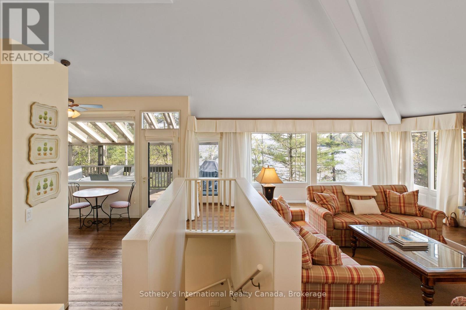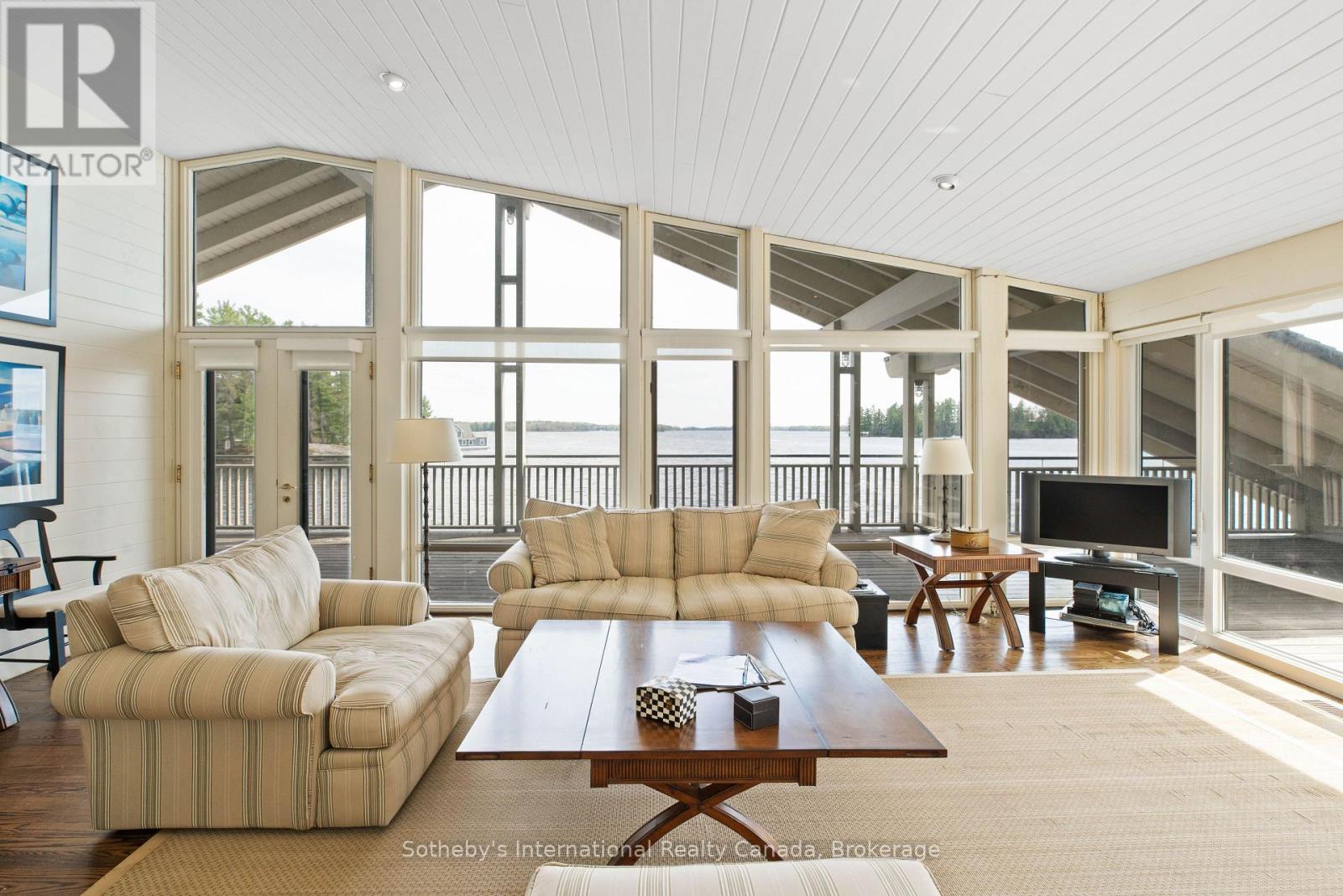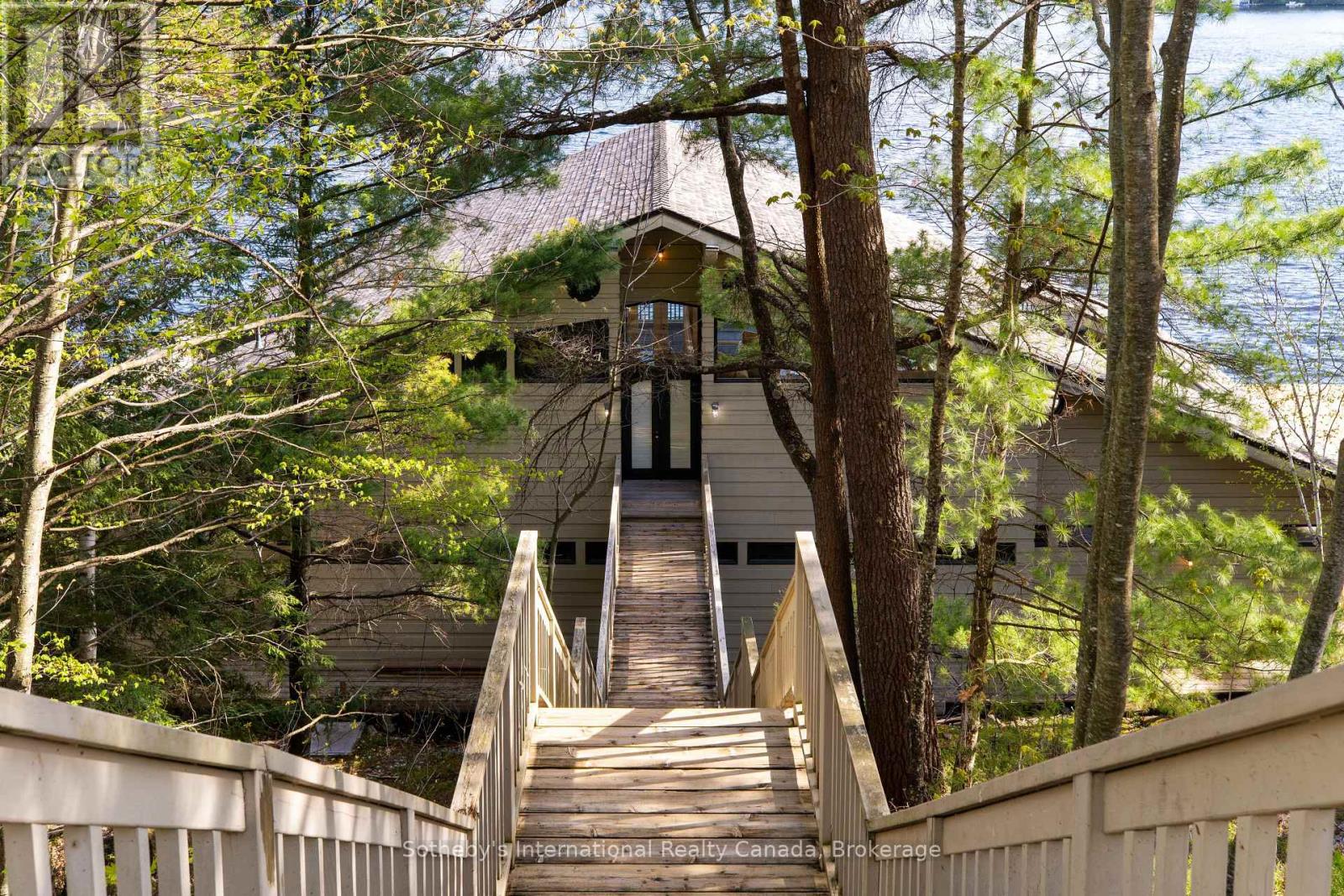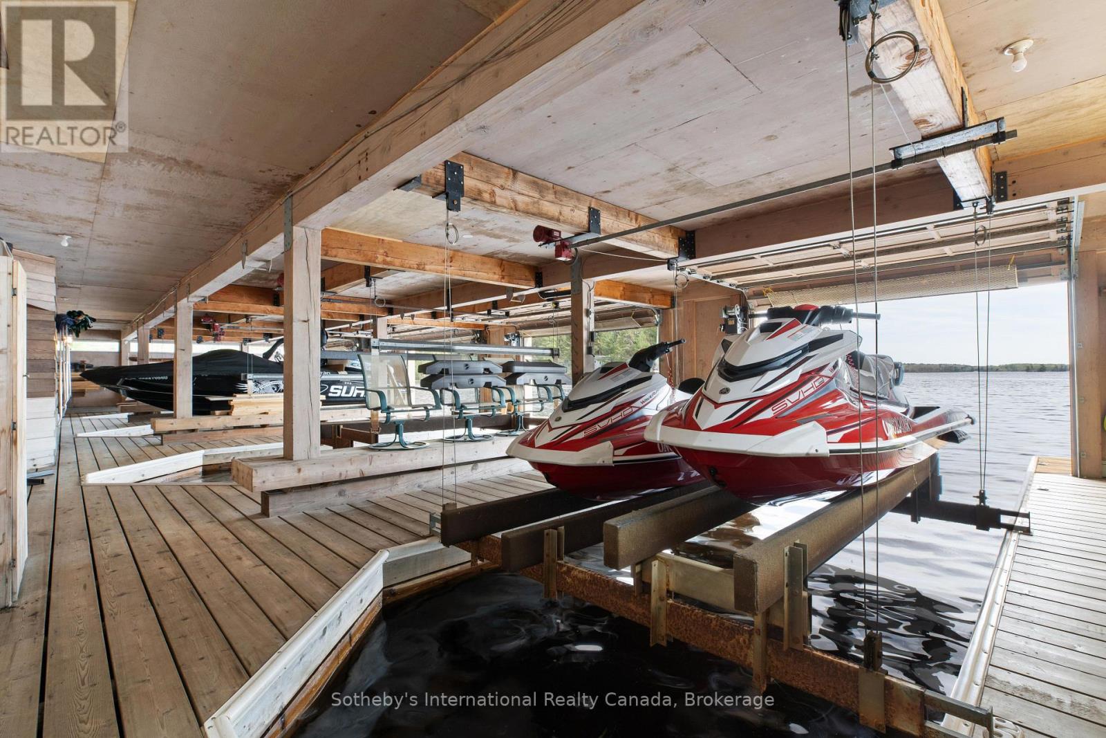 This extraordinary property on Lake Muskoka presents a unique and valuable opportunity to acquire a prime location featuring an oversized boathouse. Set on a generous 3.5-acre lot with an impressive 625 feet of lake frontage, the property enjoys expansive south-facing exposure. Prominently placed along the shoreline is an immense four-slip, two-story boathouse. Upstairs, you will find two bedrooms and a full bathroom, while the lower level includes two additional bathrooms and a sauna. The primary boathouse bedroom boasts panoramic lake views an unforgettable sight to wake up to each morning. A vast, oversized dock completes the structure, making it the perfect venue for entertaining guests and enjoying the waterfront lifestyle. Additionally, the property includes a charming three-bedroom, three-bathroom cottage. This delightful retreat complements the waterfront setting with an open-concept living room, a grand stone fireplace, and a kitchen that opens to a patio with stunning elevated lake views. The exterior showcases exquisite custom stone landscaping and craftsmanship throughout. A two-bay attached garage provides ample storage. Conveniently located just 10 minutes from Bracebridge and 20 minutes from Port Carling, this prestigious property combines accessibility with a distinguished Lake Muskoka setting. A rare offering with incredible development potential, it presents the opportunity to establish a lasting legacy on this coveted stretch of Sunset Point. (id:54164)