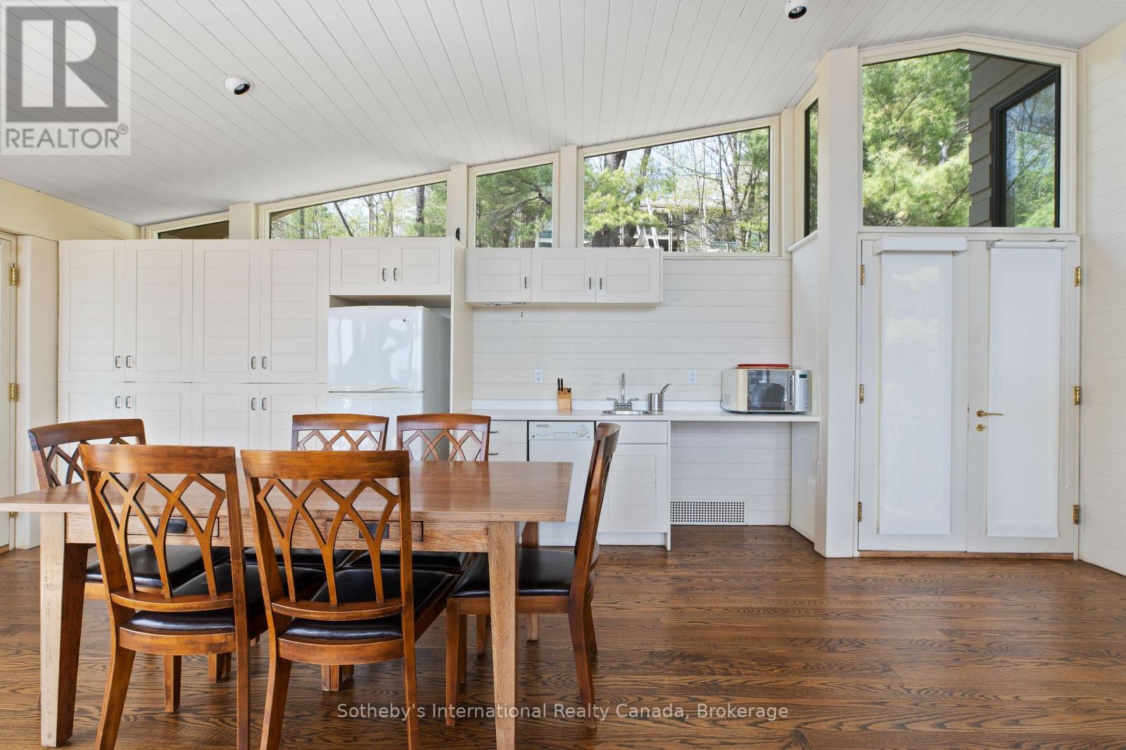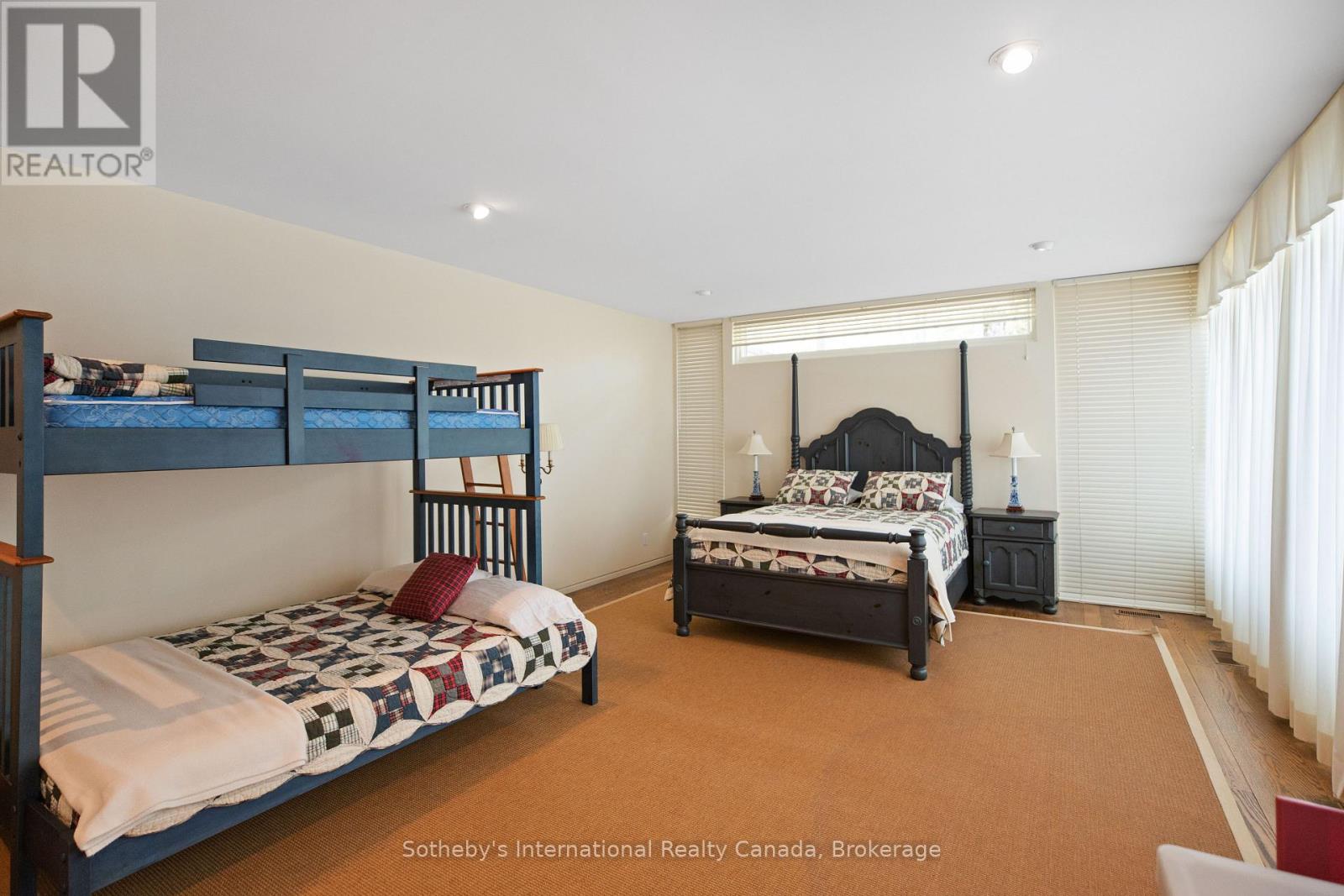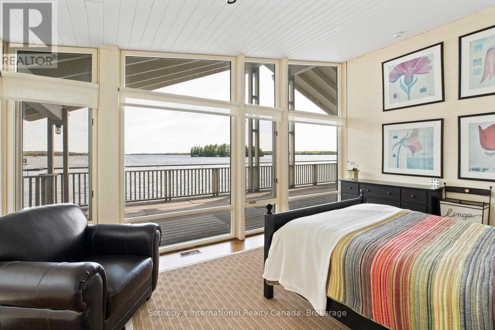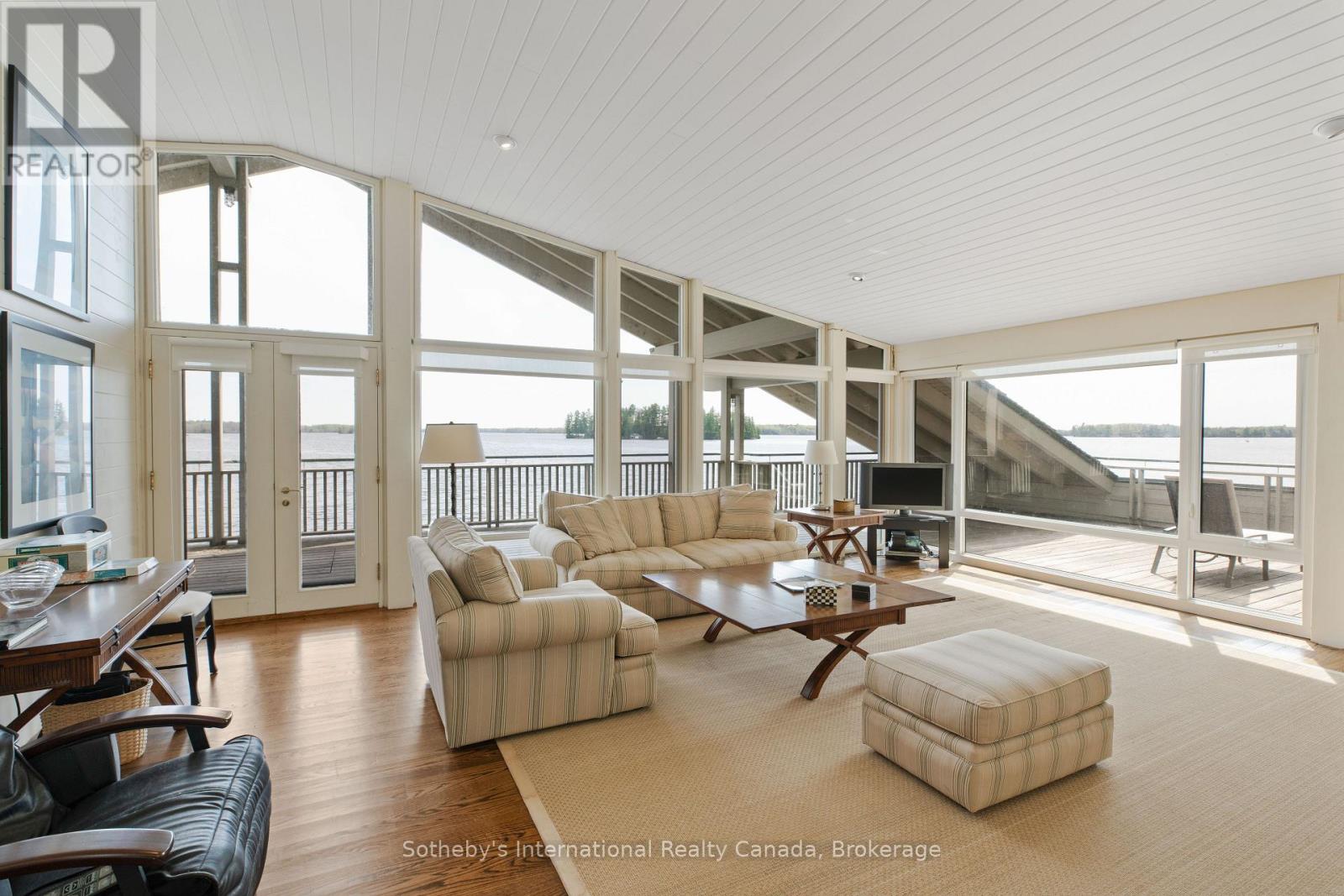 This extraordinary property on Lake Muskoka presents a unique and valuable opportunity to acquire a prime location featuring an oversized boathouse. Set on a generous 3.5-acre lot with an impressive 625 feet of lake frontage, the property enjoys expansive south-facing exposure. Prominently placed along the shoreline is an immense four-slip, two-story boathouse. Upstairs, you will find two bedrooms and a full bathroom, while the lower level includes two additional bathrooms and a sauna. The primary boathouse bedroom boasts panoramic lake views an unforgettable sight to wake up to each morning. A vast, oversized dock completes the structure, making it the perfect venue for entertaining guests and enjoying the waterfront lifestyle. Additionally, the property includes a charming three-bedroom, three-bathroom cottage. This delightful retreat complements the waterfront setting with an open-concept living room, a grand stone fireplace, and a kitchen that opens to a patio with stunning elevated lake views. The exterior showcases exquisite custom stone landscaping and craftsmanship throughout. A two-bay attached garage provides ample storage. Conveniently located just 10 minutes from Bracebridge and 20 minutes from Port Carling, this prestigious property combines accessibility with a distinguished Lake Muskoka setting. A rare offering with incredible development potential, it presents the opportunity to establish a lasting legacy on this coveted stretch of Sunset Point. (id:54164)