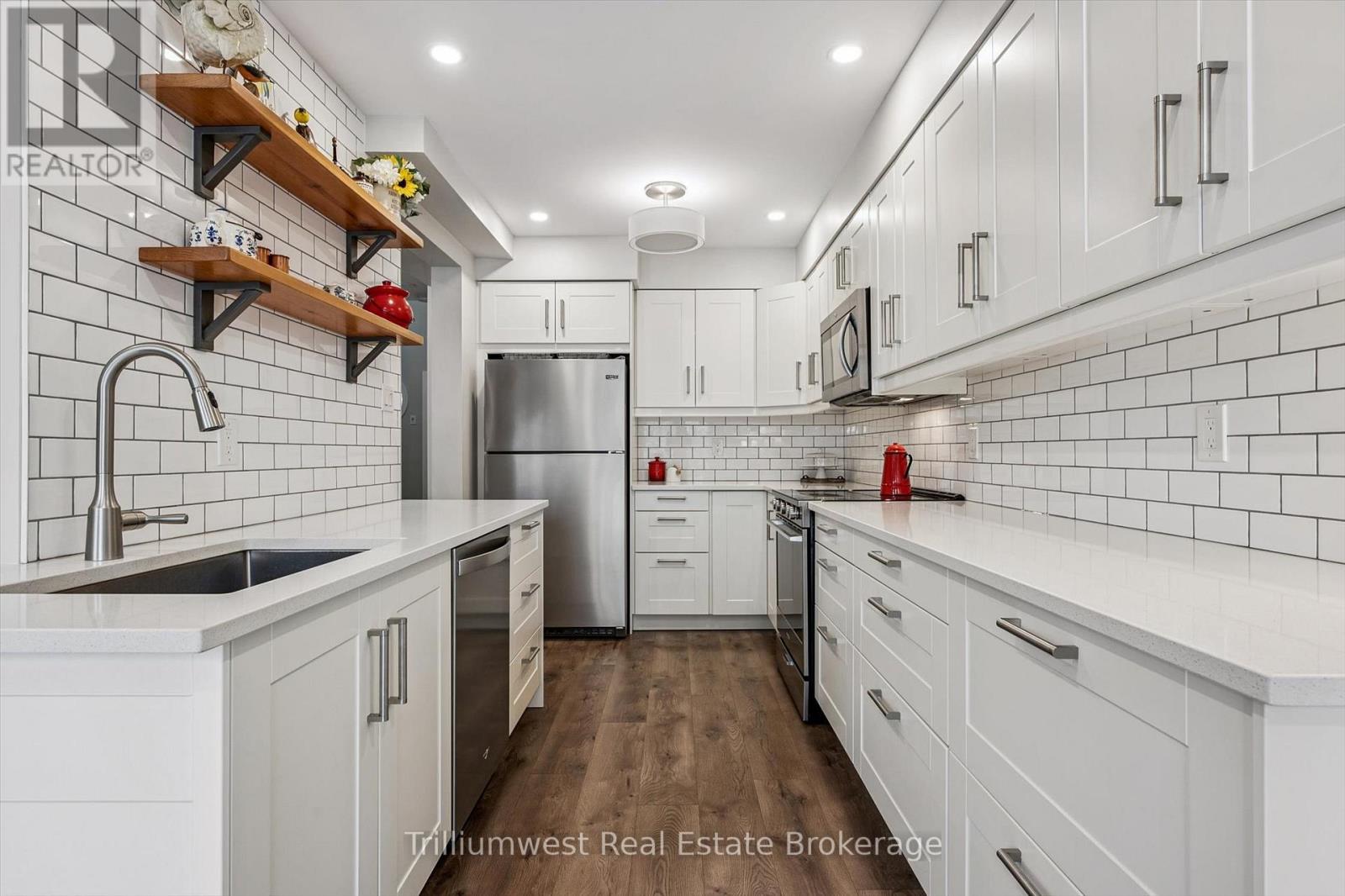Welcome to this beautifully renovated townhouse, tucked into a serene and highly sought-after pocket of Kortright Hills. Offering over 1,400 square feet of graciously updated living space, this home blends modern finishes with an unbeatable location. Backing directly onto Kortright Hills Public School, and just steps from Mollison Park, this setting is ideal for families and those who value both privacy and convenience. Walk into the spacious foyer with its sweeping architectural staircase, and be drawn into the open concept living area with views of the yard and park beyond. Completely updated in 2021, the kitchen truly is a chef’s dream. Thoughtfully finished with beautiful cabinetry, high-end appliances, ample storage, and quartz countertops designed for both multi-tasking and baking for a crowd. Catch up with guests in the bright family room, or nestle in with your favourite shows beside the cosy fireplace. Wander outside onto the patio on those warm summer evenings and indulge in the peaceful seclusion. Upstairs, you’ll find 3 spacious bedrooms and 2 full bathrooms, including a lovely primary ensuite. The primary also has a deep walk-in closet for extra convenience. Downstairs, you’ll find a fully finished, recently carpeted family room ready for your personal style and vision, along with an updated 3-piece bathroom. Boasting new flooring and fresh paint throughout, offering functionality for both everyday living and entertaining, and set within an exclusive enclave… this property offers a rare sense of privacy while still providing easy access to shopping, schools, parks, and commuter routes. It really doesn’t get much better than this. 2-39 Ptarmigan affords the perfect opportunity to enjoy turnkey living in one of Guelph’s most desirable neighbourhoods. Let’s get you in for a closer look soon. (id:54164)